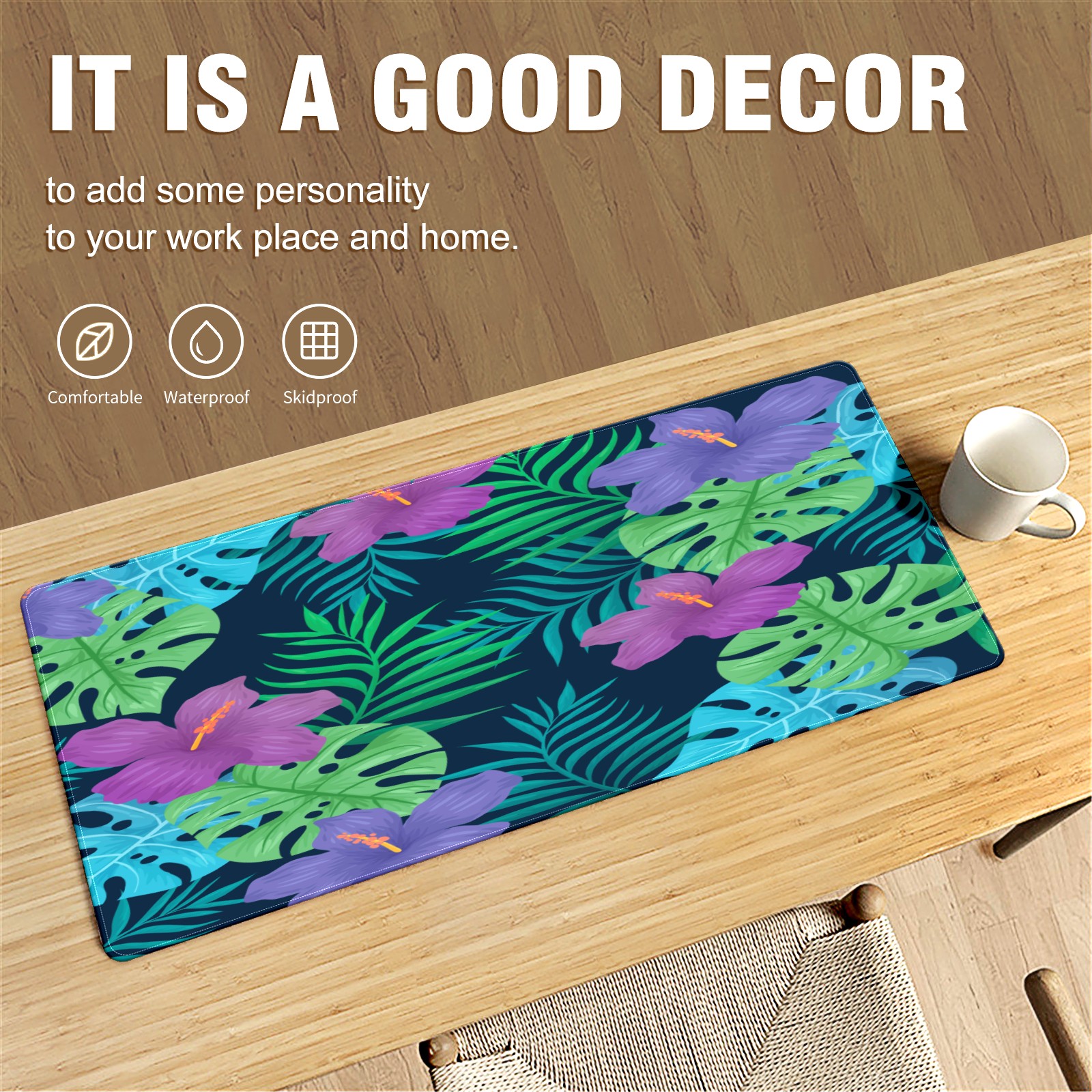 • <p>This 35.4” × 15.7” extended desk mat offers ample space for your keyboard, mouse and essentials, working as a smooth work/writing pad while protecting your desktop from scratches.</p><p>With stylish artistic patterns, it adds personality to your home office, study or gaming setup. The high-density woven surface ensures precise, smooth mouse tracking for work and gaming.</p><p>Featuring an anti-slip natural rubber base for firm grip and stability, the mat is soft, elastic and odorless. Reinforced stitched edges prevent fraying and curling for long-lasting durability.</p>