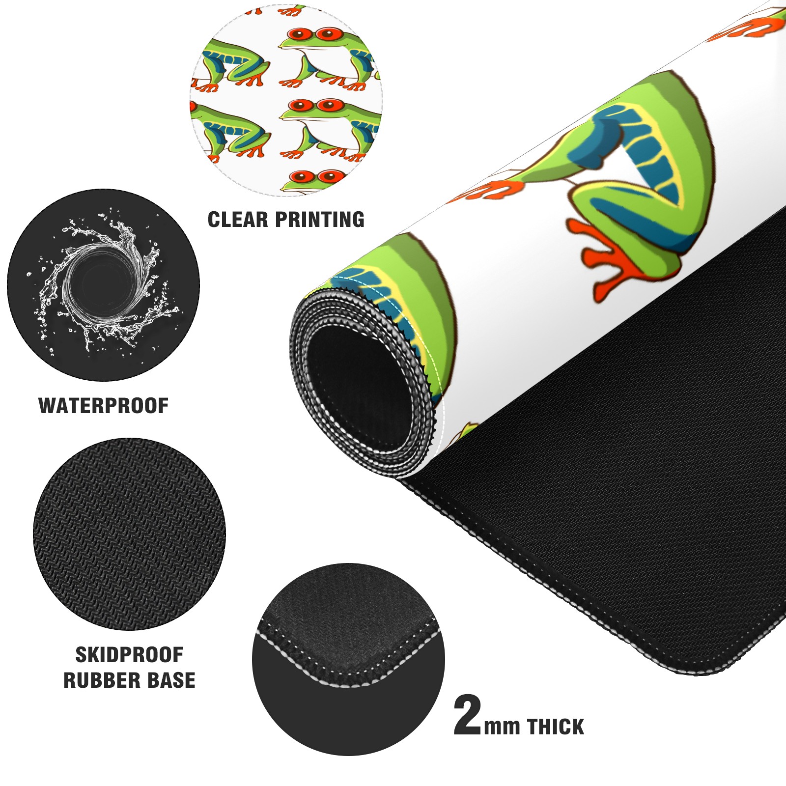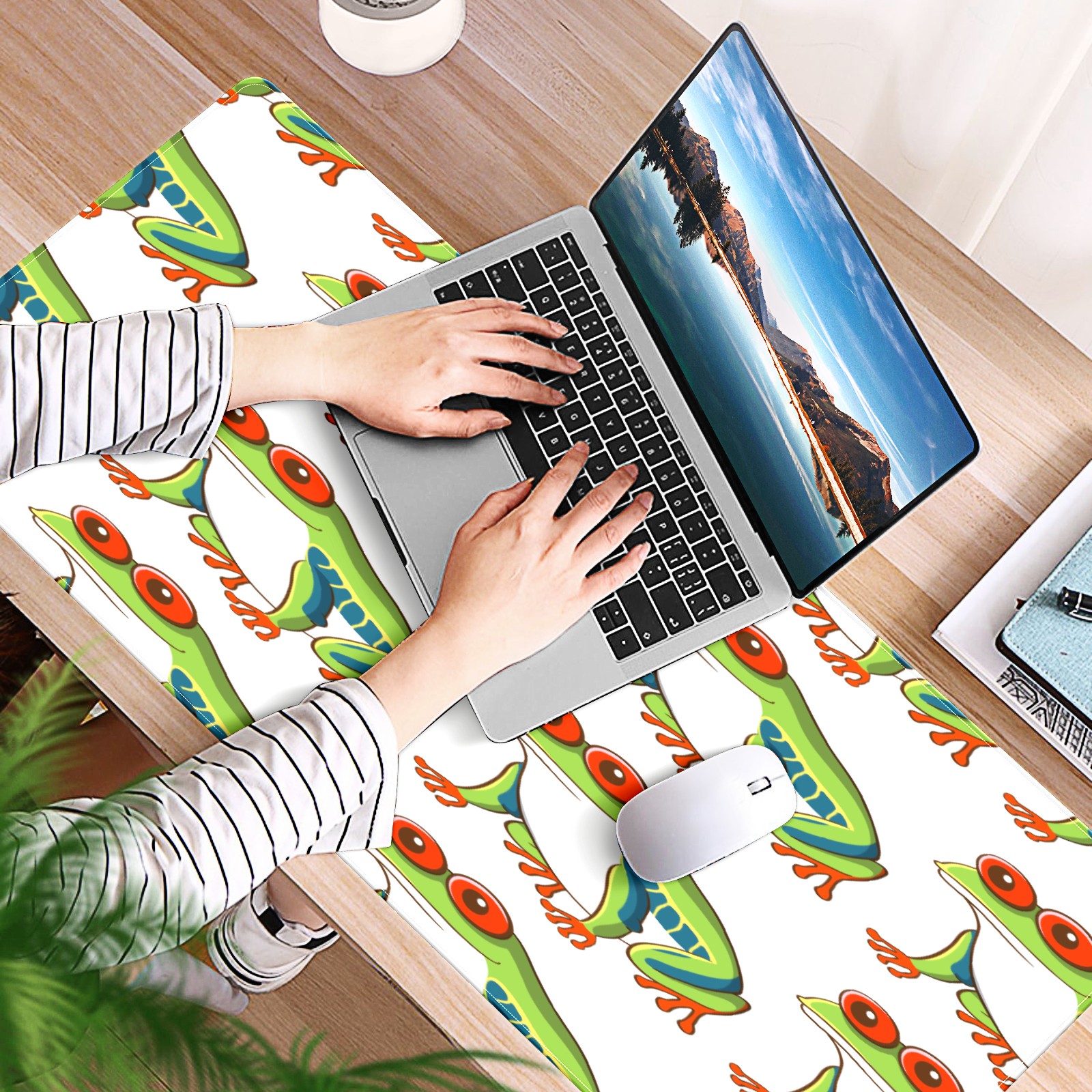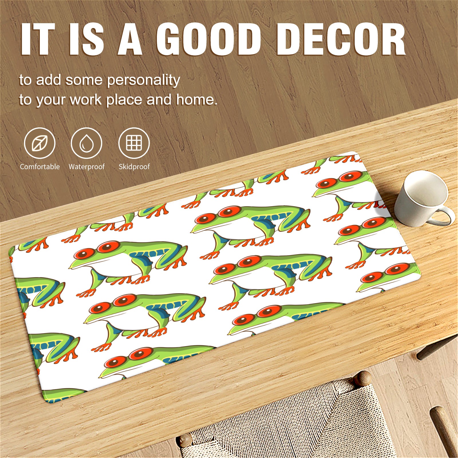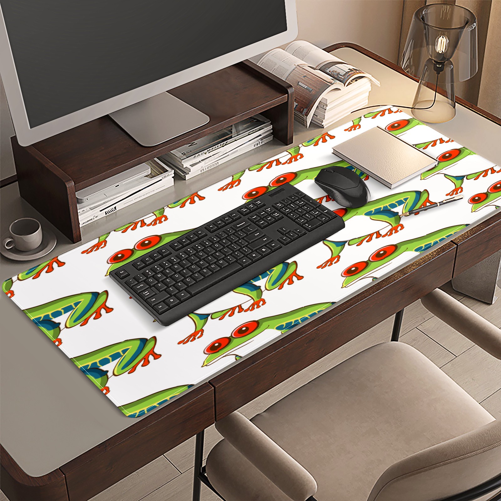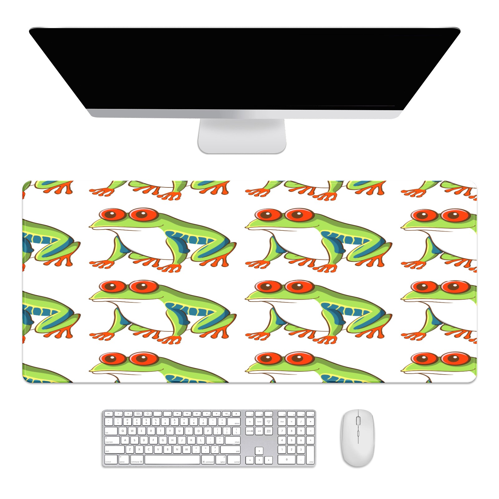 Large Mouse Pad for Desktop, Cute Desk Mat Pad Protector for Work & Gaming, Aesthetic Pretty Anti-Slip Laptop Blotter Cover for Office School Home Supplies, Green Frog Design , 35.4inx15.7in