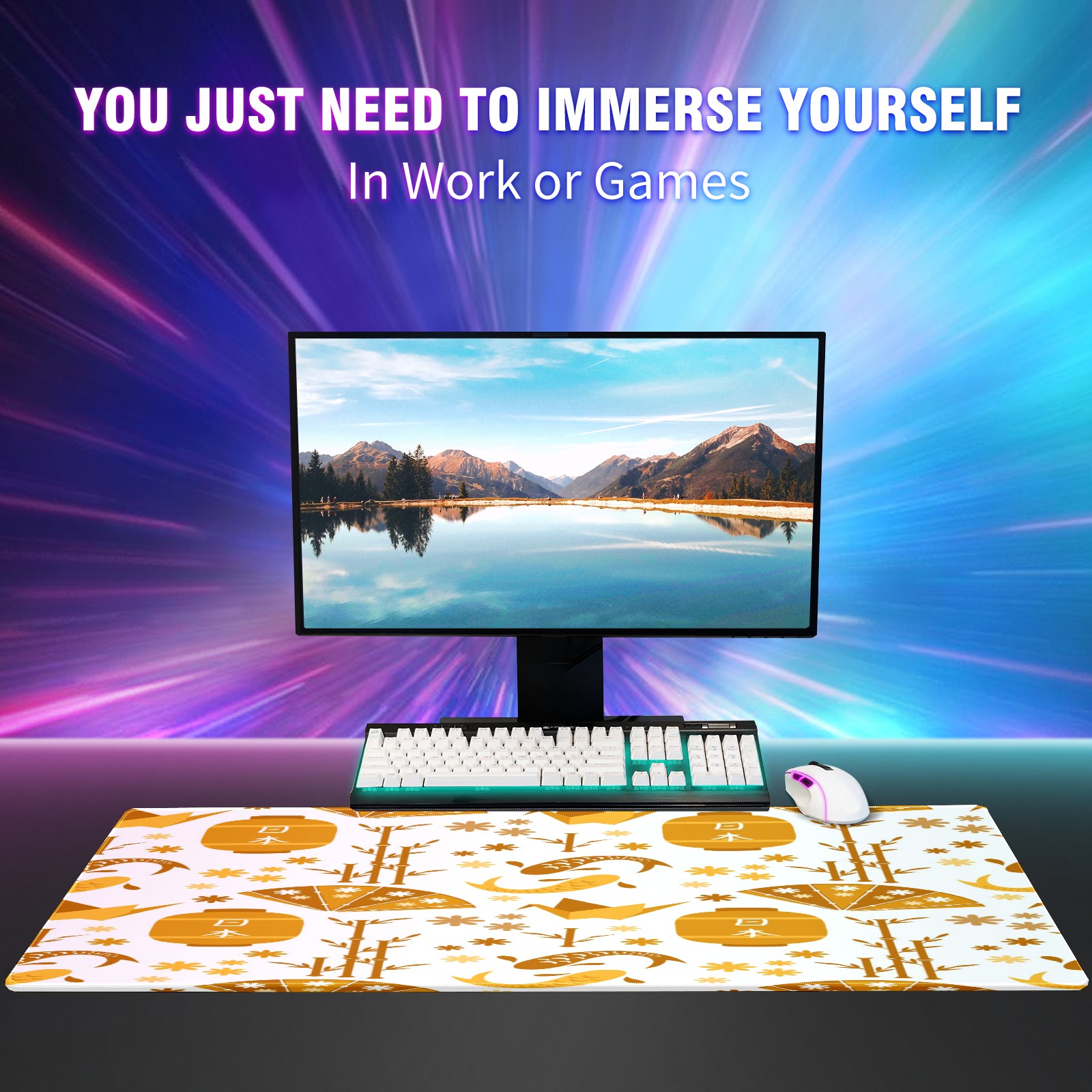 Large Mouse Pad for Desktop, Cute Desk Mat Pad Protector for Work & Gaming, Aesthetic Pretty Anti-Slip Laptop Blotter Cover for Office School Home Supplies, Japanese Pattern , 35.4inx15.7in