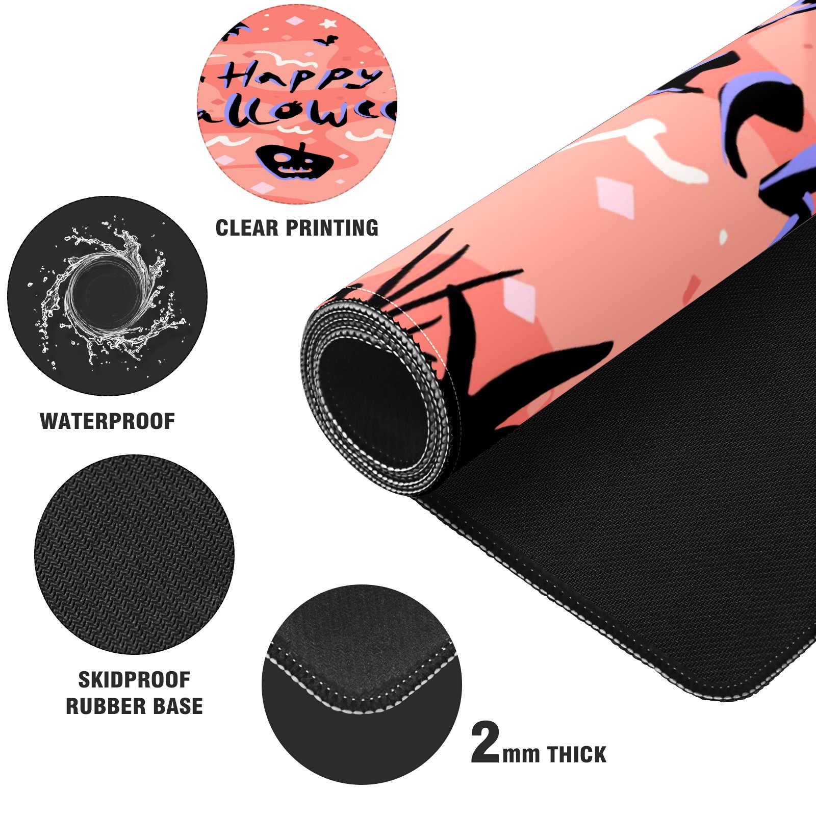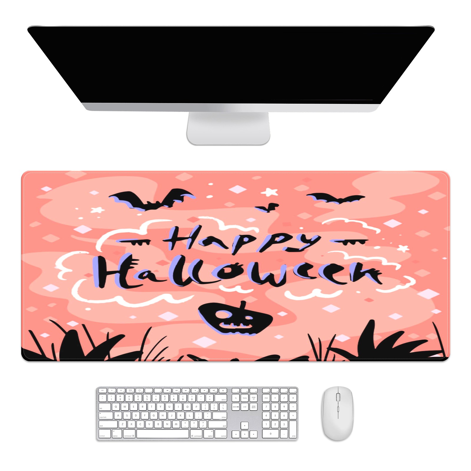 Large Mouse Pad for Desktop, Cute Desk Mat Pad Protector for Work & Gaming, Aesthetic Pretty Anti-Slip Laptop Blotter Cover for Office School Home Supplies, Halloween Pink , 35.4inx15.7in