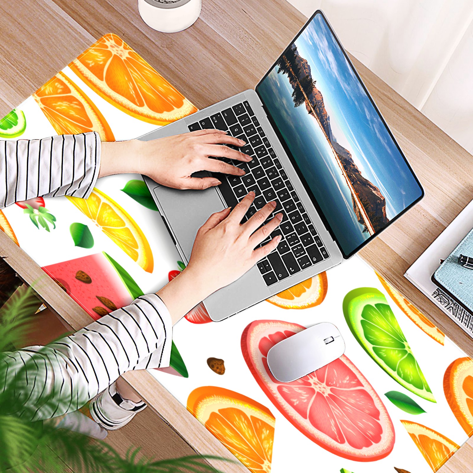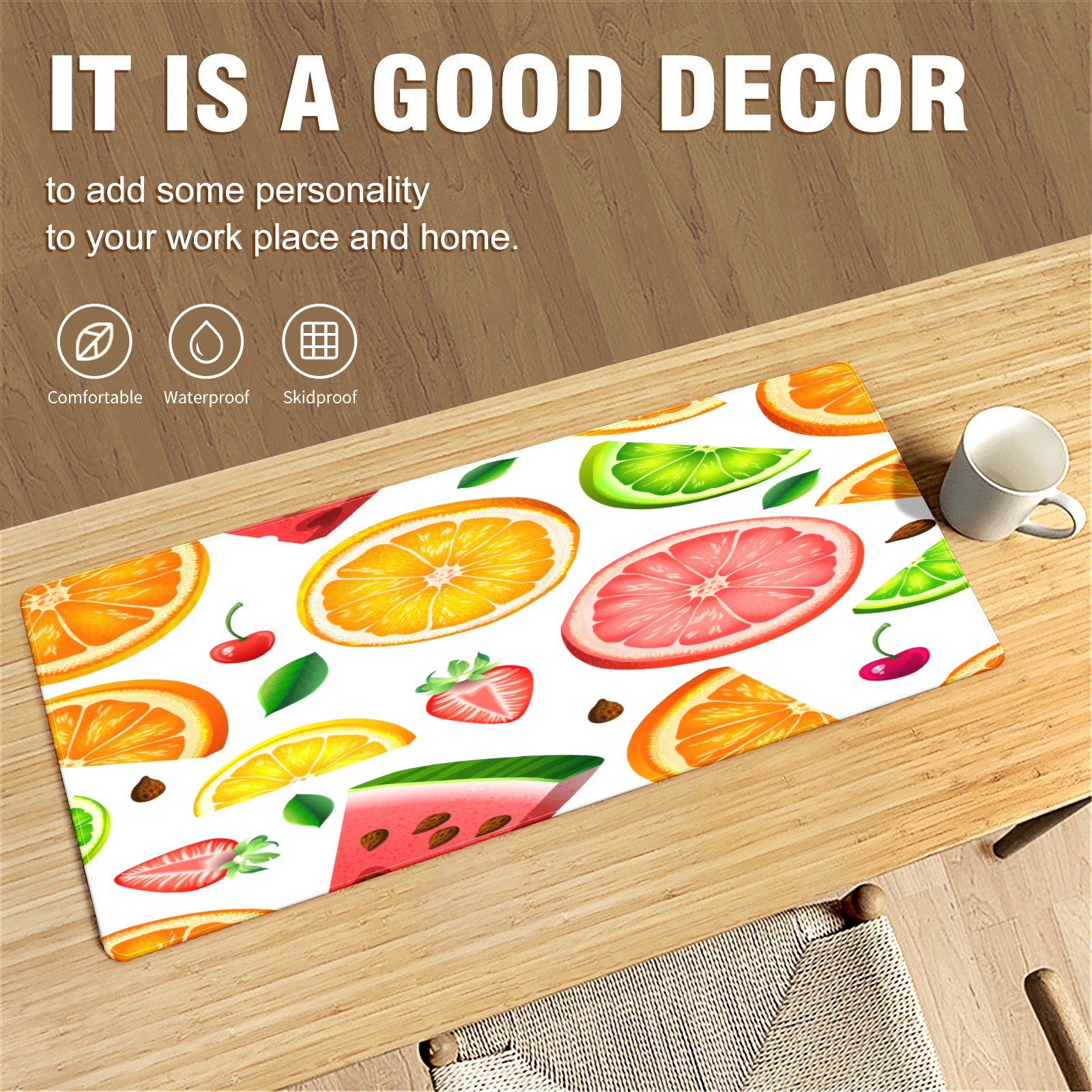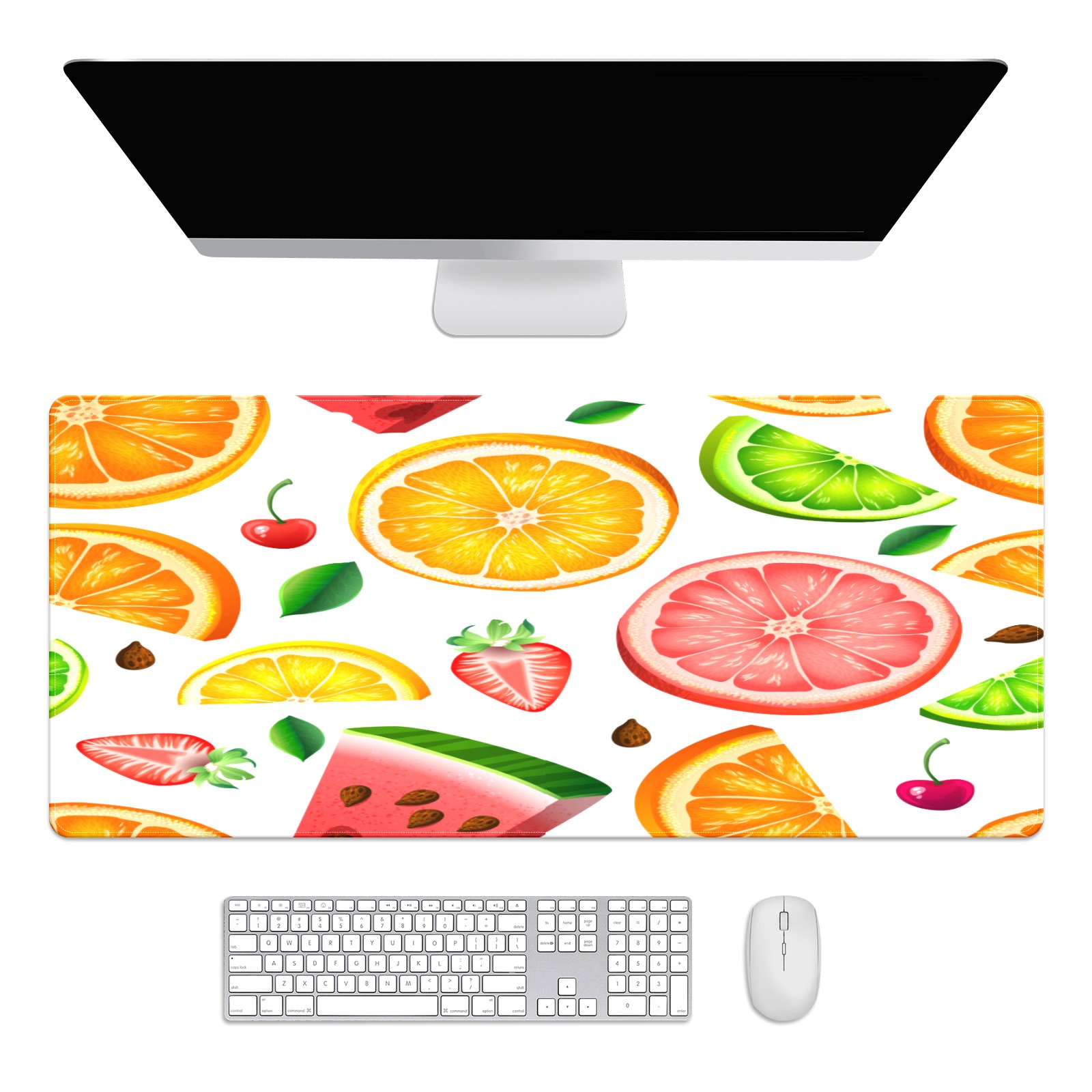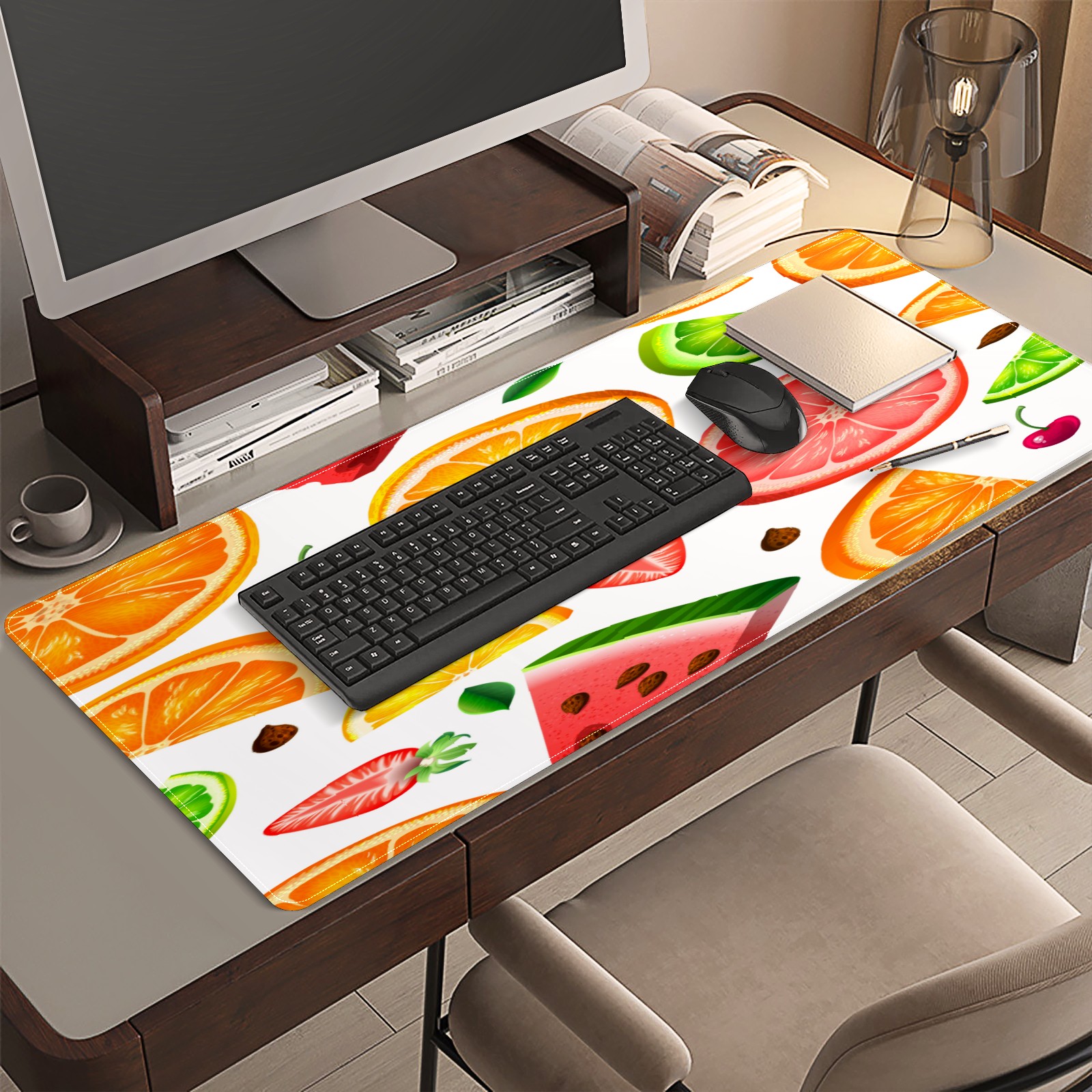 Large Mouse Pad for Desktop, Cute Desk Mat Pad Protector for Work & Gaming, Aesthetic Pretty Anti-Slip Laptop Blotter Cover for Office School Home Supplies, Fruit Pattern , 35.4inx15.7in