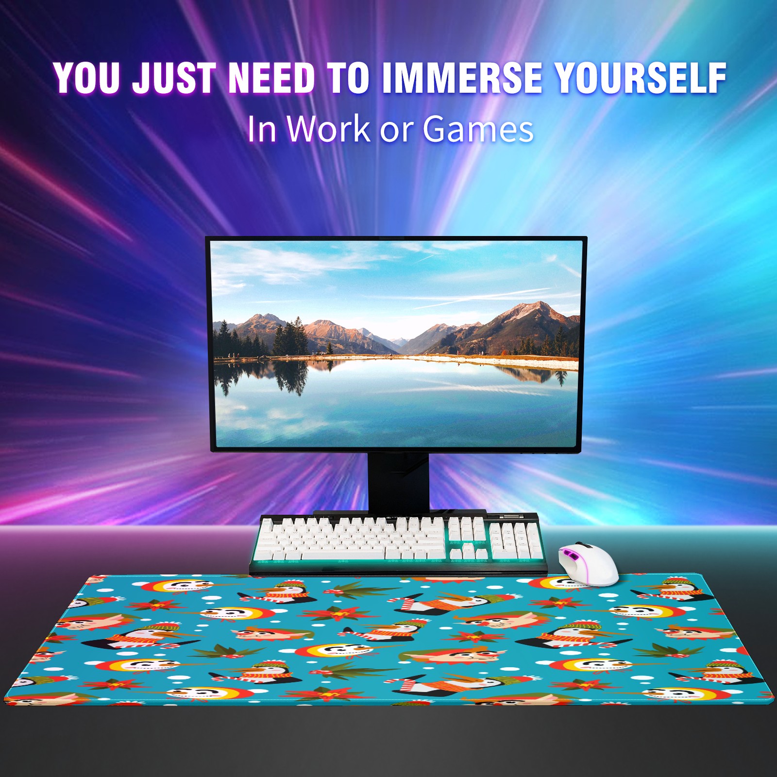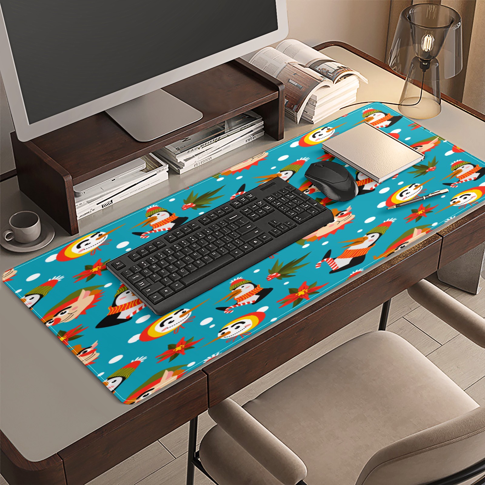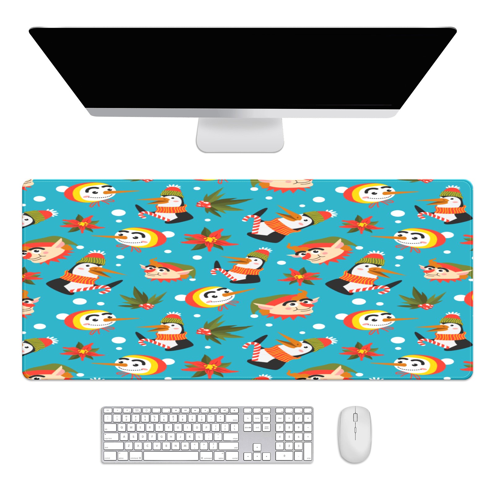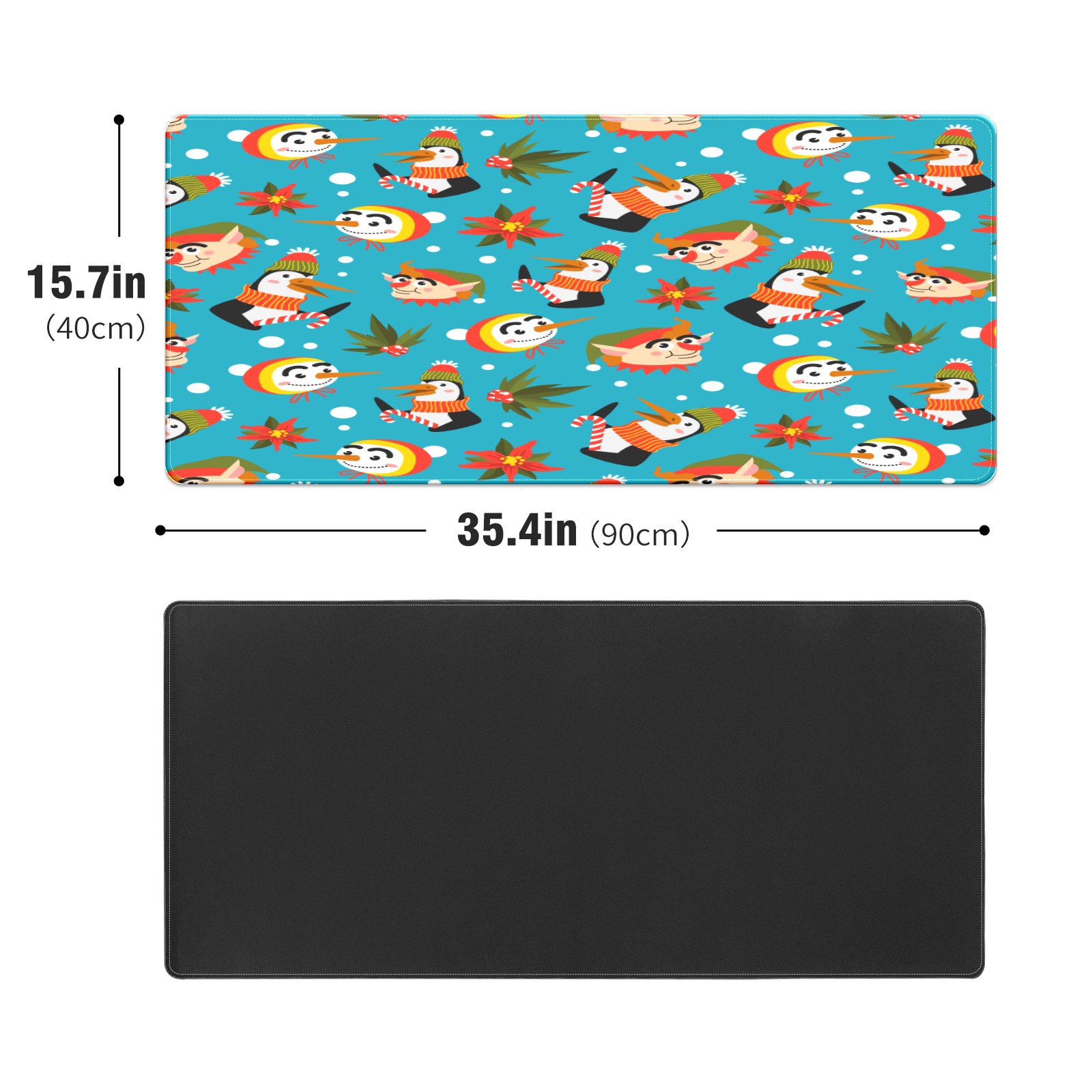 Large Mouse Pad for Desktop, Cute Desk Mat Pad Protector for Work & Gaming, Aesthetic Pretty Anti-Slip Laptop Blotter Cover for Office School Home Supplies, Funny Penguin Colorful Christmas , 35.4inx15.7in