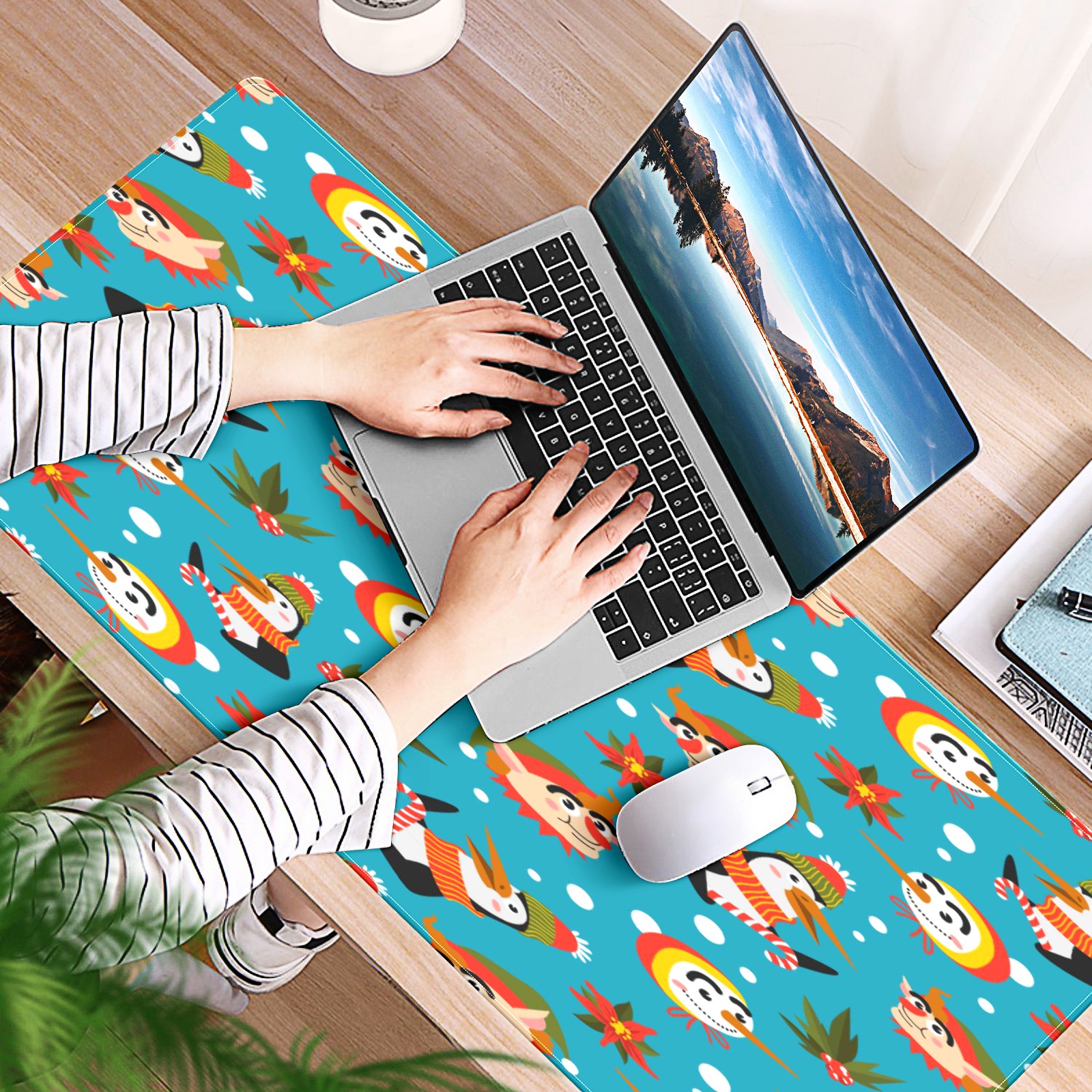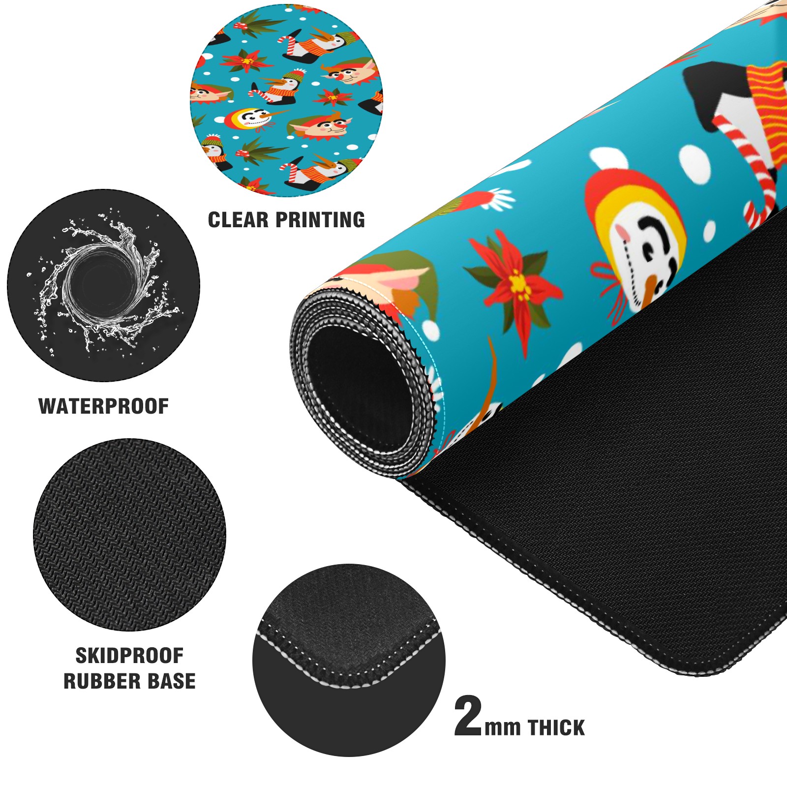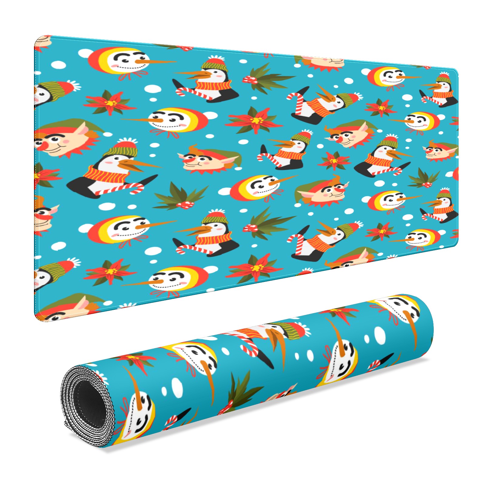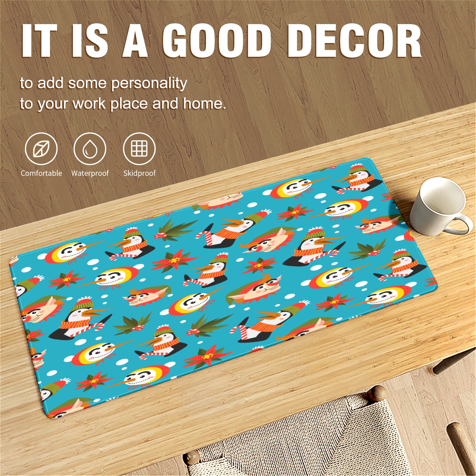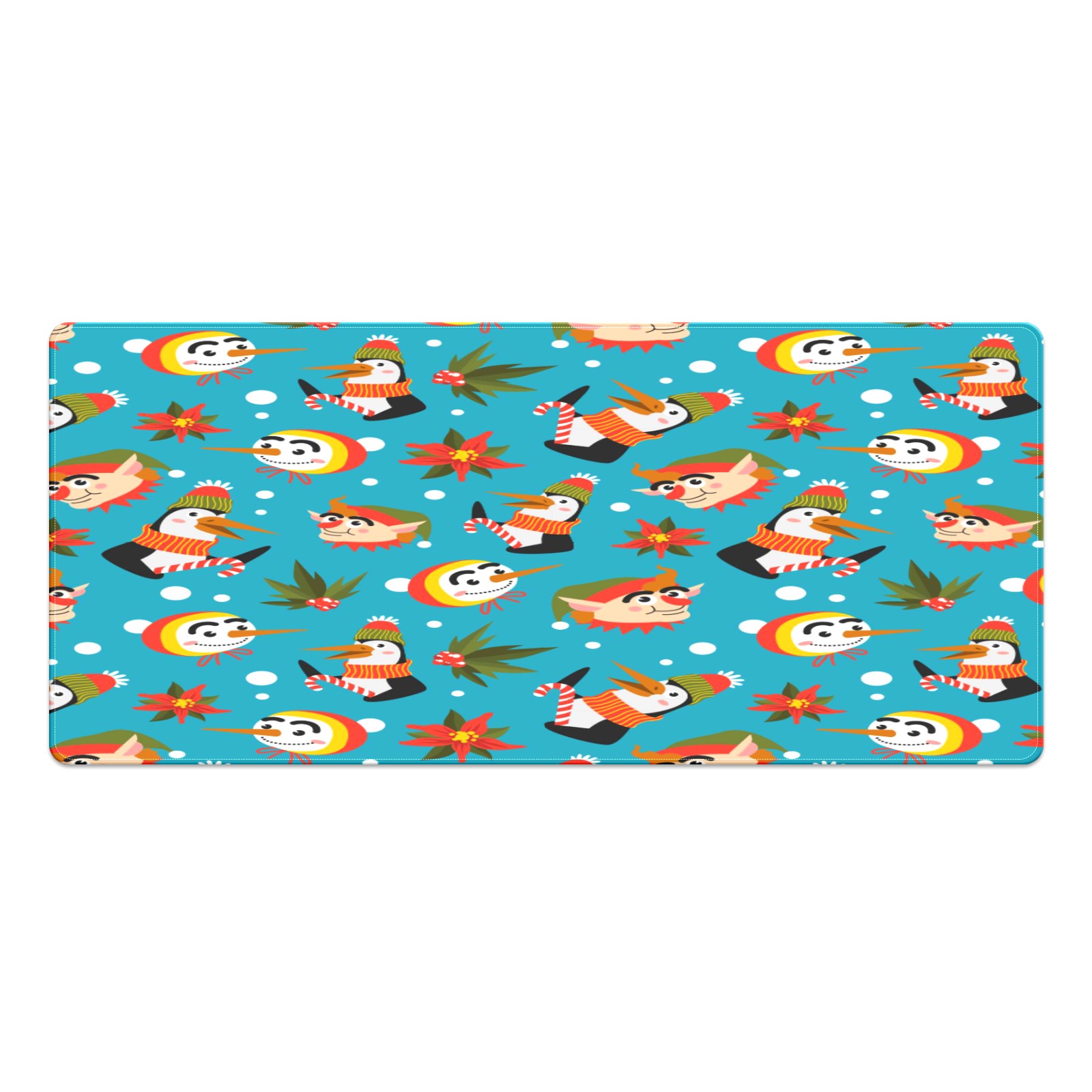 Large Mouse Pad for Desktop, Cute Desk Mat Pad Protector for Work & Gaming, Aesthetic Pretty Anti-Slip Laptop Blotter Cover for Office School Home Supplies, Funny Penguin Colorful Christmas , 35.4inx15.7in