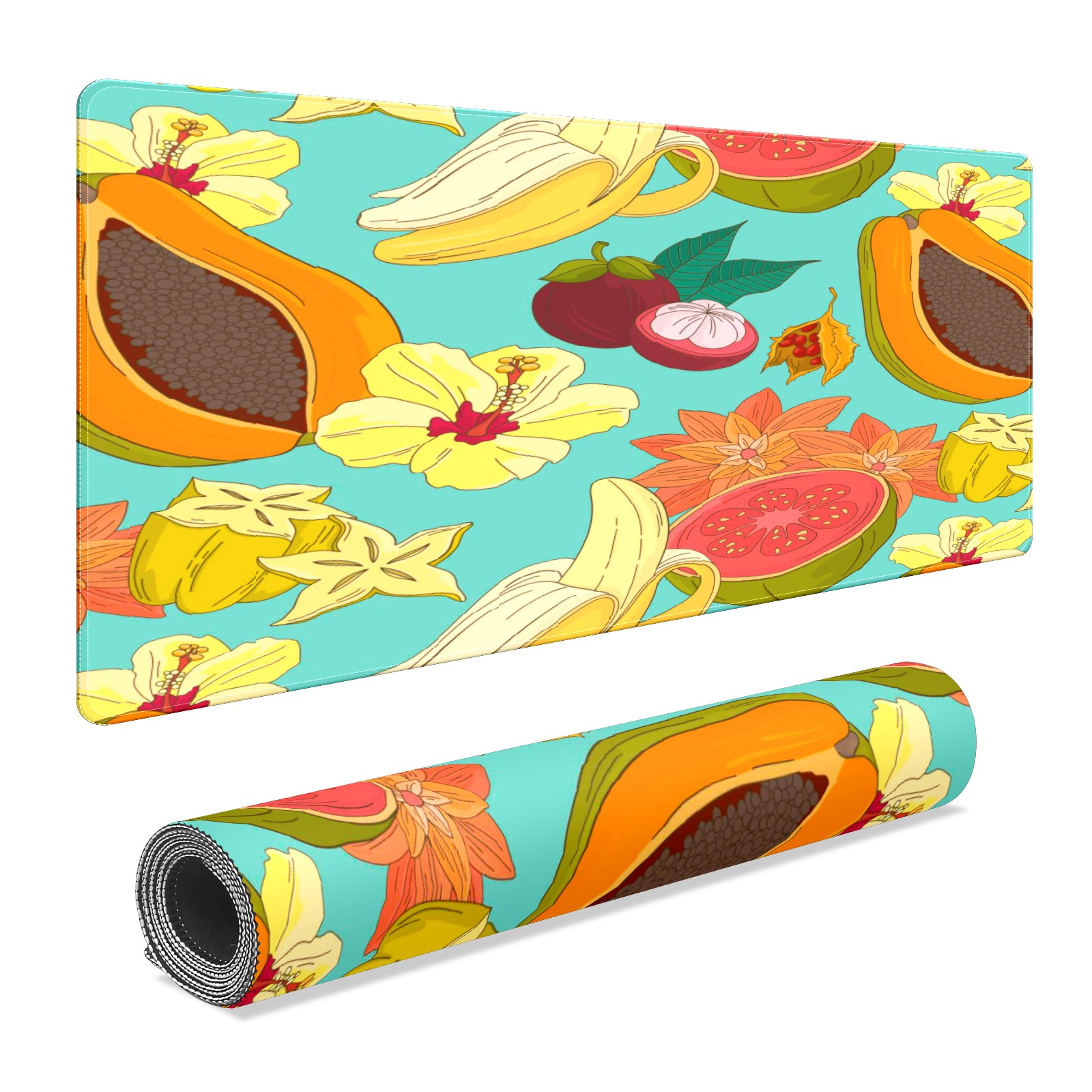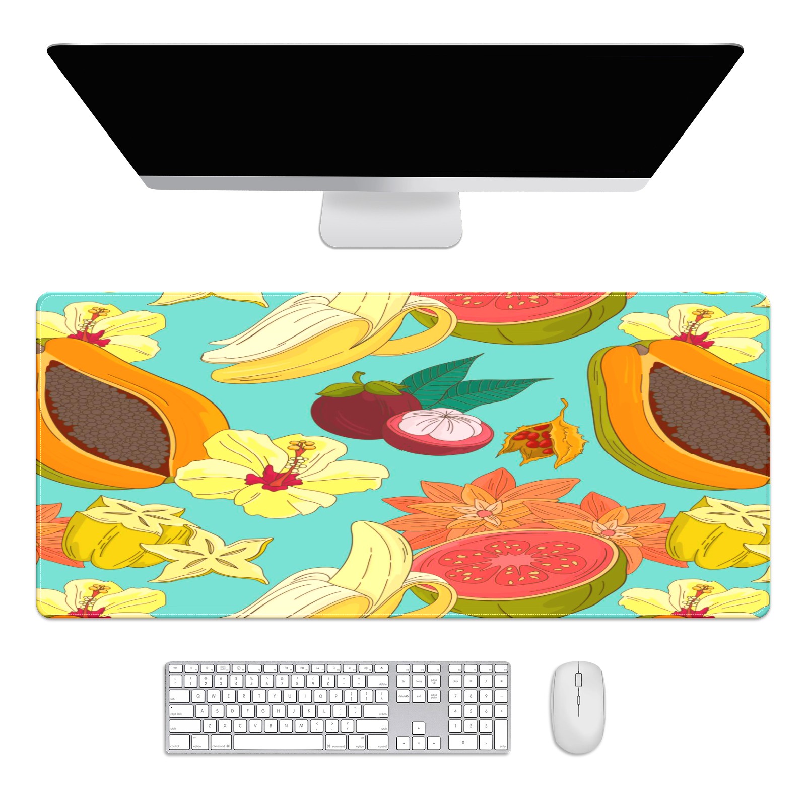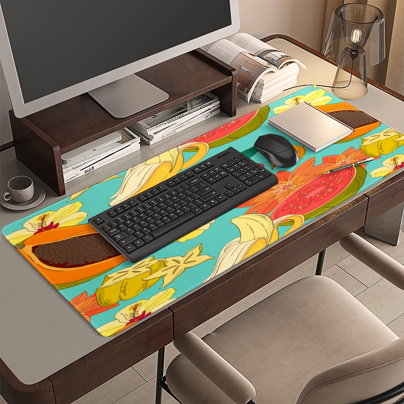 Large Mouse Pad for Desktop, Cute Desk Mat Pad Protector for Work & Gaming, Aesthetic Pretty Anti-Slip Laptop Blotter Cover for Office School Home Supplies, Fruits Flower Pattern , 35.4inx15.7in