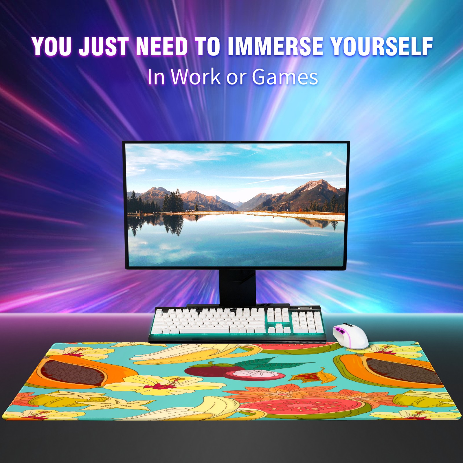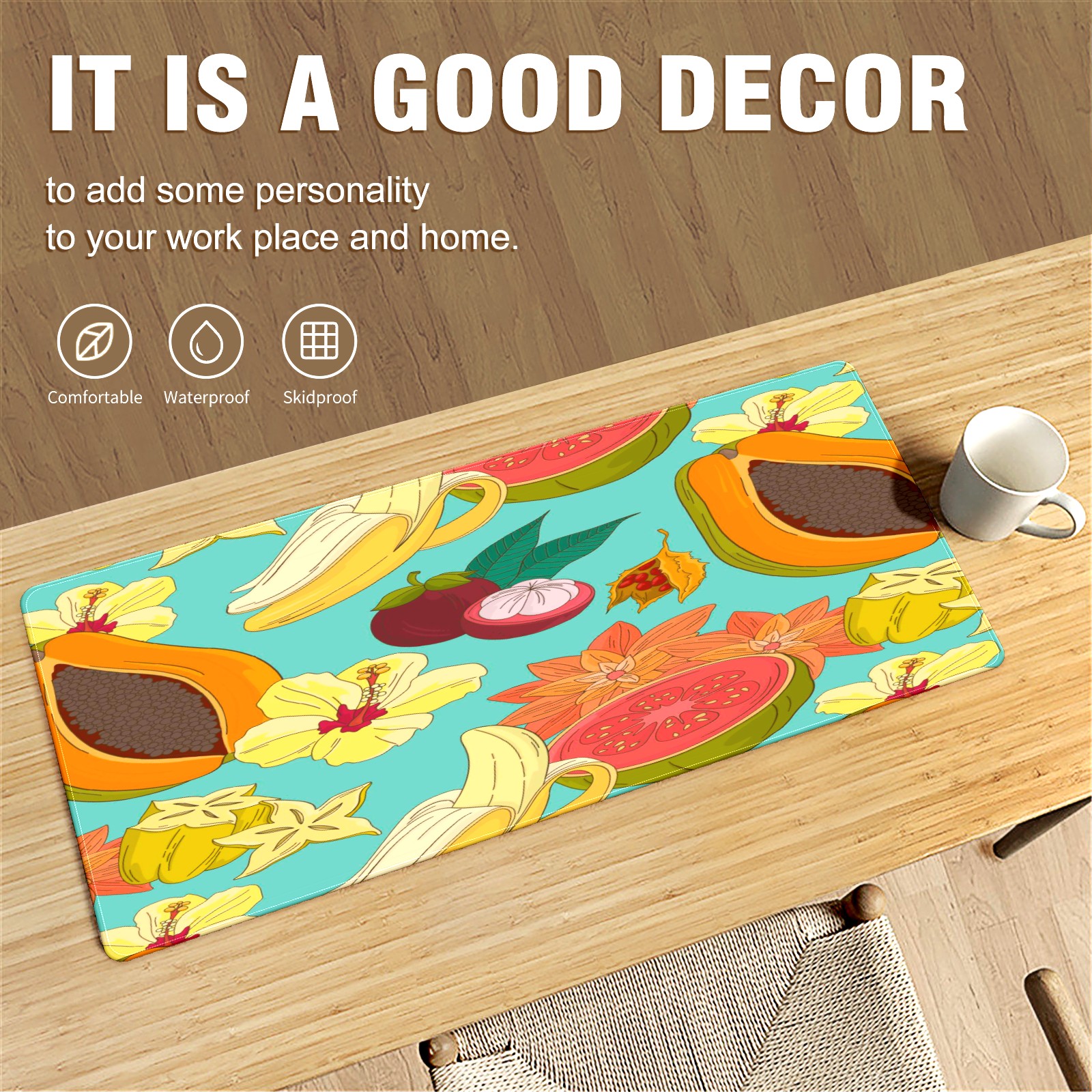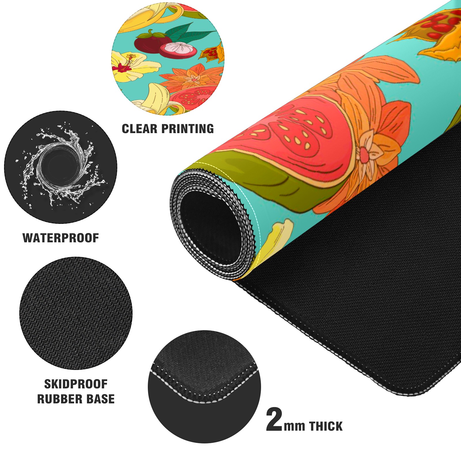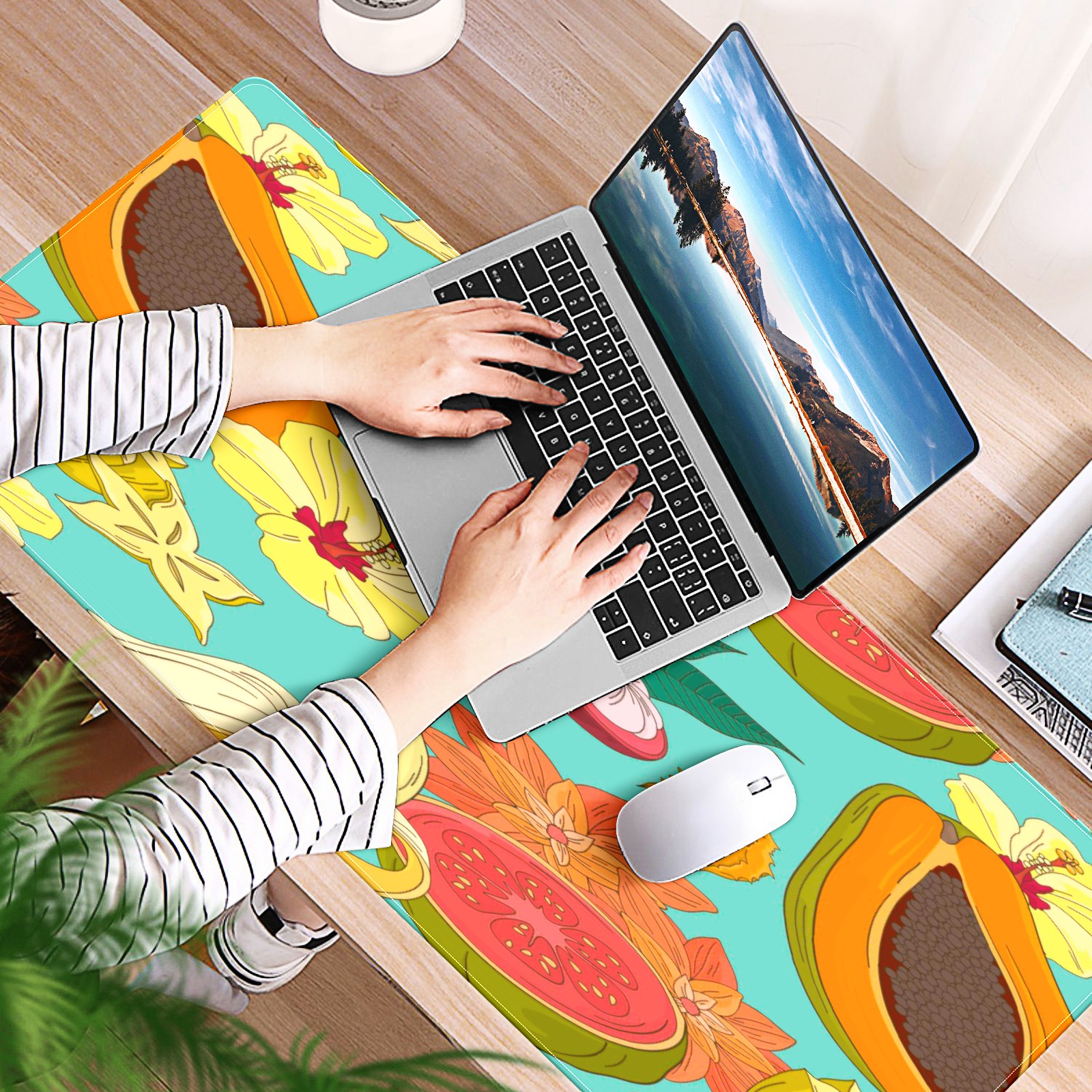 Large Mouse Pad for Desktop, Cute Desk Mat Pad Protector for Work & Gaming, Aesthetic Pretty Anti-Slip Laptop Blotter Cover for Office School Home Supplies, Fruits Flower Pattern , 35.4inx15.7in