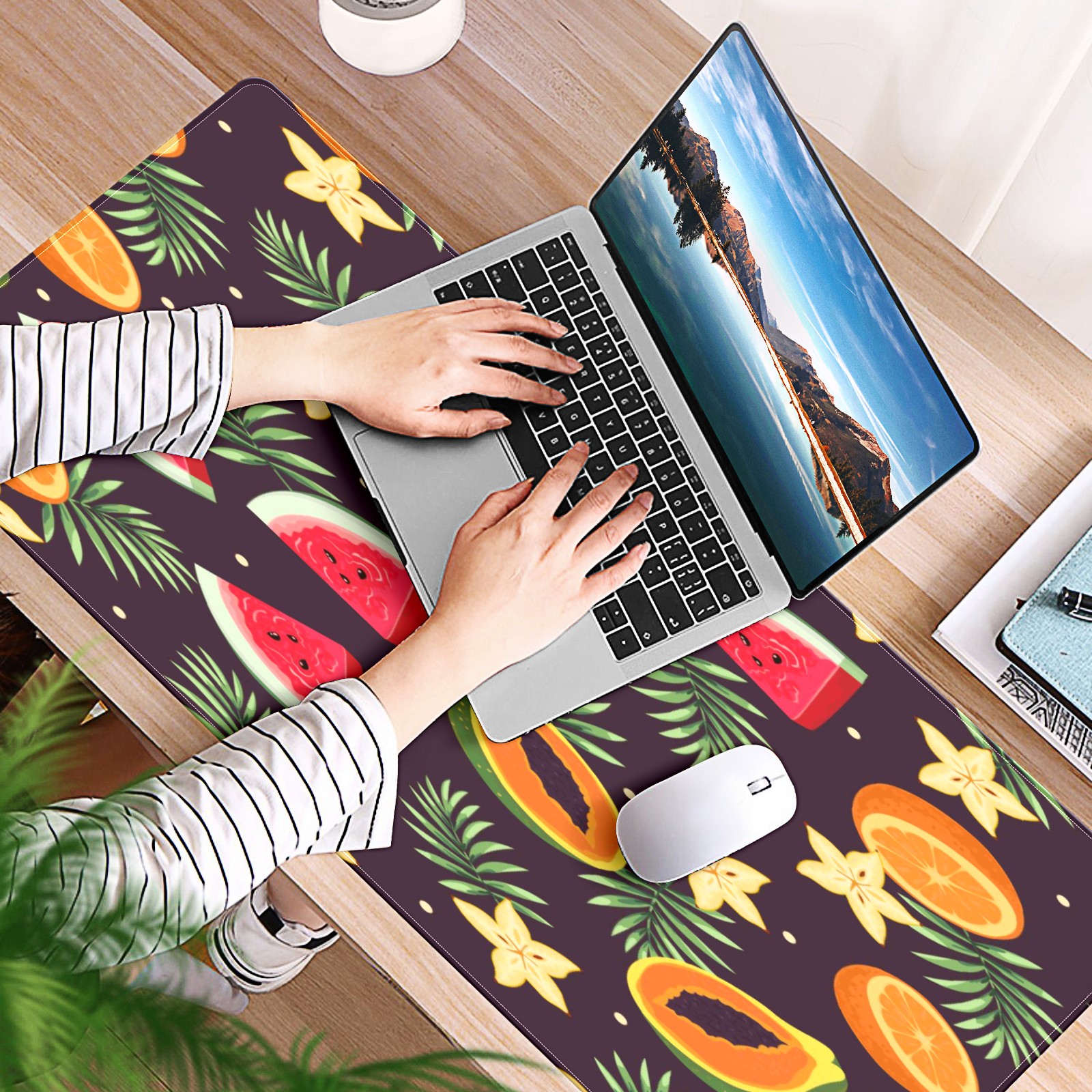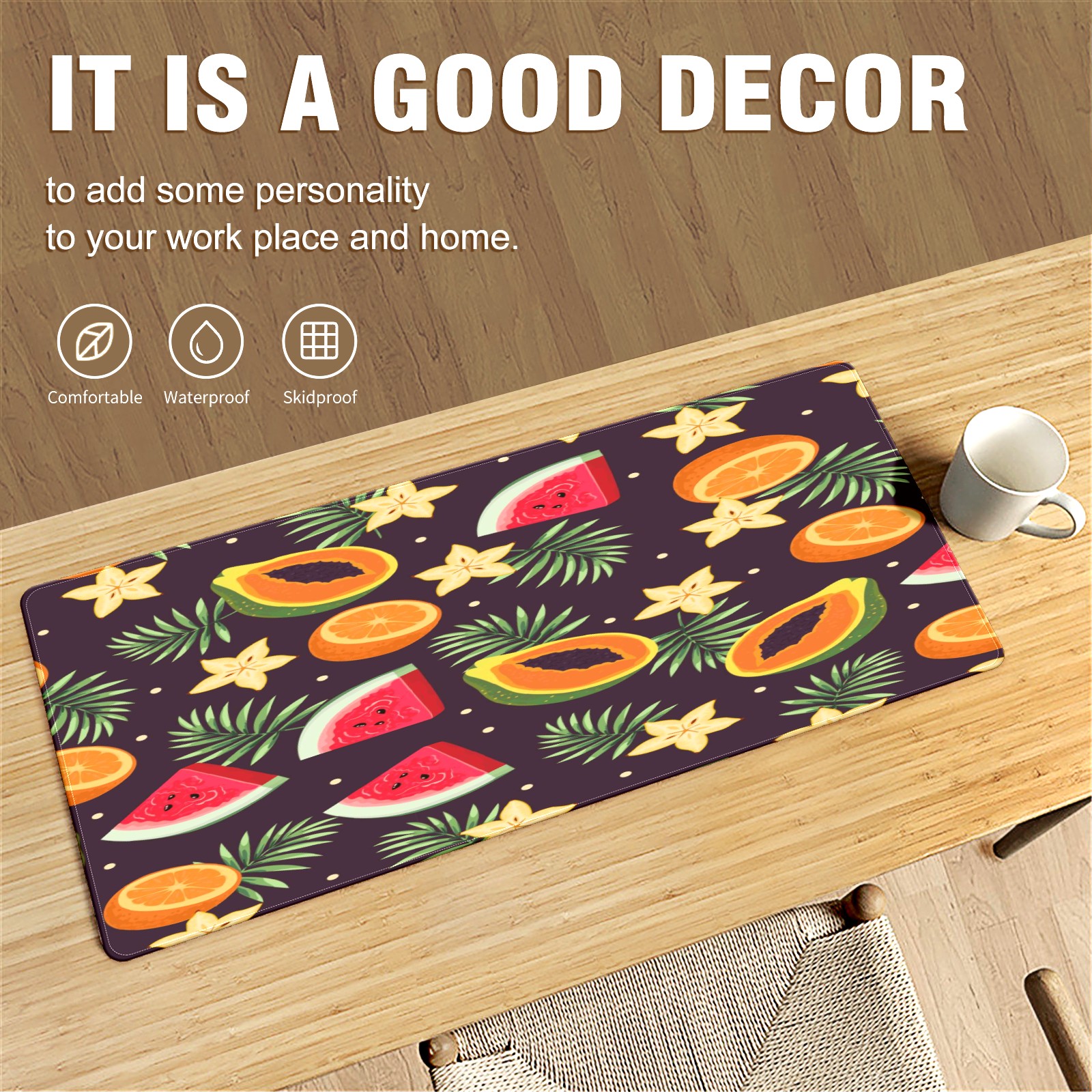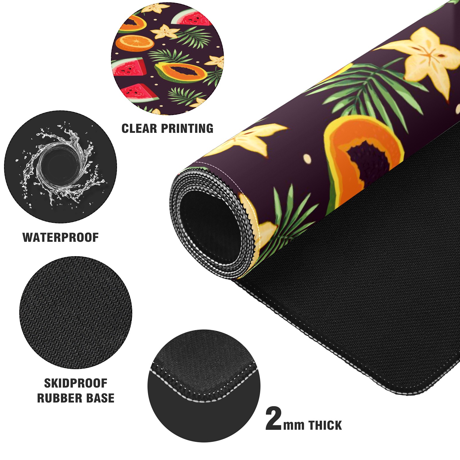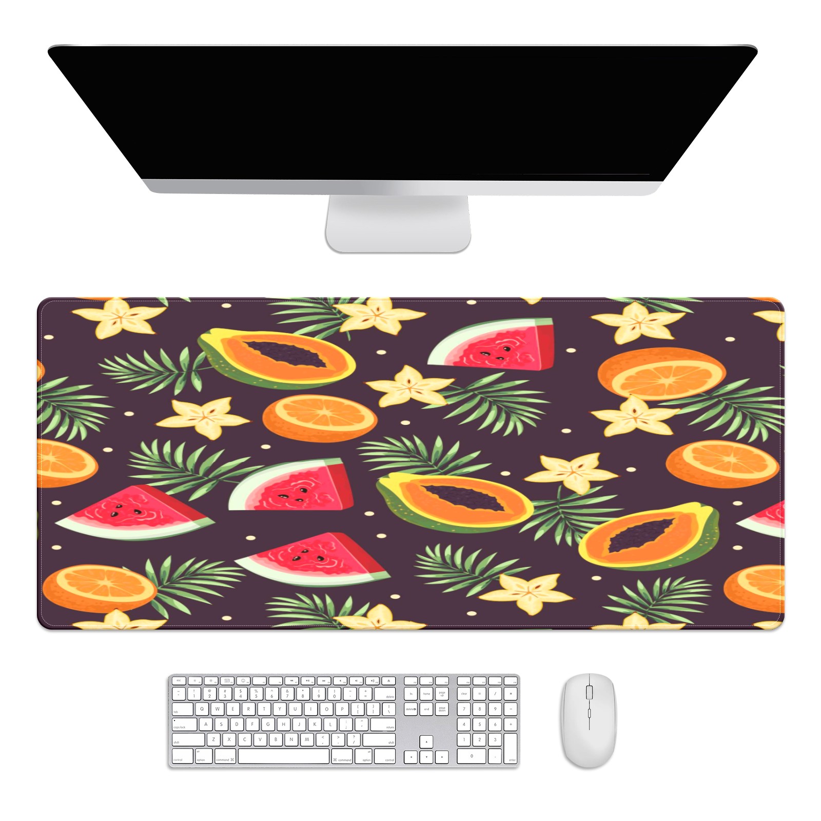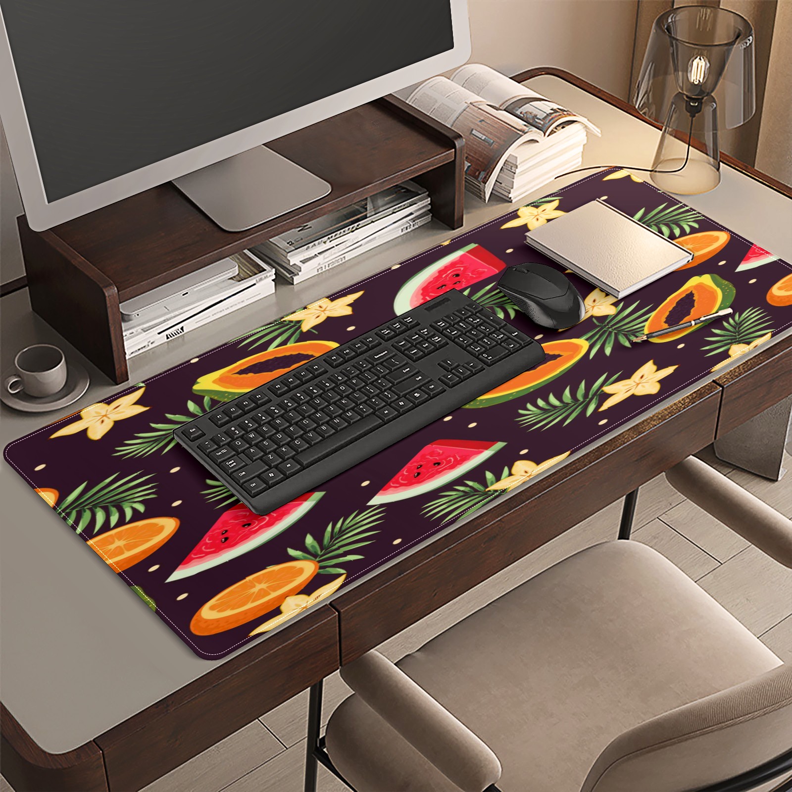Large Mouse Pad for Desktop, Cute Desk Mat Pad Protector for Work & Gaming, Aesthetic Pretty Anti-Slip Laptop Blotter Cover for Office School Home Supplies, Fruits Dark Color Pattern , 35.4inx15.7in