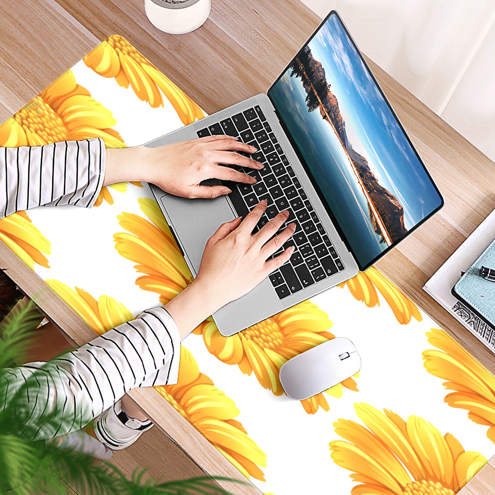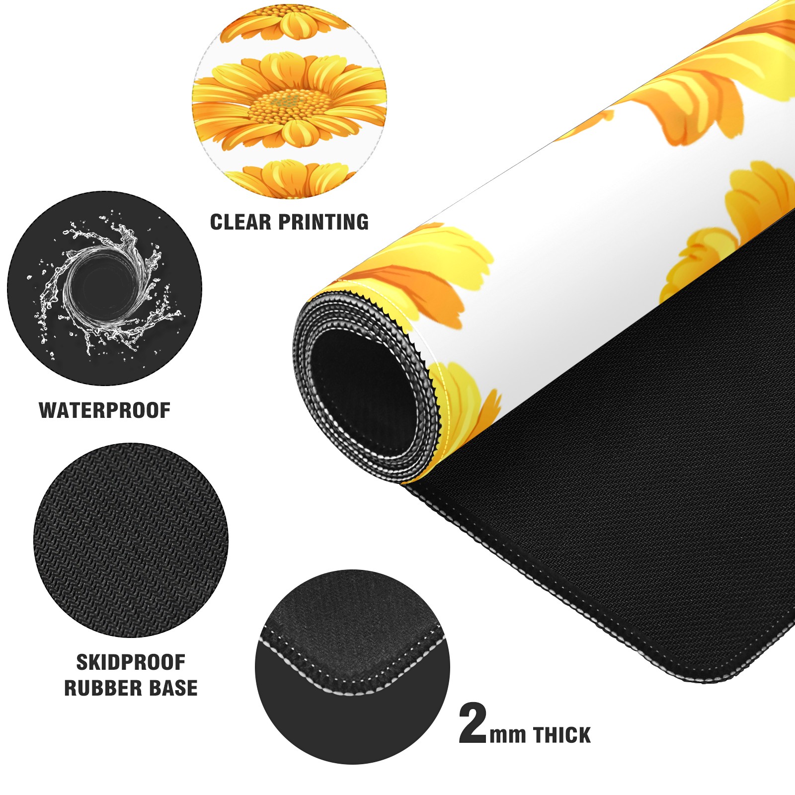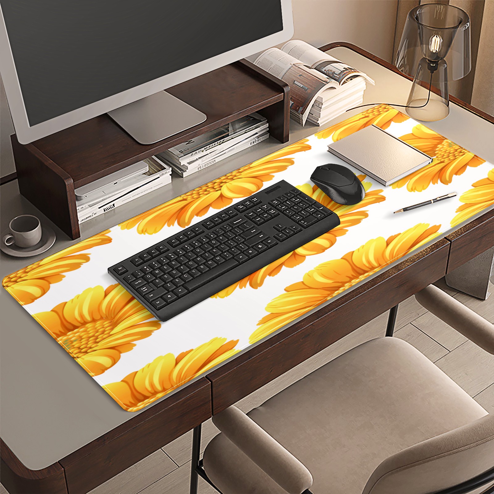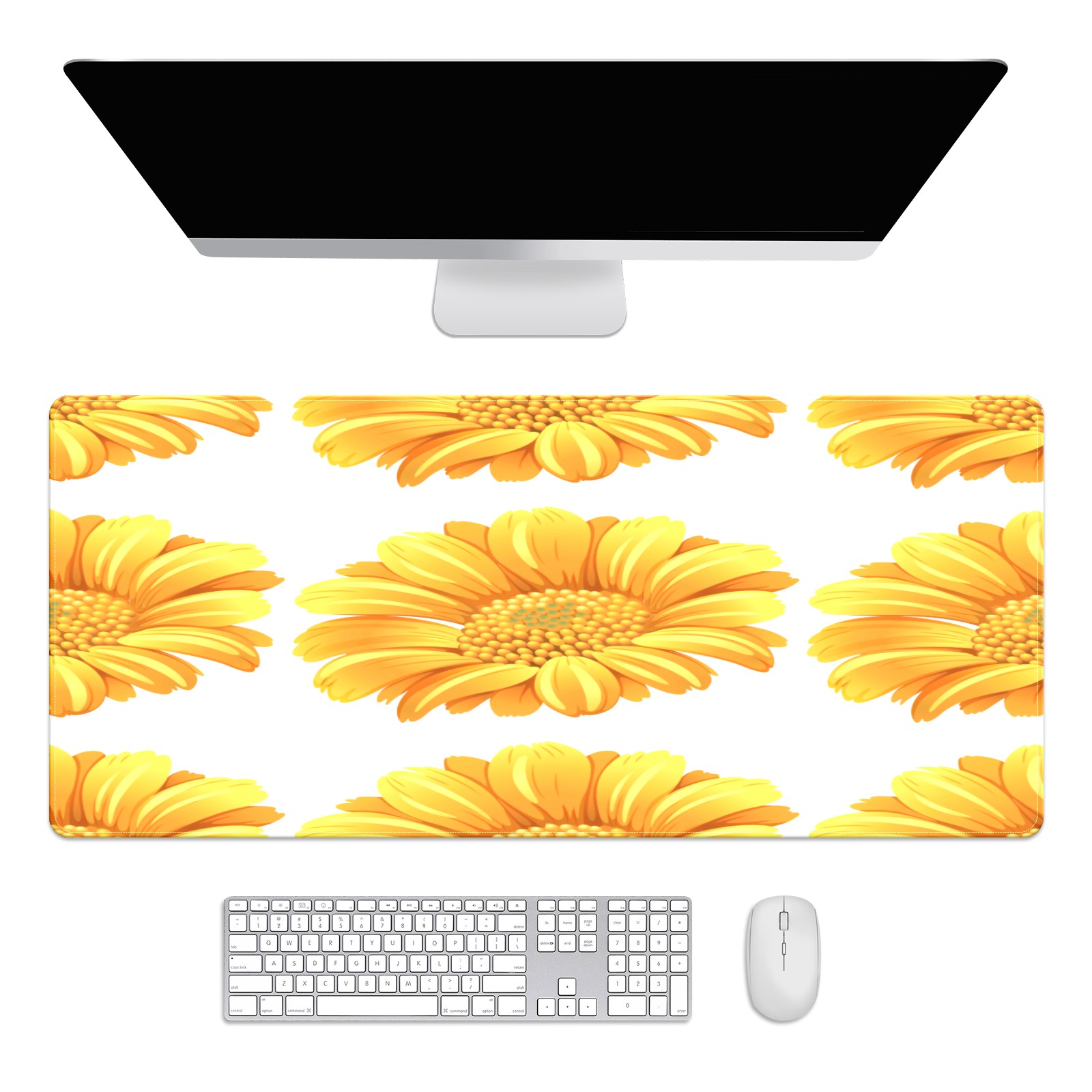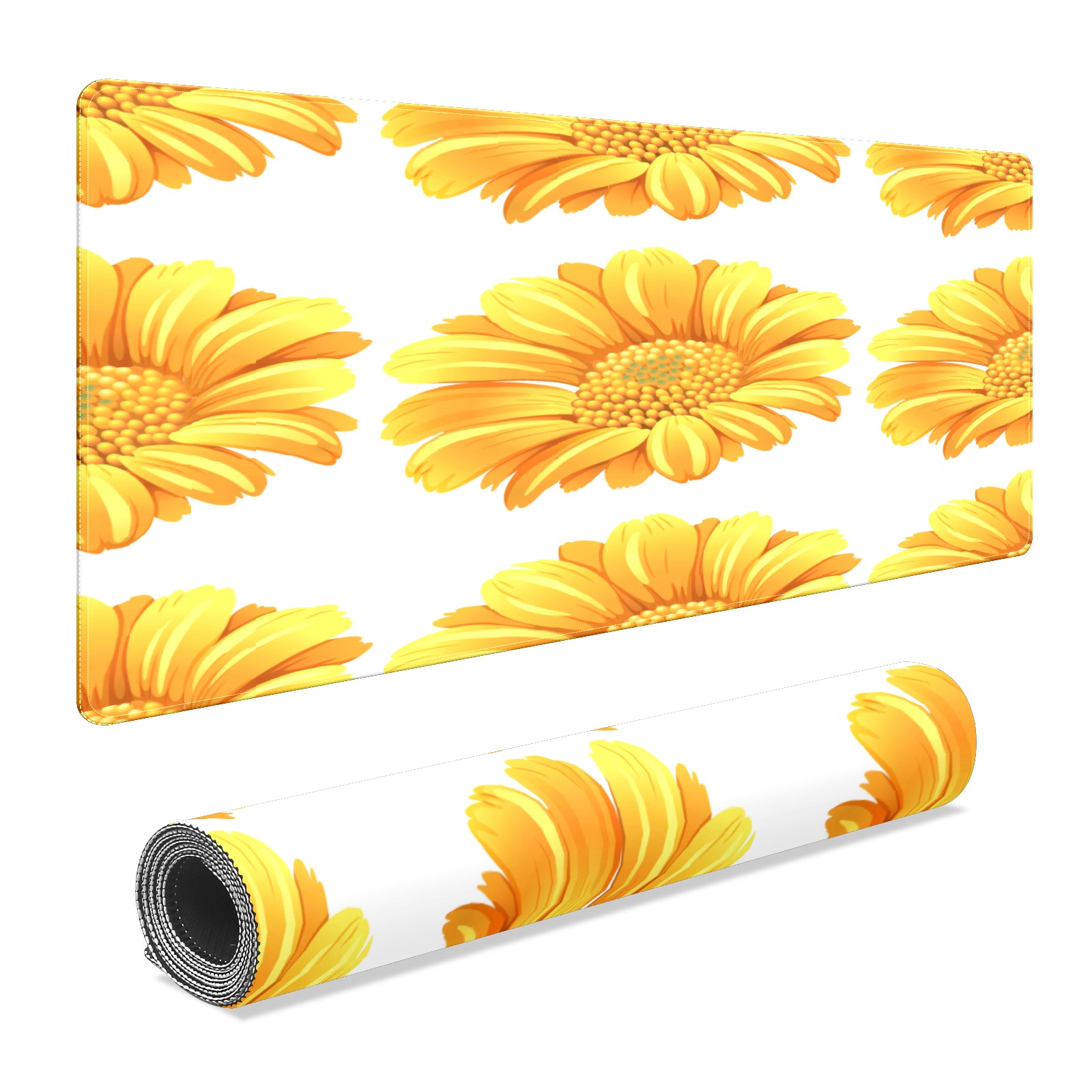 Large Mouse Pad for Desktop, Cute Desk Mat Pad Protector for Work & Gaming, Aesthetic Pretty Anti-Slip Laptop Blotter Cover for Office School Home Supplies, Flower Yellow , 35.4inx15.7in