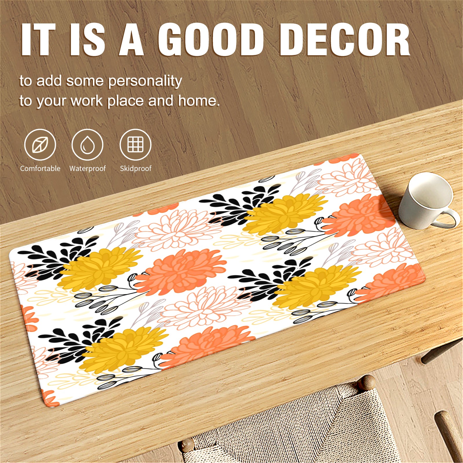 • <p>This 35.4” × 15.7” extended desk mat offers ample space for your keyboard, mouse and essentials, working as a smooth work/writing pad while protecting your desktop from scratches.</p><p>With stylish artistic patterns, it adds personality to your home office, study or gaming setup. The high-density woven surface ensures precise, smooth mouse tracking for work and gaming.</p><p>Featuring an anti-slip natural rubber base for firm grip and stability, the mat is soft, elastic and odorless. Reinforced stitched edges prevent fraying and curling for long-lasting durability.</p>