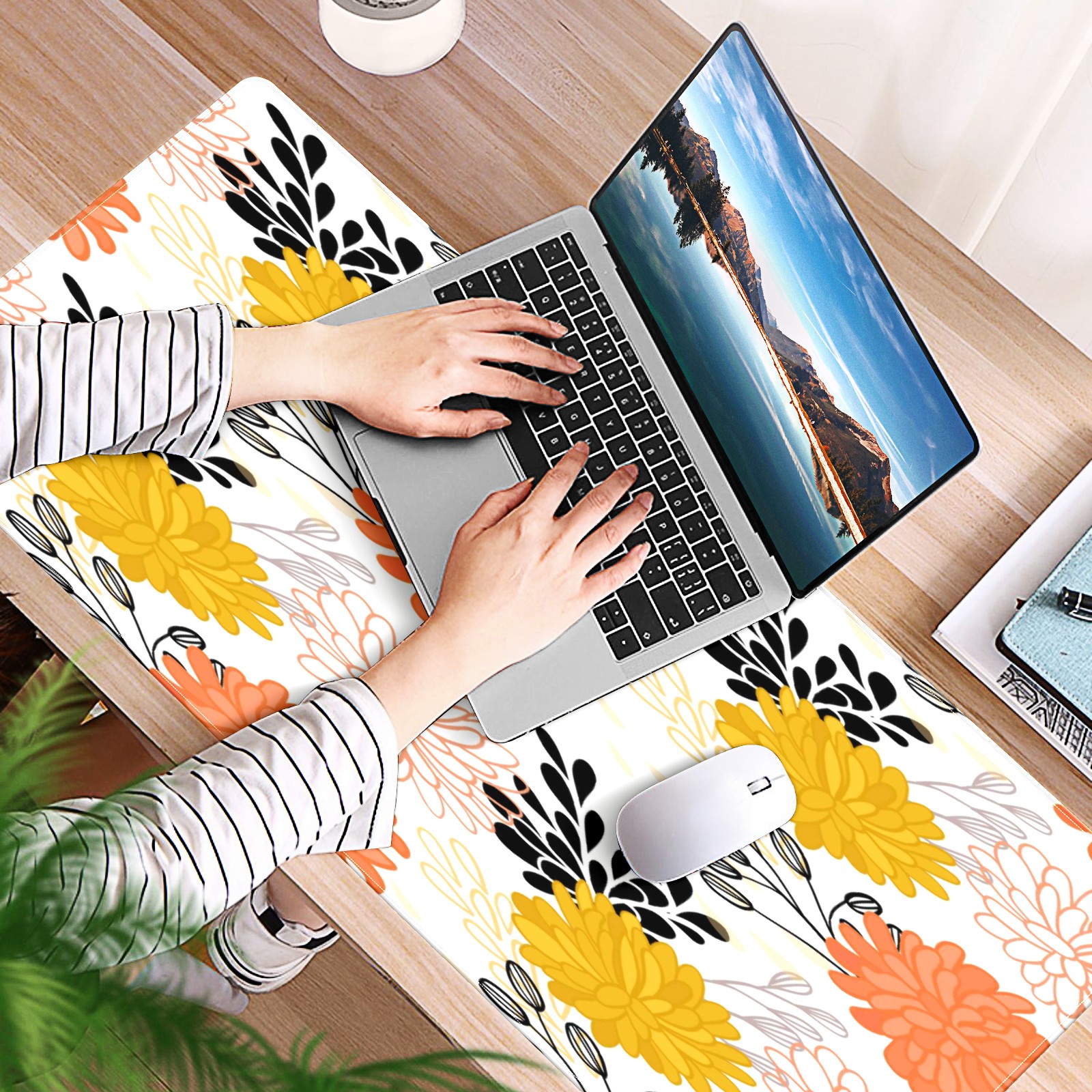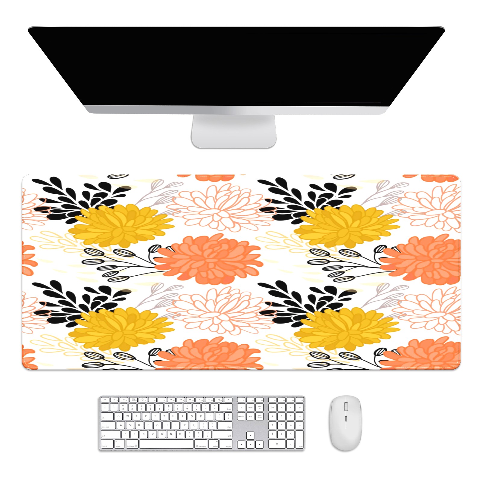 Large Mouse Pad for Desktop, Cute Desk Mat Pad Protector for Work & Gaming, Aesthetic Pretty Anti-Slip Laptop Blotter Cover for Office School Home Supplies, Flowers Simple Pattern , 35.4inx15.7in