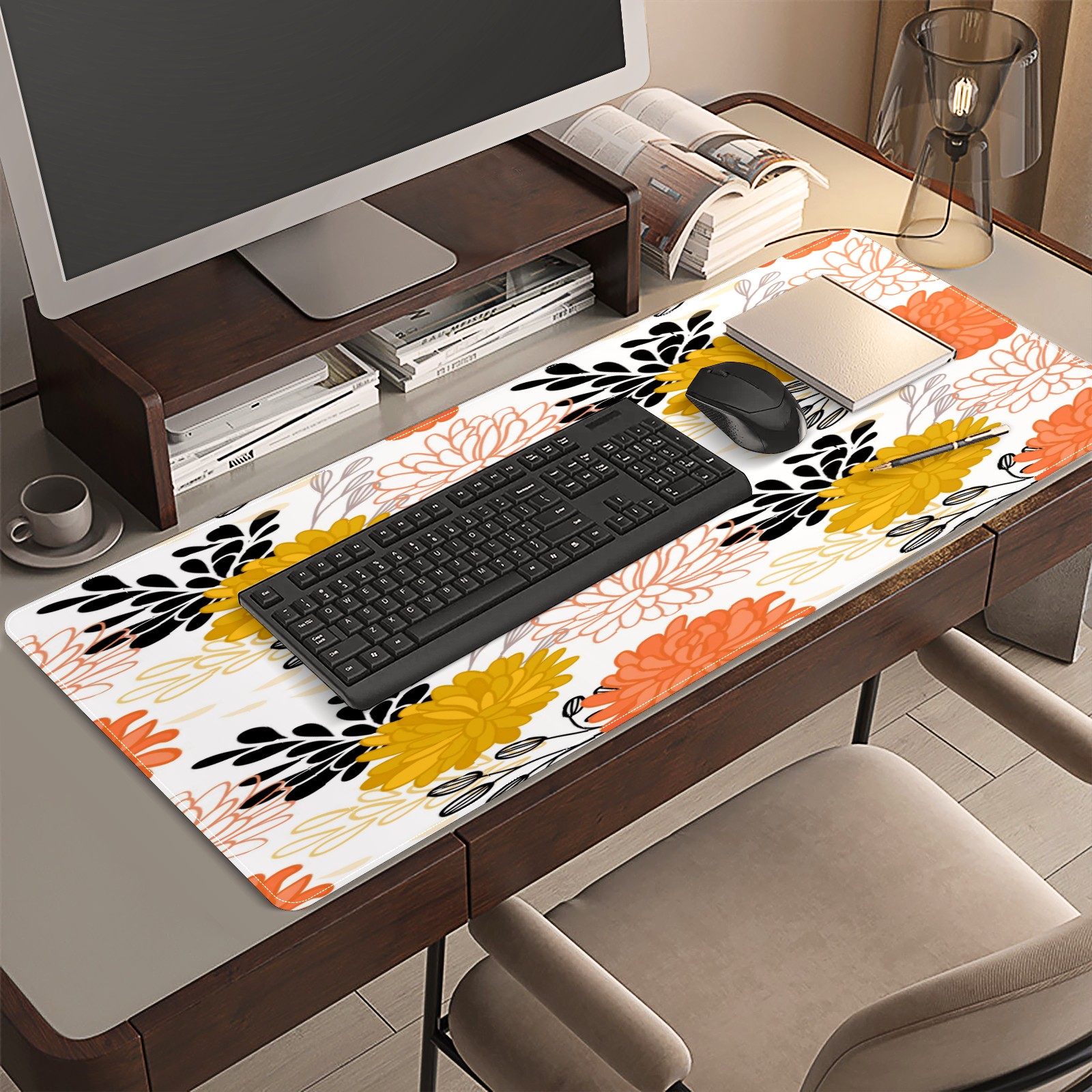 <p>This 35.4” × 15.7” extended desk mat offers ample space for your keyboard, mouse and essentials, working as a smooth work/writing pad while protecting your desktop from scratches.</p><p>With stylish artistic patterns, it adds personality to your home office, study or gaming setup. The high-density woven surface ensures precise, smooth mouse tracking for work and gaming.</p><p>Featuring an anti-slip natural rubber base for firm grip and stability, the mat is soft, elastic and odorless. Reinforced stitched edges prevent fraying and curling for long-lasting durability.</p>