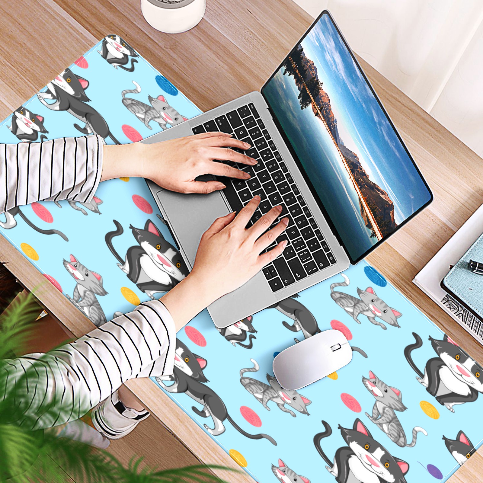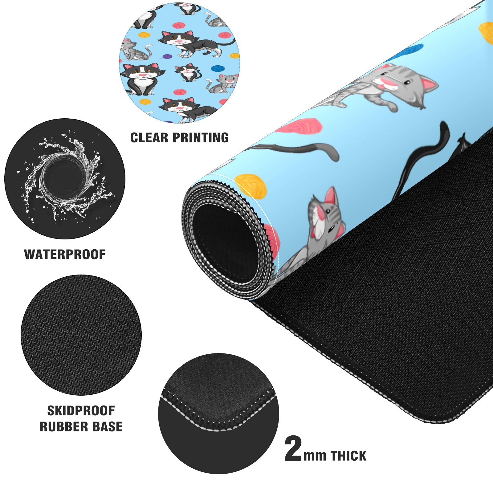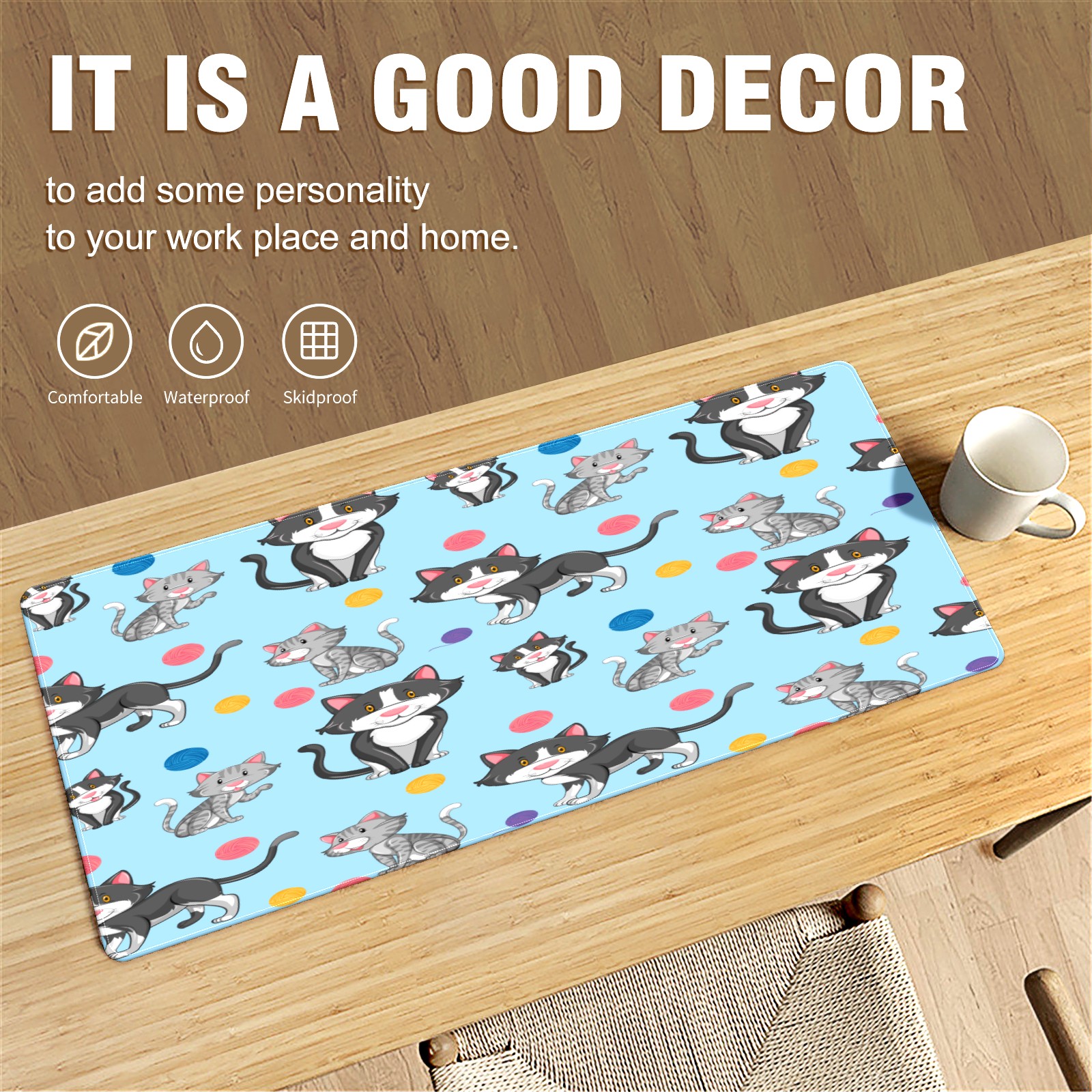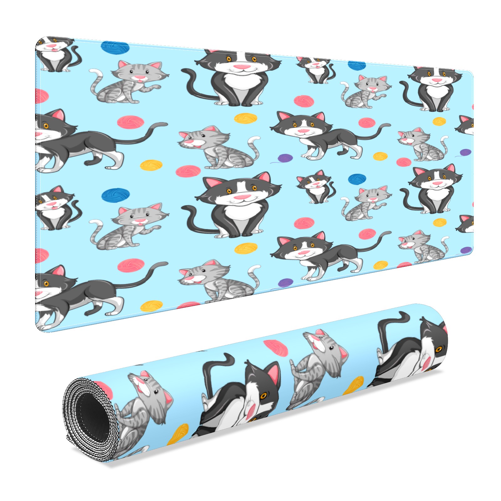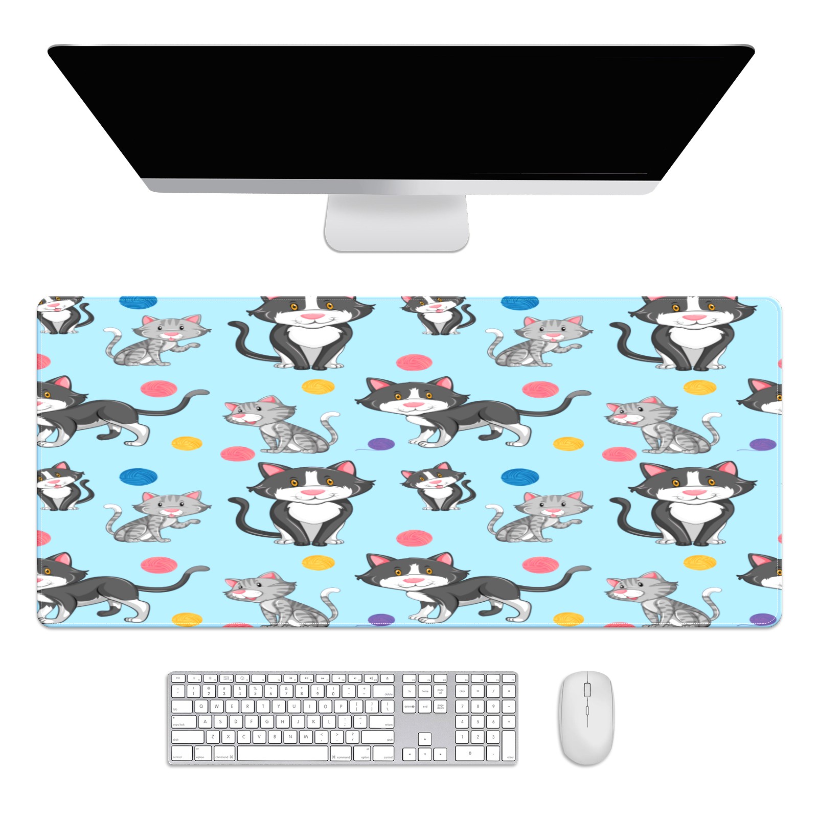 Large Mouse Pad for Desktop, Cute Desk Mat Pad Protector for Work & Gaming, Aesthetic Pretty Anti-Slip Laptop Blotter Cover for Office School Home Supplies, Different Cat Pattern , 35.4inx15.7in