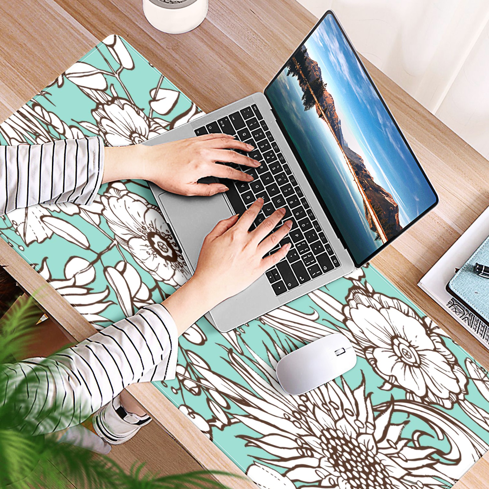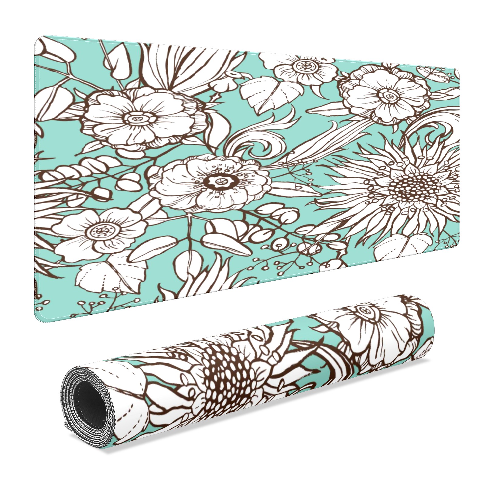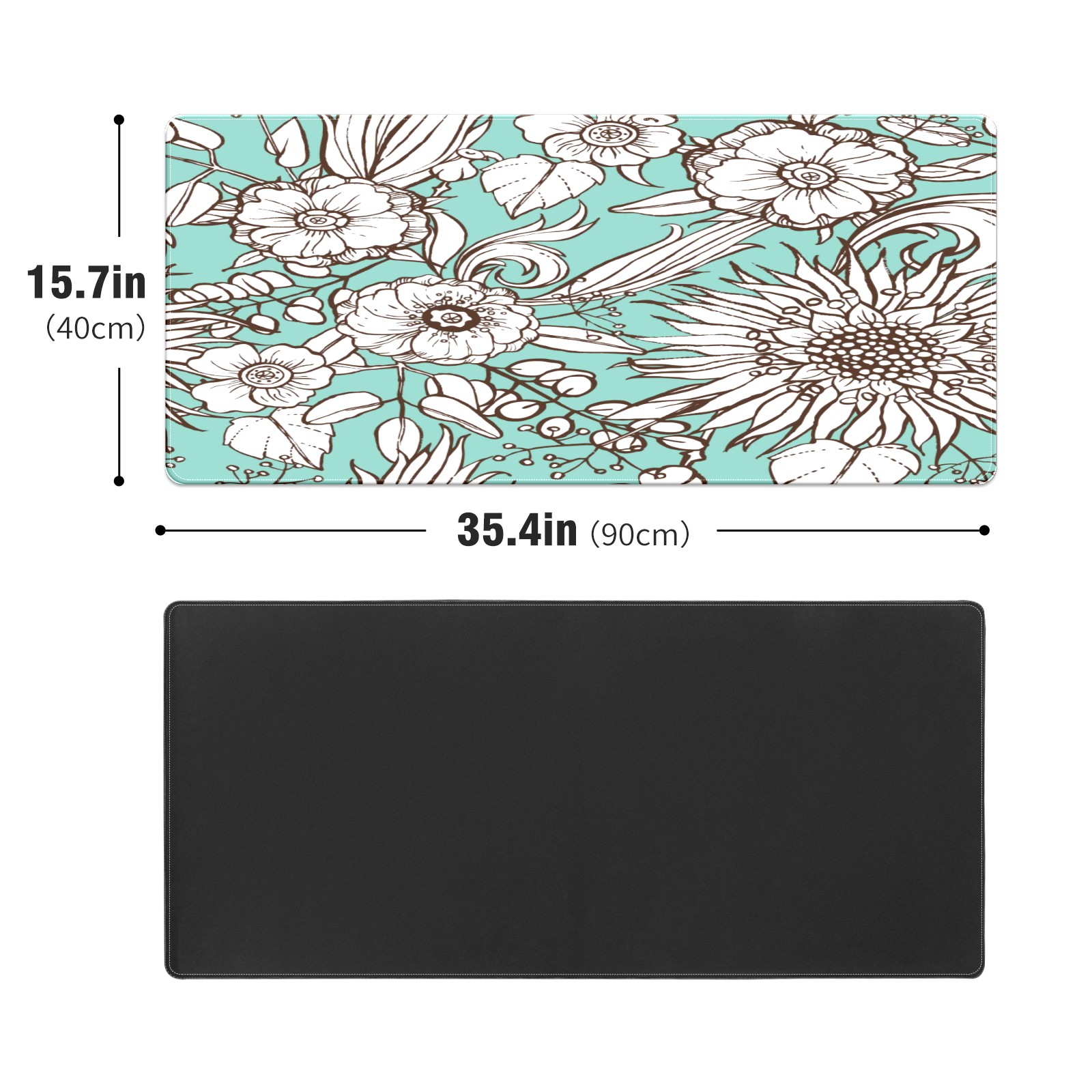 Large Mouse Pad for Desktop, Cute Desk Mat Pad Protector for Work & Gaming, Aesthetic Pretty Anti-Slip Laptop Blotter Cover for Office School Home Supplies, Flower Blue , 35.4inx15.7in