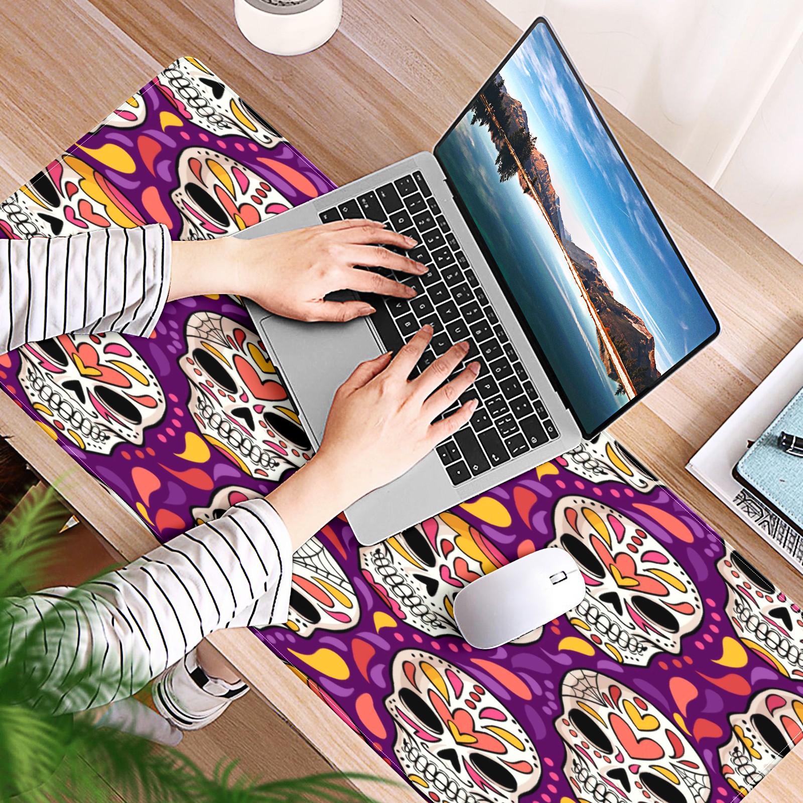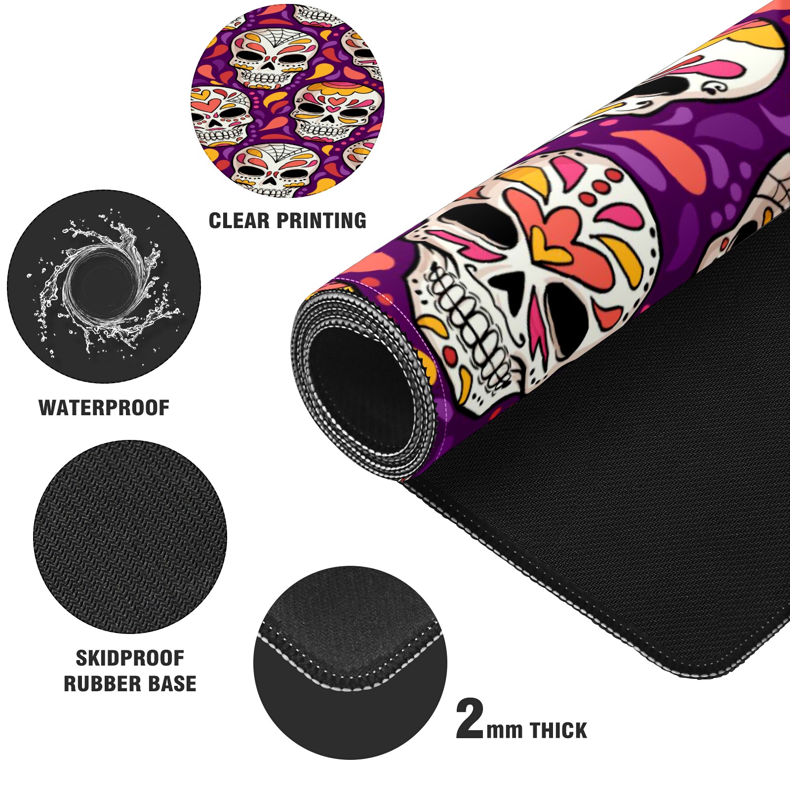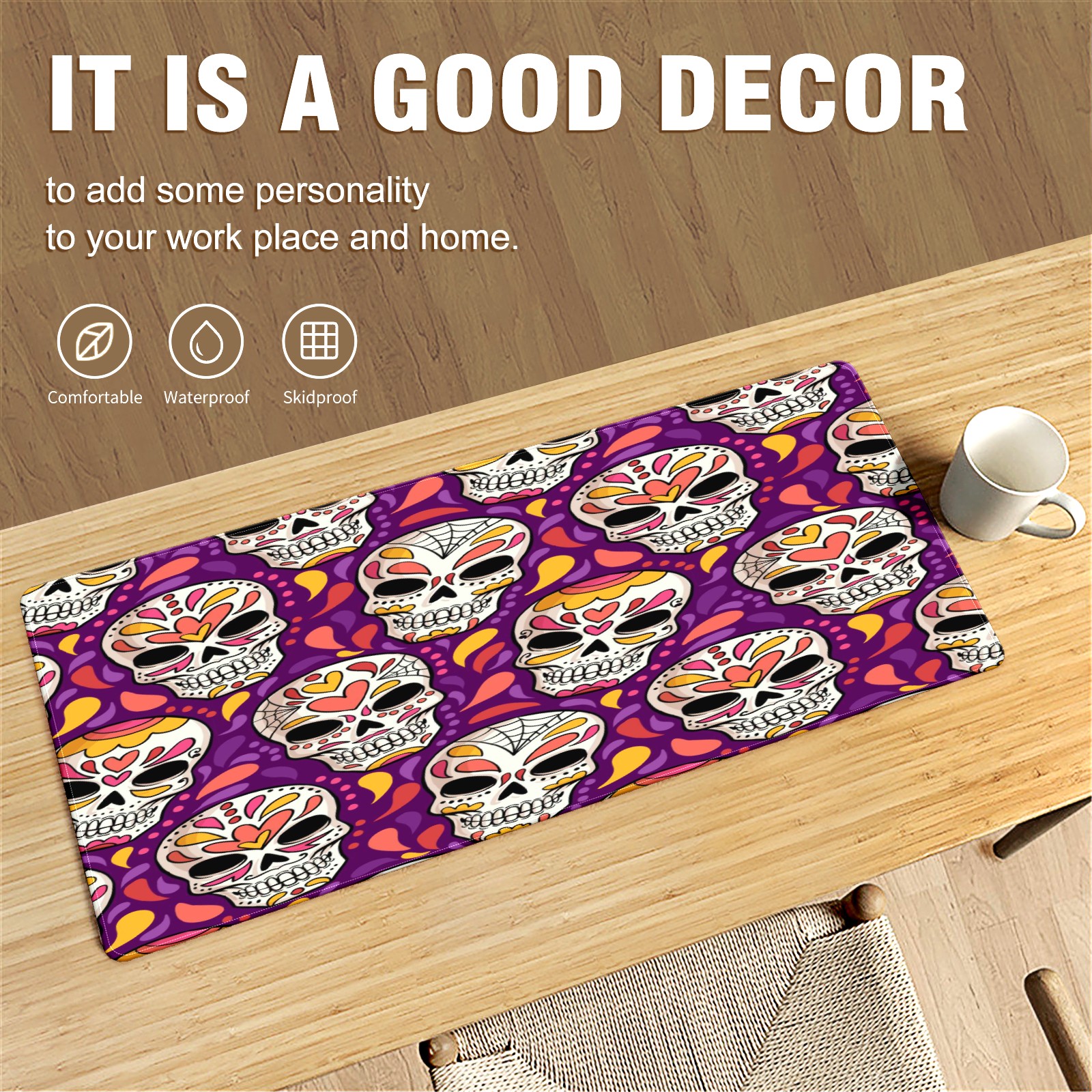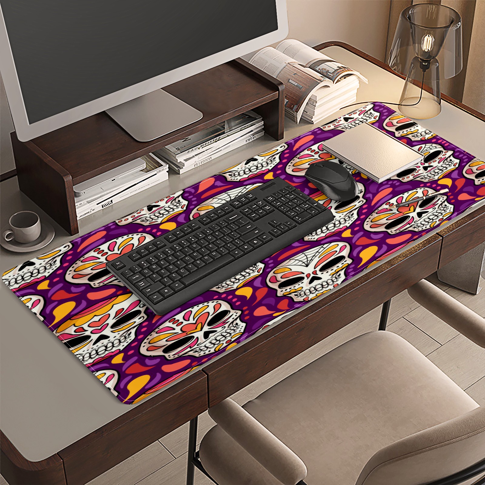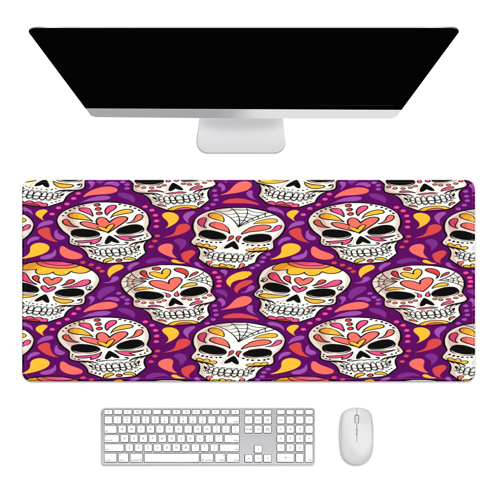 Large Mouse Pad for Desktop, Cute Desk Mat Pad Protector for Work & Gaming, Aesthetic Pretty Anti-Slip Laptop Blotter Cover for Office School Home Supplies, Day Of The Dead Pattern , 35.4inx15.7in