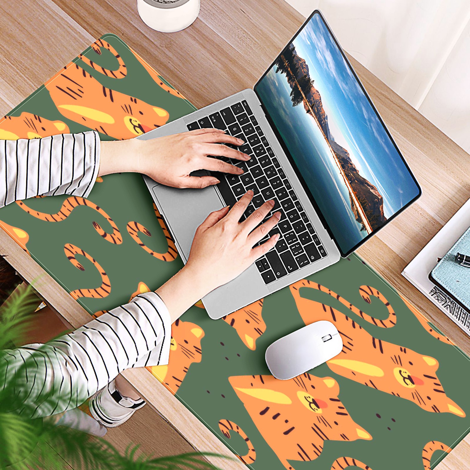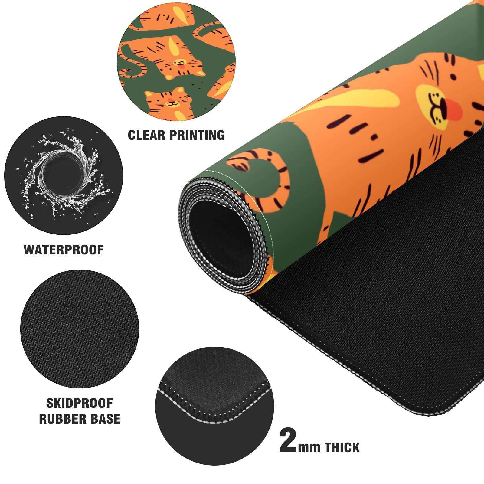 Large Mouse Pad for Desktop, Cute Desk Mat Pad Protector for Work & Gaming, Aesthetic Pretty Anti-Slip Laptop Blotter Cover for Office School Home Supplies, Cute Tiger Pattern , 35.4inx15.7in