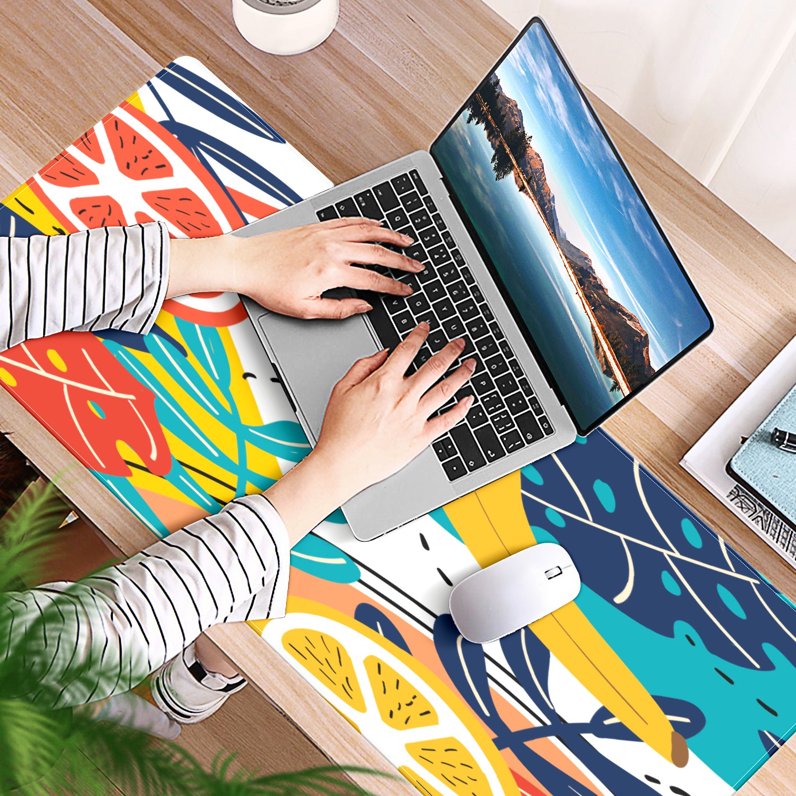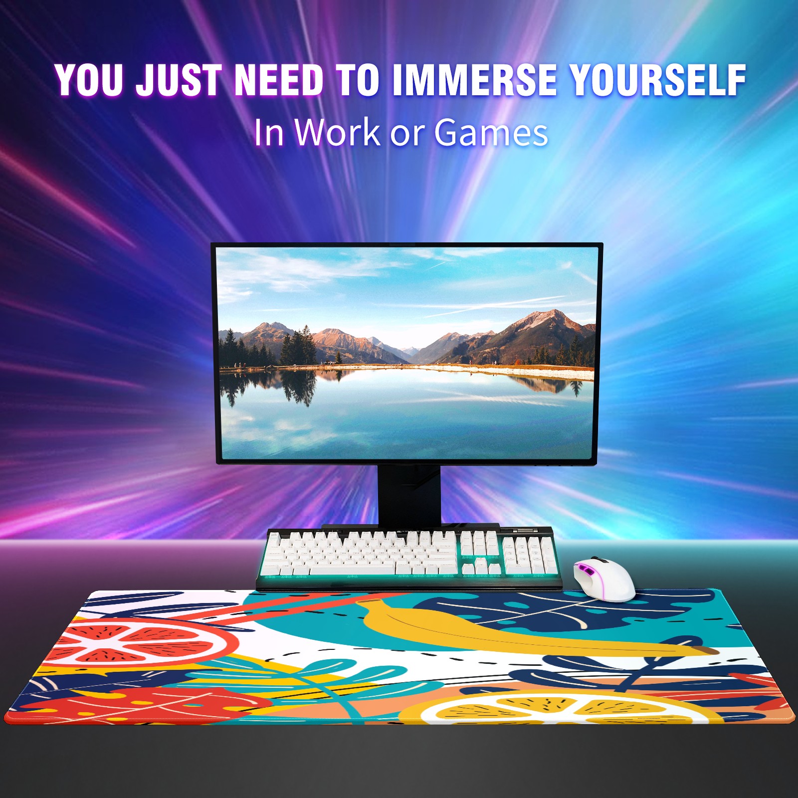 Large Mouse Pad for Desktop, Cute Desk Mat Pad Protector for Work & Gaming, Aesthetic Pretty Anti-Slip Laptop Blotter Cover for Office School Home Supplies, Colorful Tropical Plants , 35.4inx15.7in