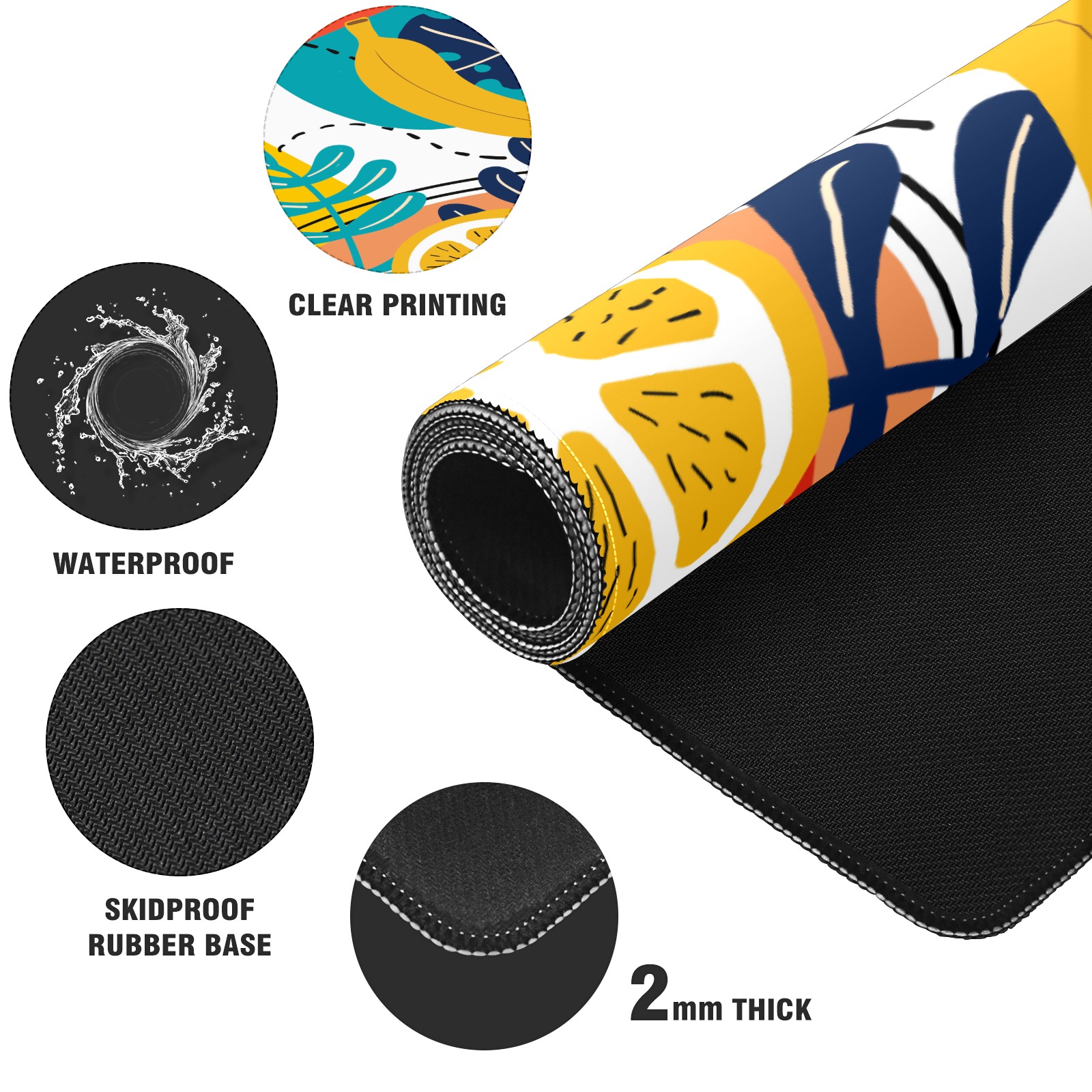 • <p>This 35.4” × 15.7” extended desk mat offers ample space for your keyboard, mouse and essentials, working as a smooth work/writing pad while protecting your desktop from scratches.</p><p>With stylish artistic patterns, it adds personality to your home office, study or gaming setup. The high-density woven surface ensures precise, smooth mouse tracking for work and gaming.</p><p>Featuring an anti-slip natural rubber base for firm grip and stability, the mat is soft, elastic and odorless. Reinforced stitched edges prevent fraying and curling for long-lasting durability.</p>