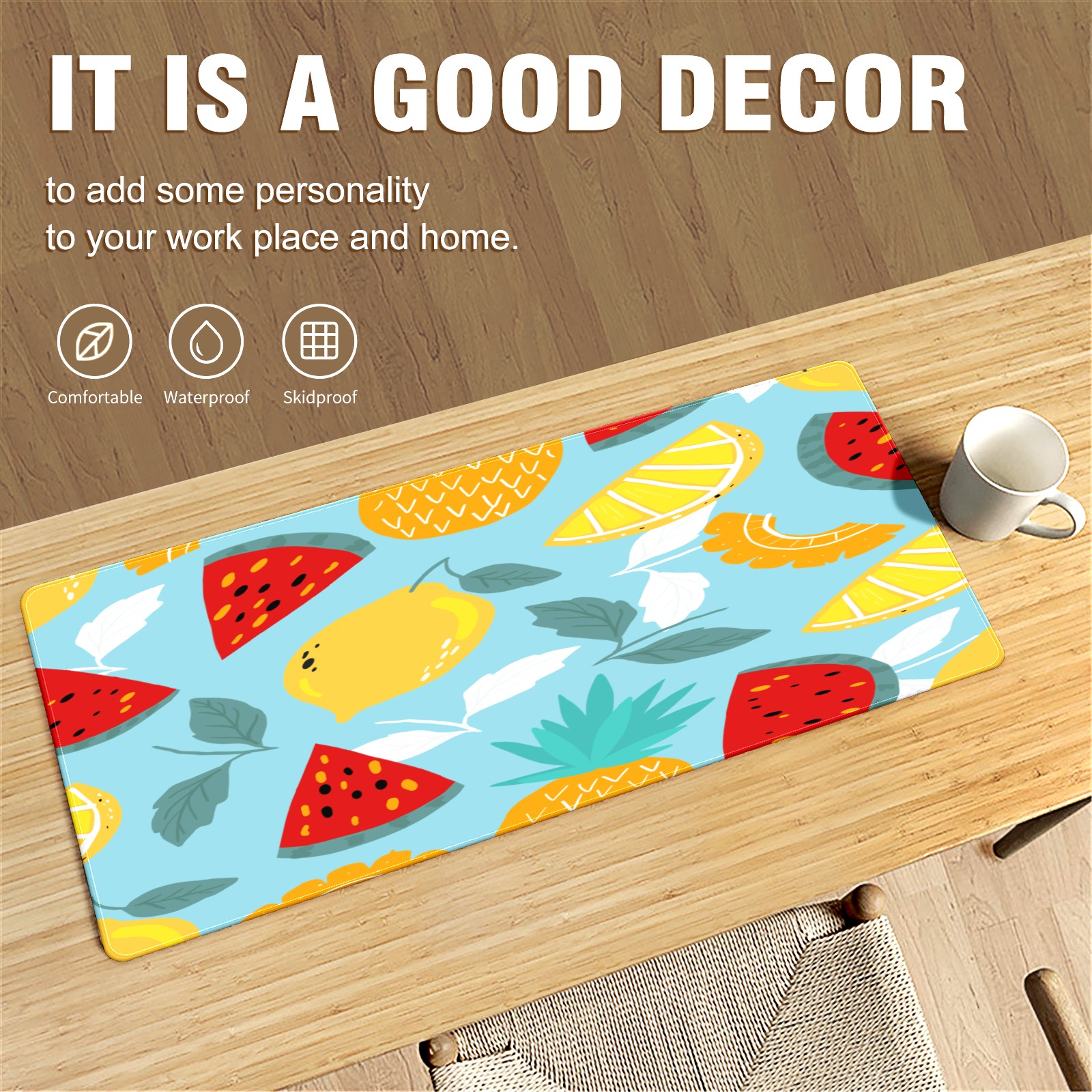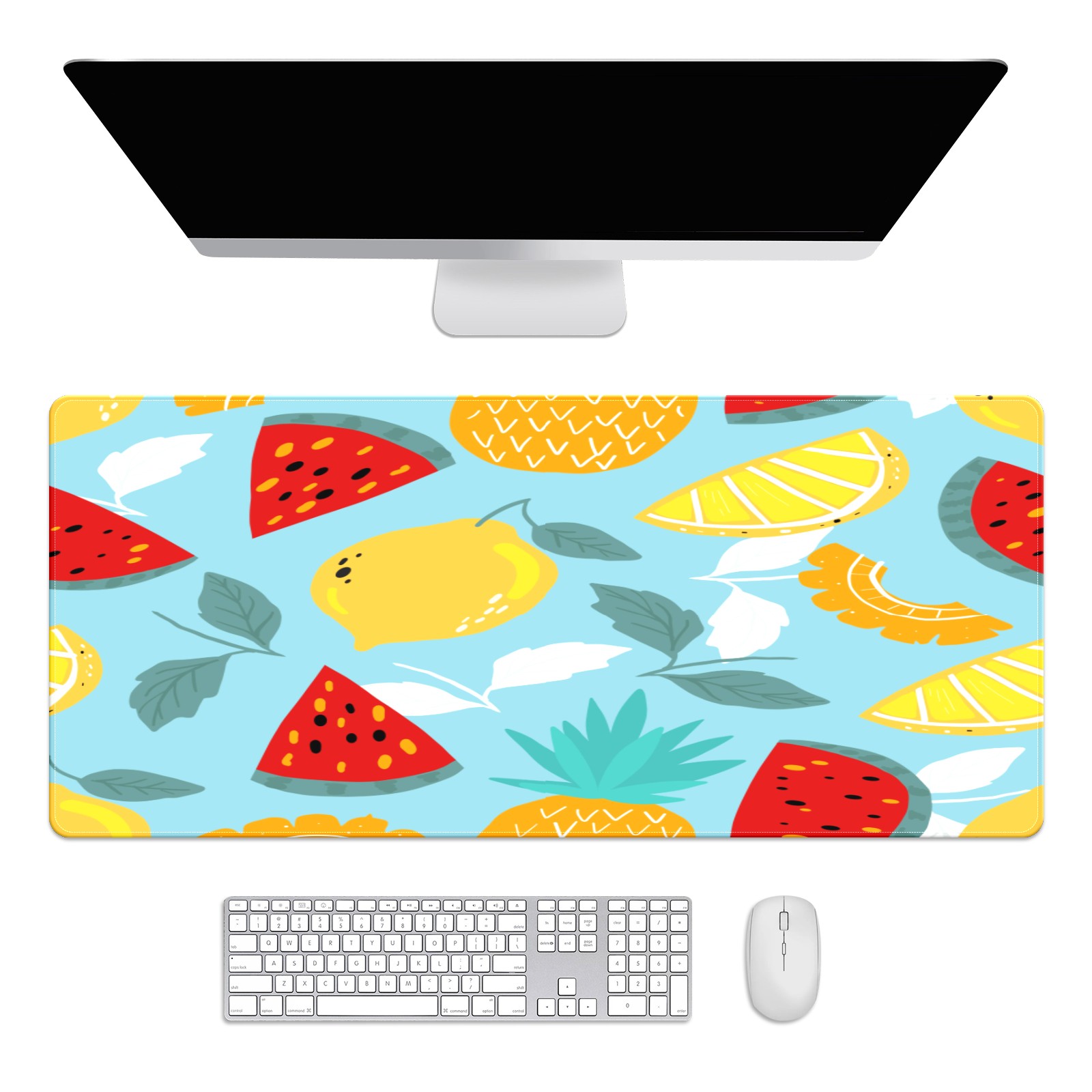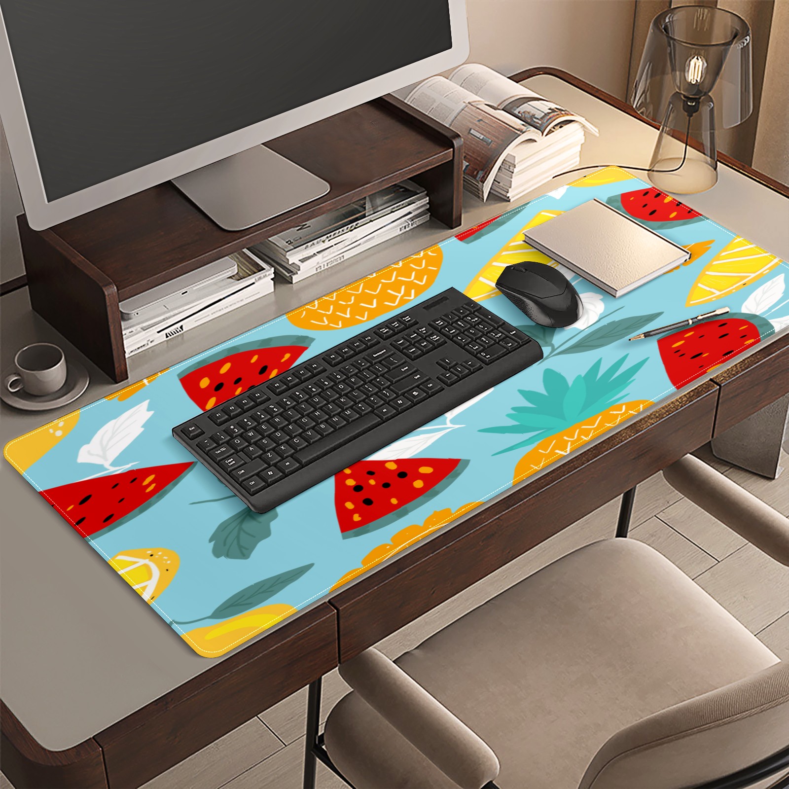 Large Mouse Pad for Desktop, Cute Desk Mat Pad Protector for Work & Gaming, Aesthetic Pretty Anti-Slip Laptop Blotter Cover for Office School Home Supplies, Colorful Fruits Pattern , 35.4inx15.7in