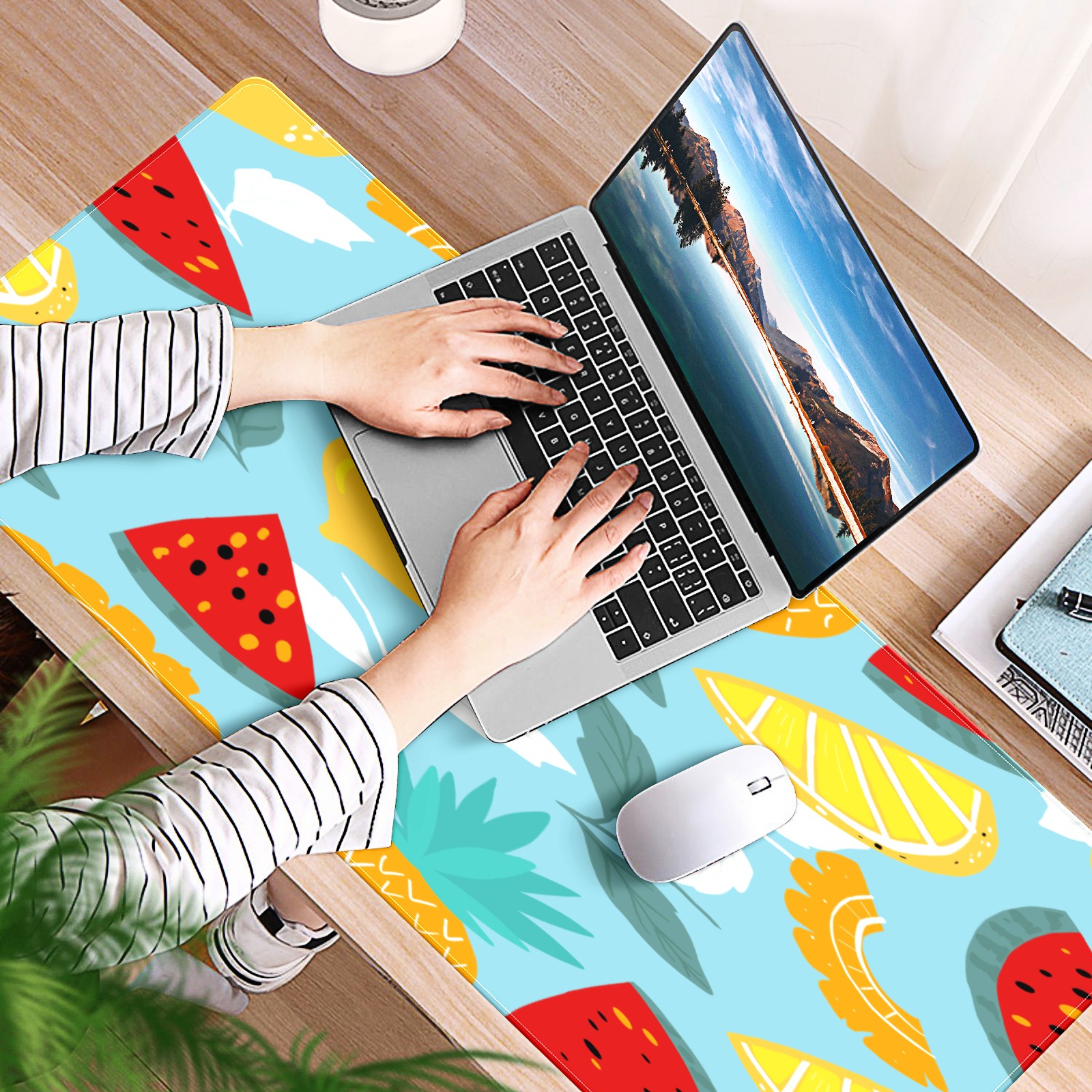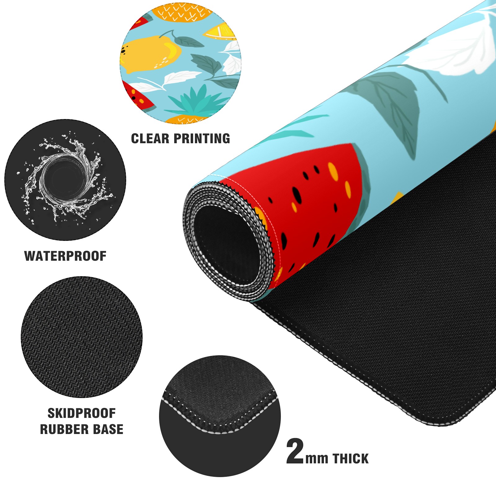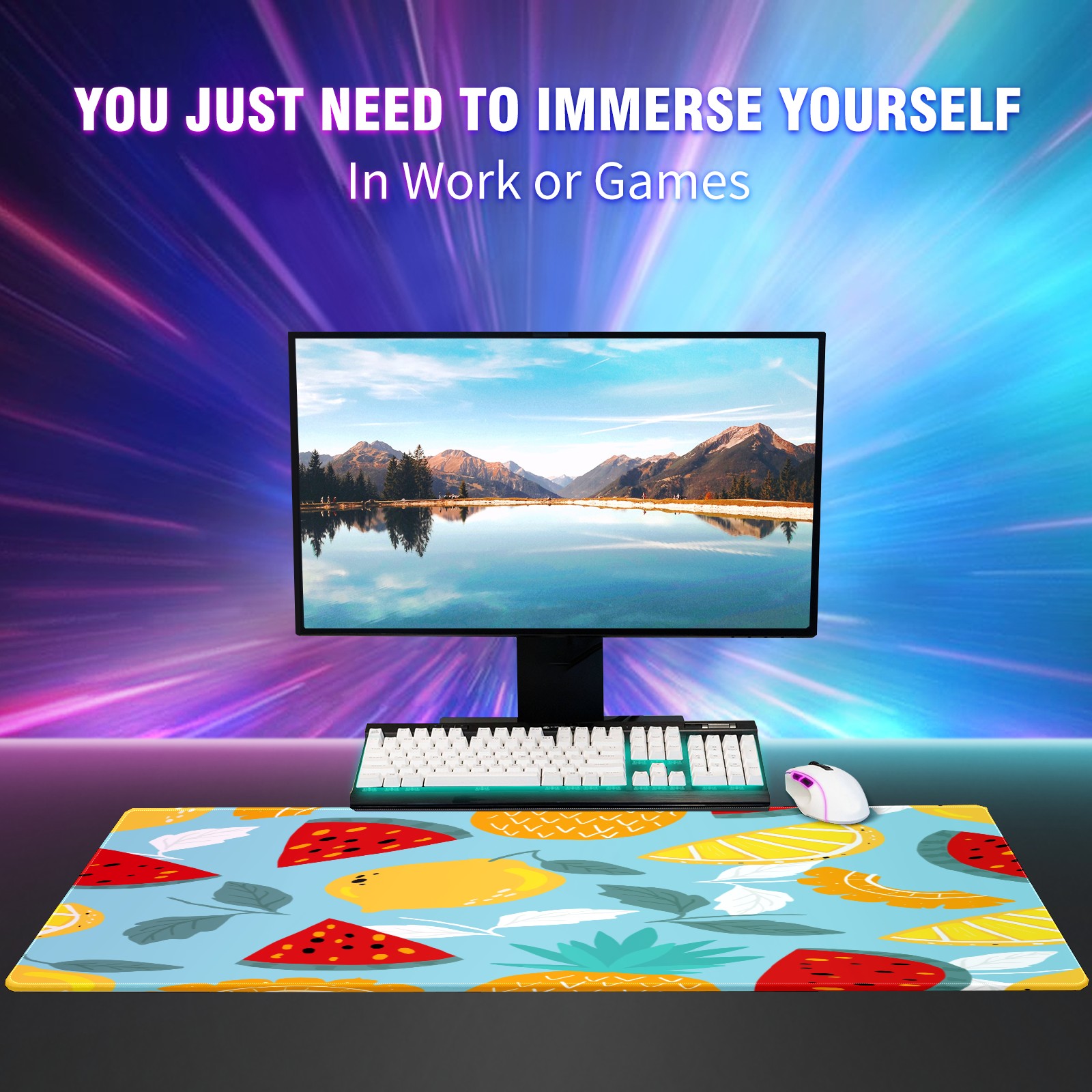 Large Mouse Pad for Desktop, Cute Desk Mat Pad Protector for Work & Gaming, Aesthetic Pretty Anti-Slip Laptop Blotter Cover for Office School Home Supplies, Colorful Fruits Pattern , 35.4inx15.7in