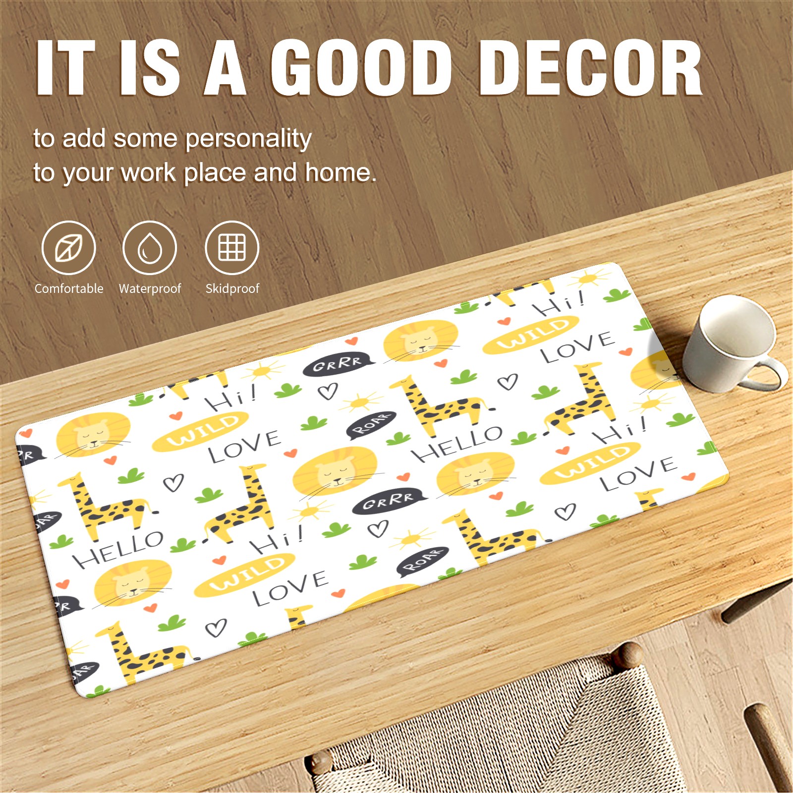 Large Mouse Pad for Desktop, Cute Desk Mat Pad Protector for Work & Gaming, Aesthetic Pretty Anti-Slip Laptop Blotter Cover for Office School Home Supplies, Colorful Giraffes Pattern , 35.4inx15.7in