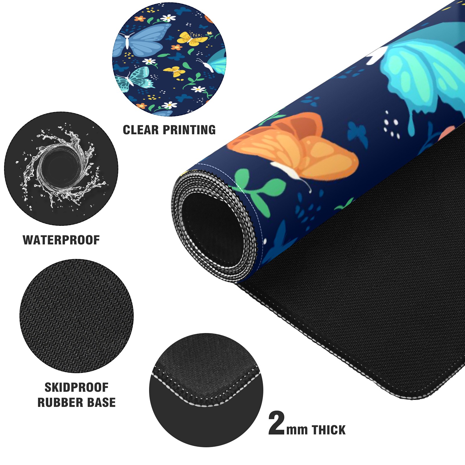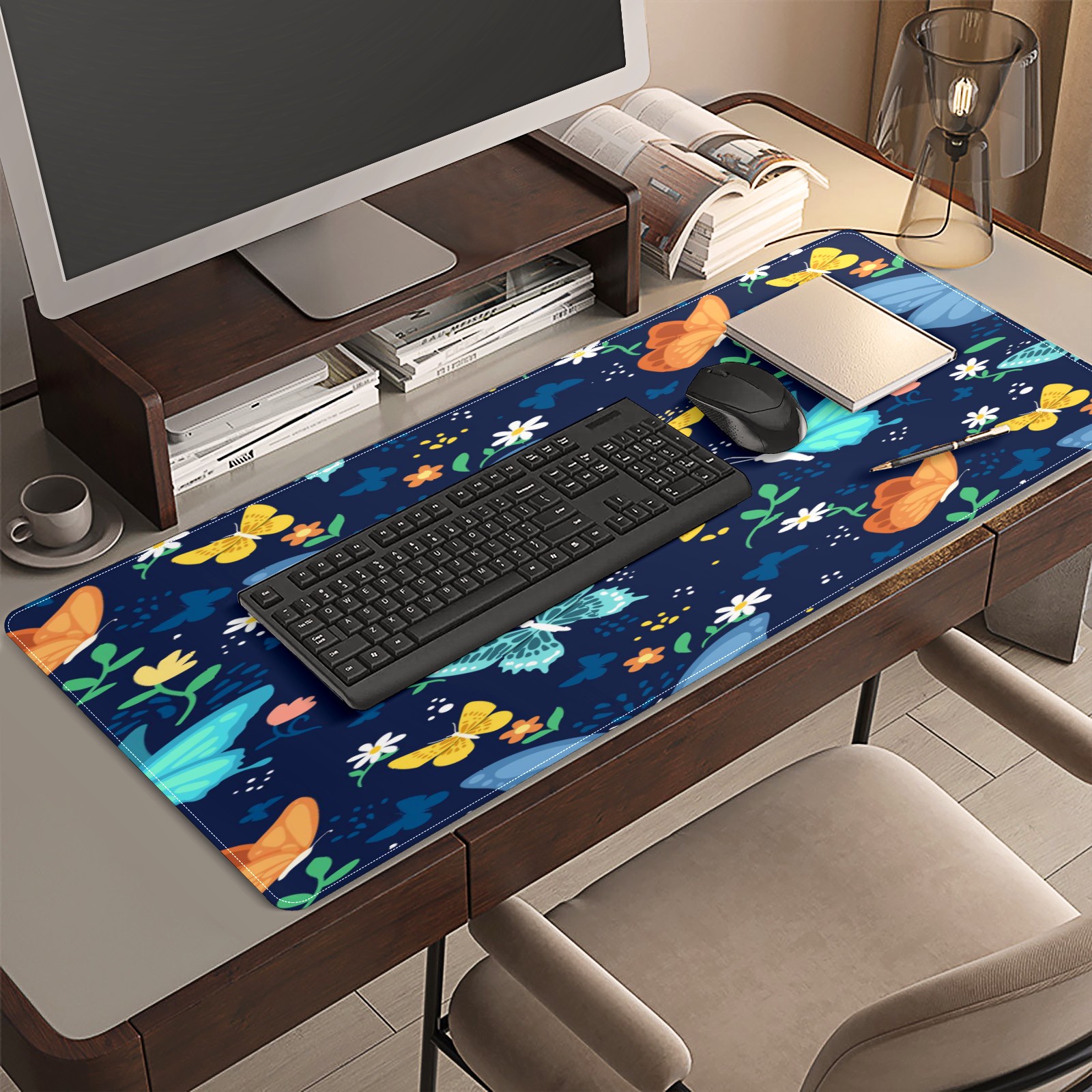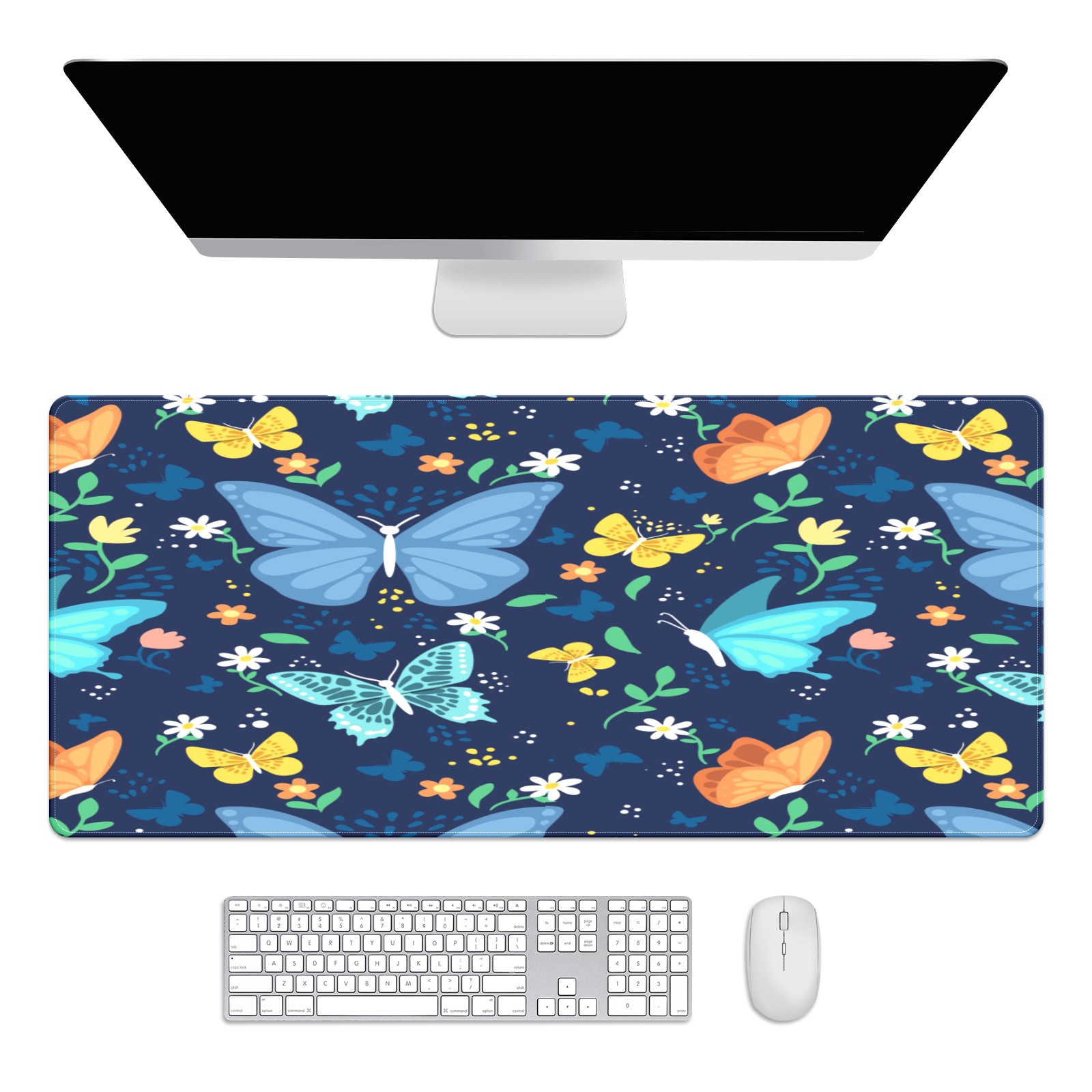 Large Mouse Pad for Desktop, Cute Desk Mat Pad Protector for Work & Gaming, Aesthetic Pretty Anti-Slip Laptop Blotter Cover for Office School Home Supplies, Colorful Butterfly , 35.4inx15.7in