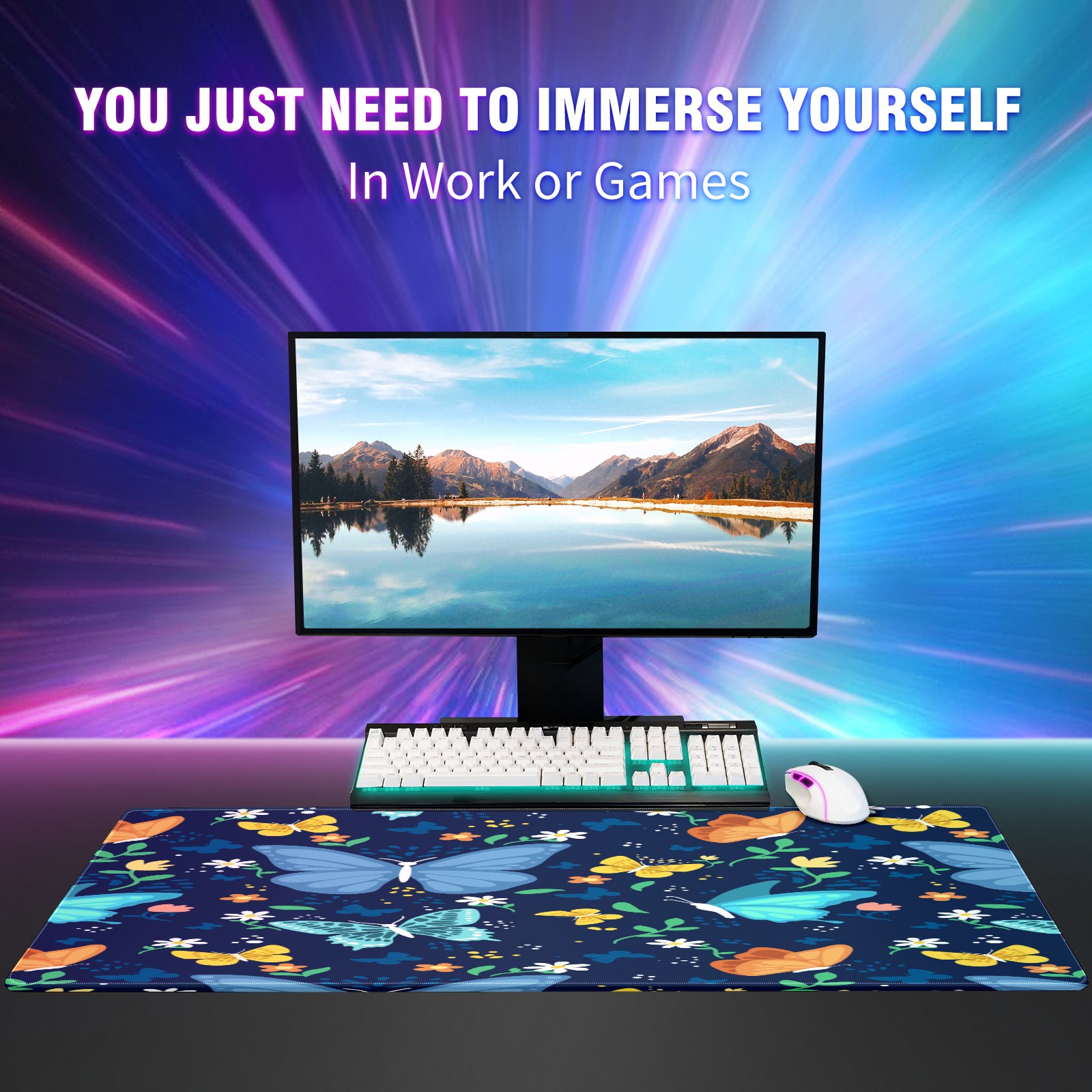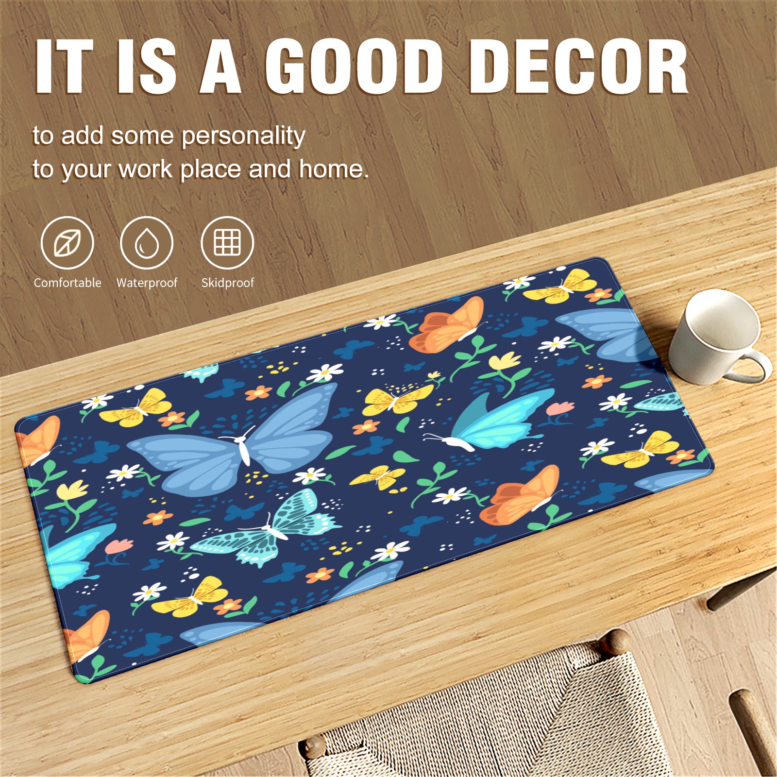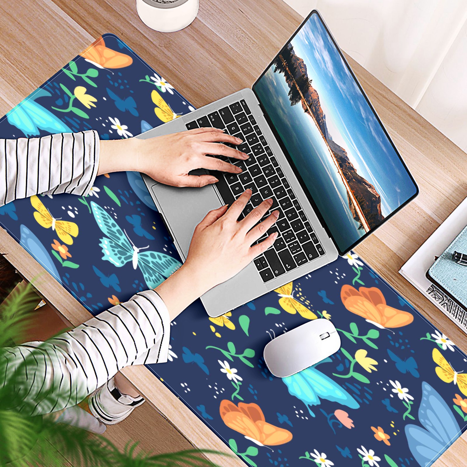 Large Mouse Pad for Desktop, Cute Desk Mat Pad Protector for Work & Gaming, Aesthetic Pretty Anti-Slip Laptop Blotter Cover for Office School Home Supplies, Colorful Butterfly , 35.4inx15.7in