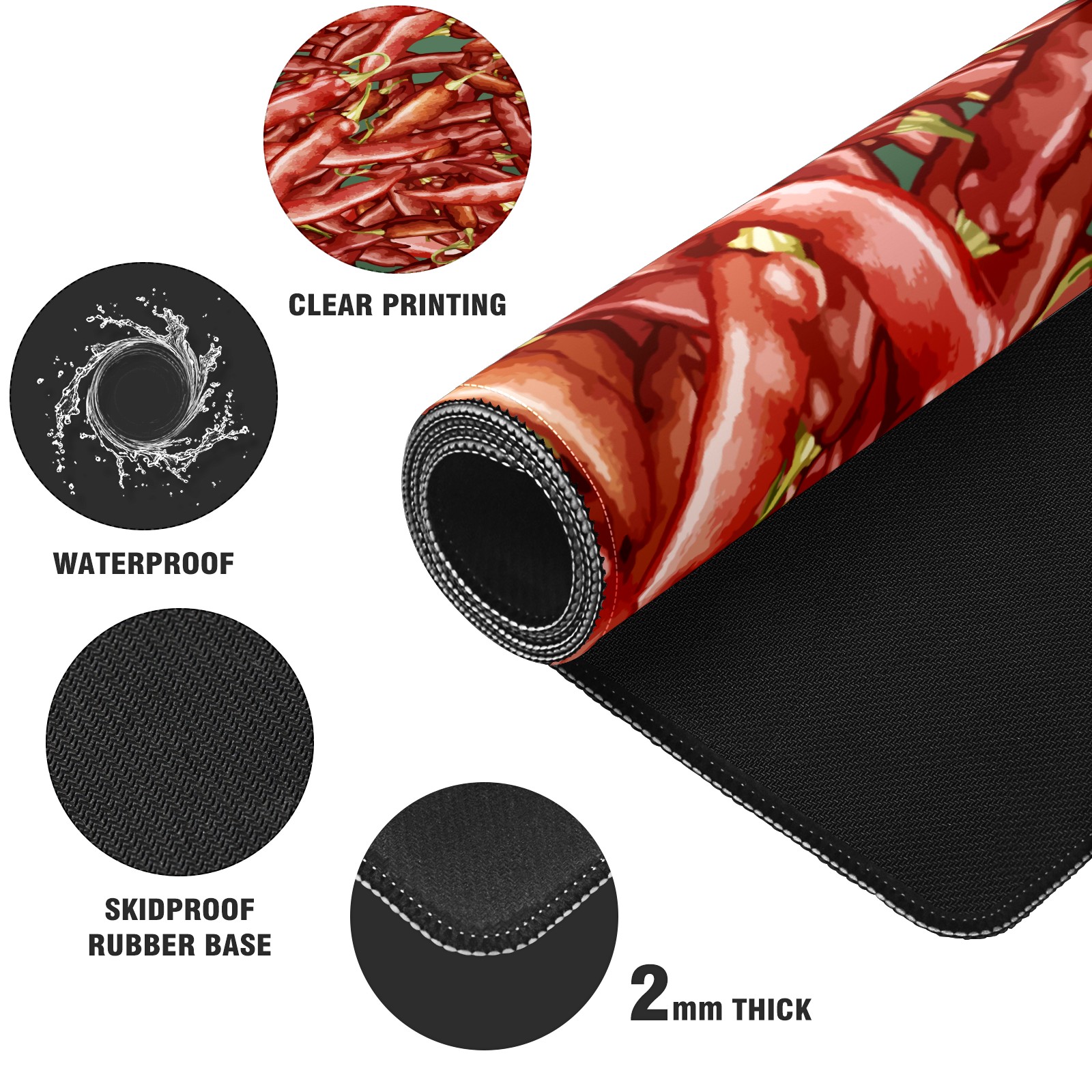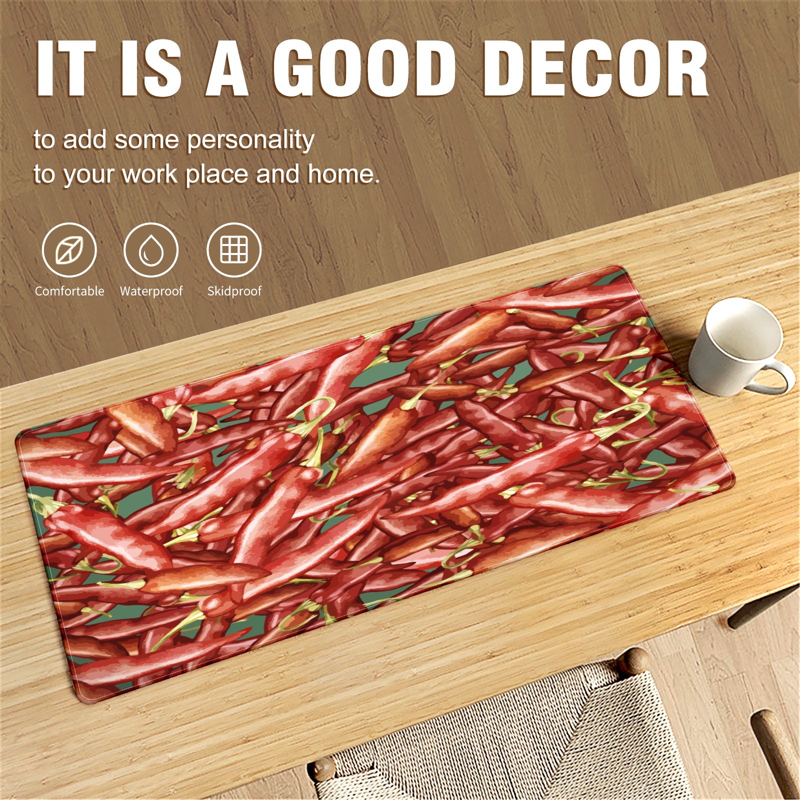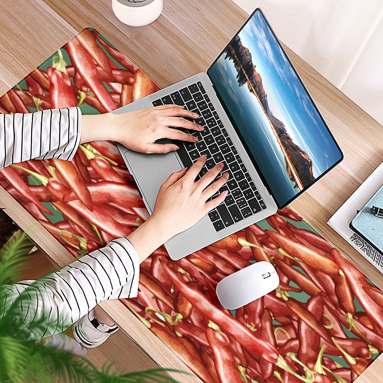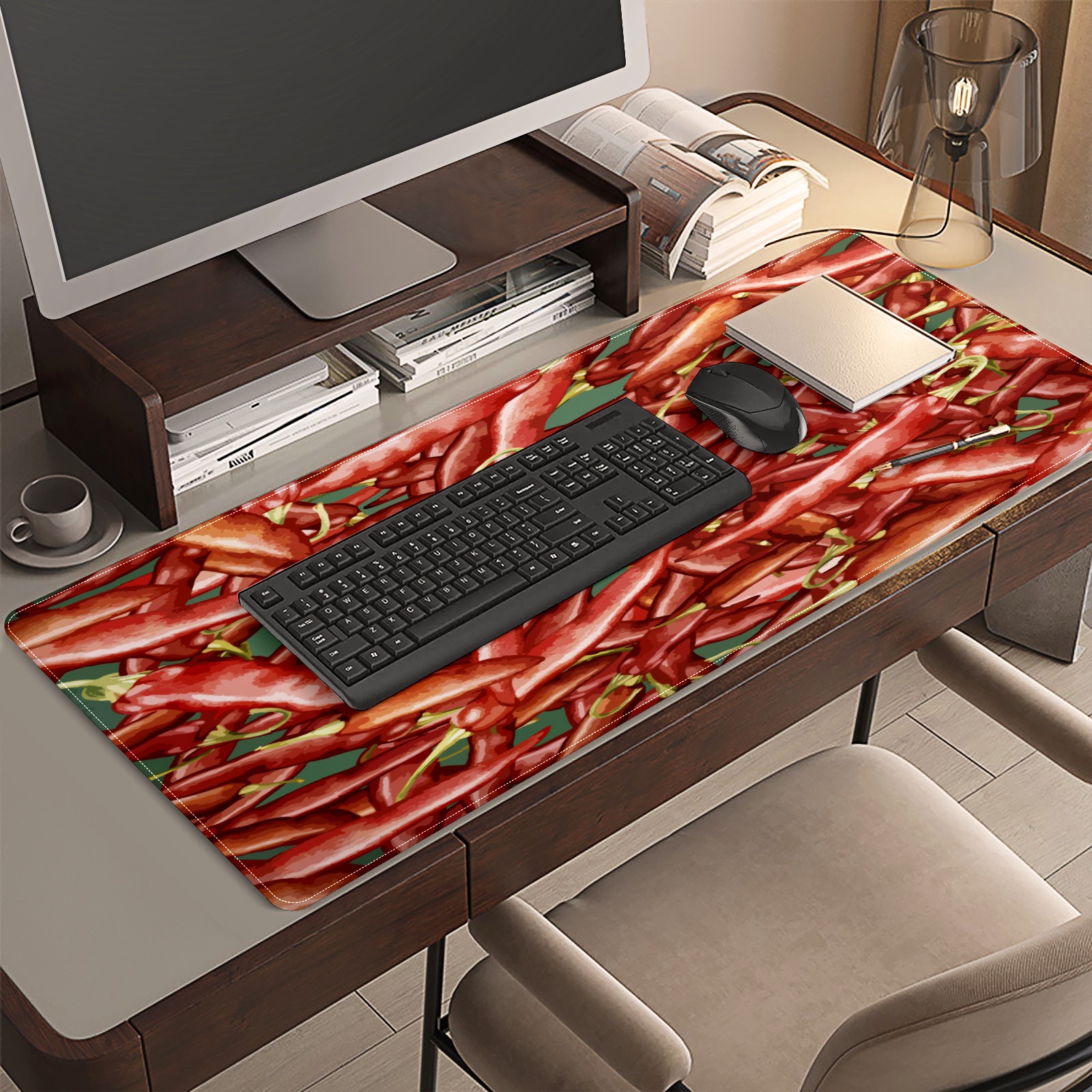 Large Mouse Pad for Desktop, Cute Desk Mat Pad Protector for Work & Gaming, Aesthetic Pretty Anti-Slip Laptop Blotter Cover for Office School Home Supplies, Chili Red , 35.4inx15.7in