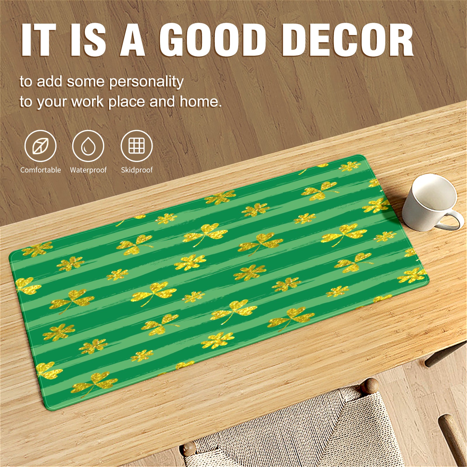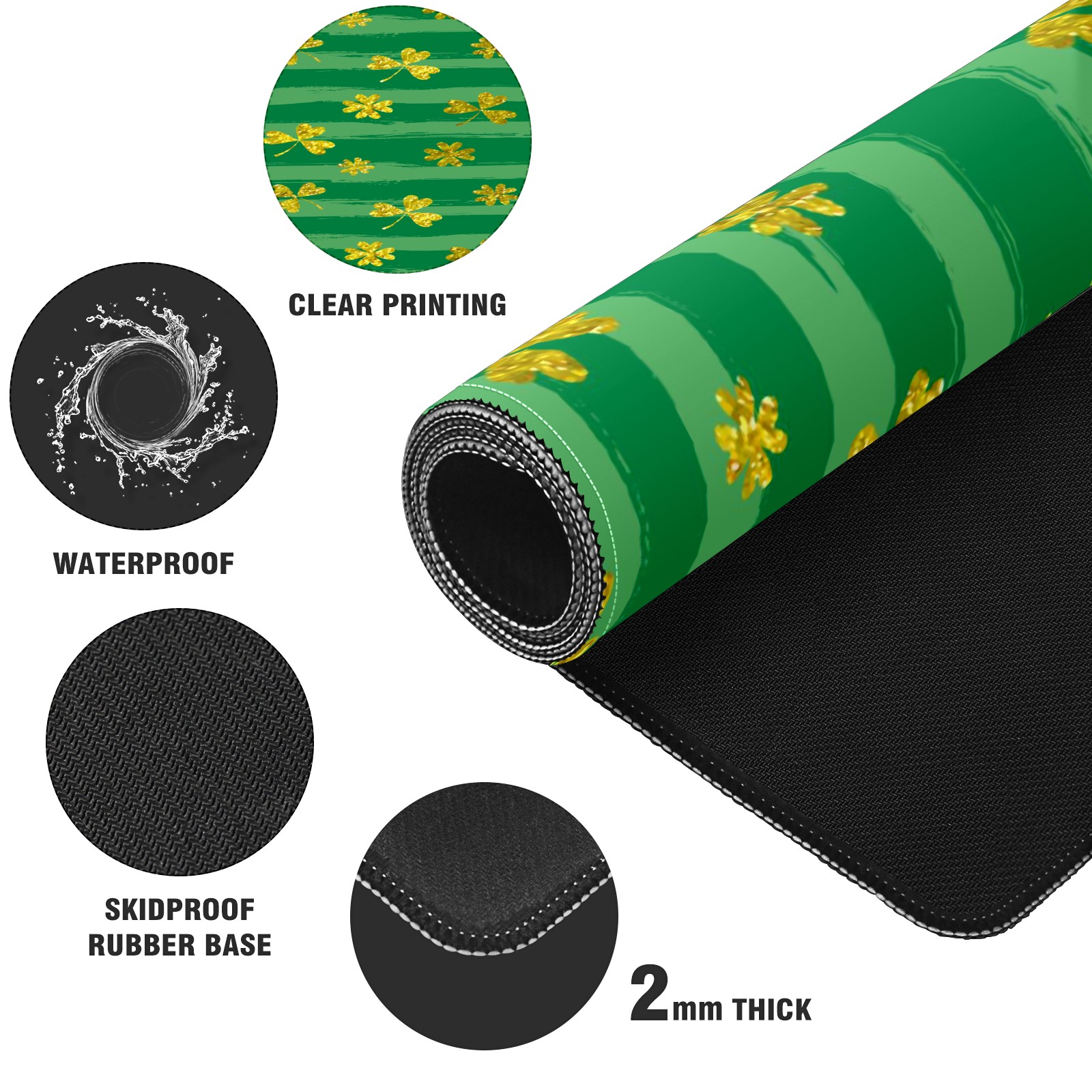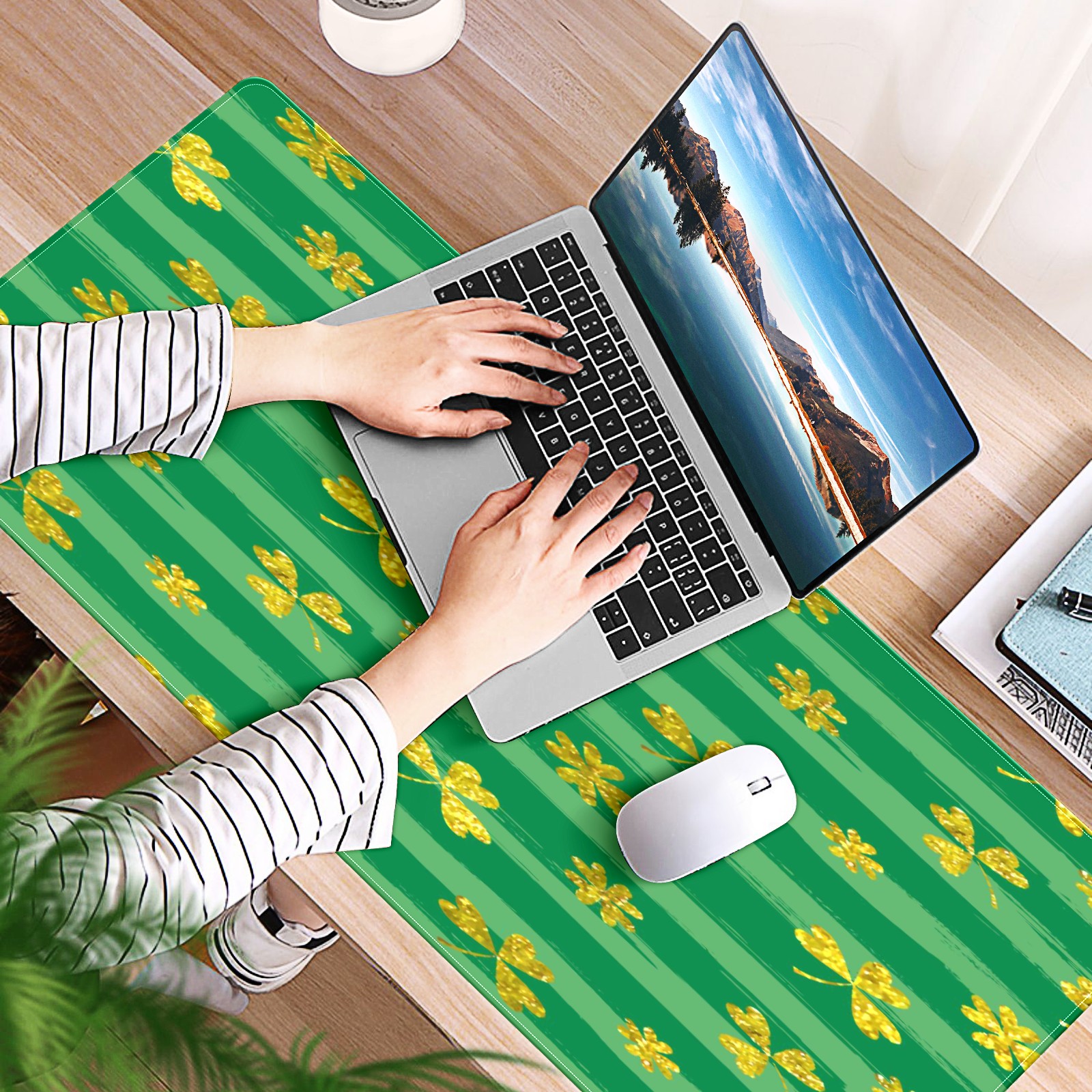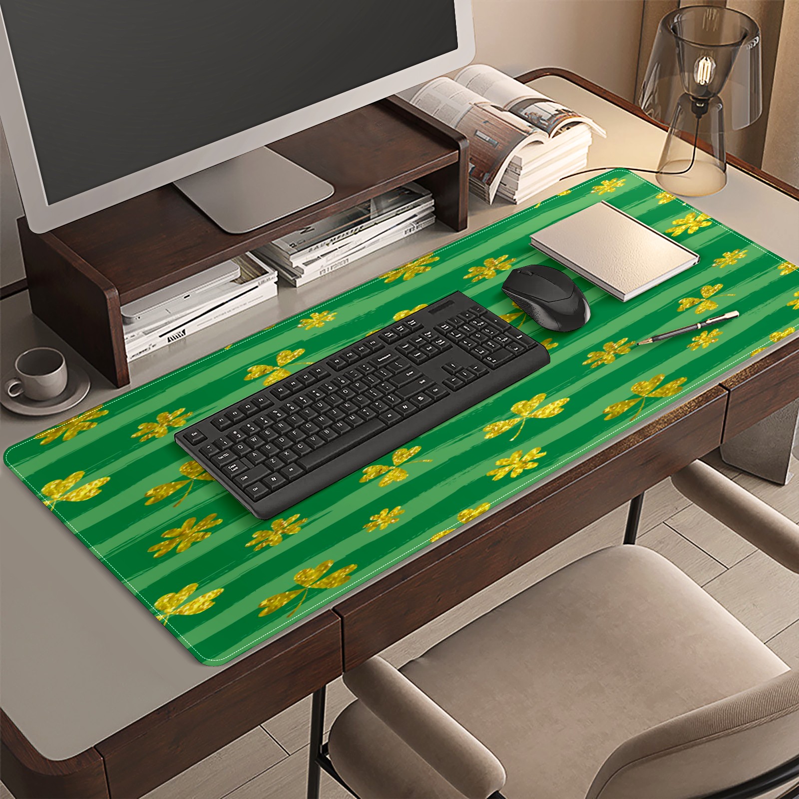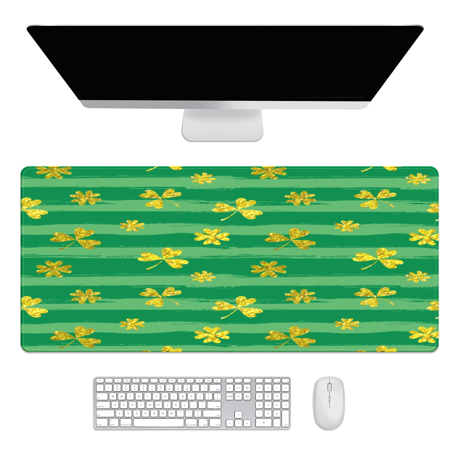 Large Mouse Pad for Desktop, Cute Desk Mat Pad Protector for Work & Gaming, Aesthetic Pretty Anti-Slip Laptop Blotter Cover for Office School Home Supplies, Clovers Stripe , 35.4inx15.7in