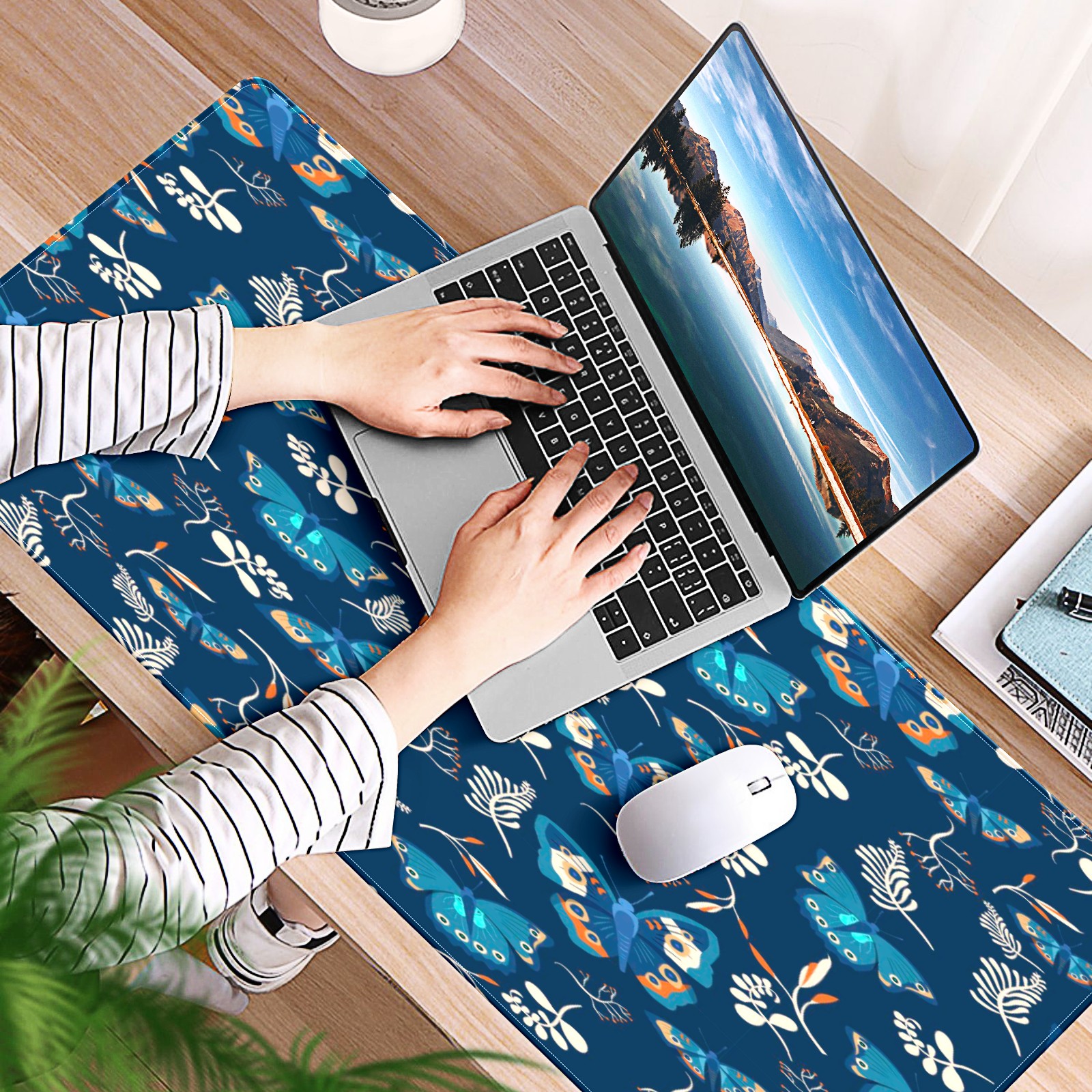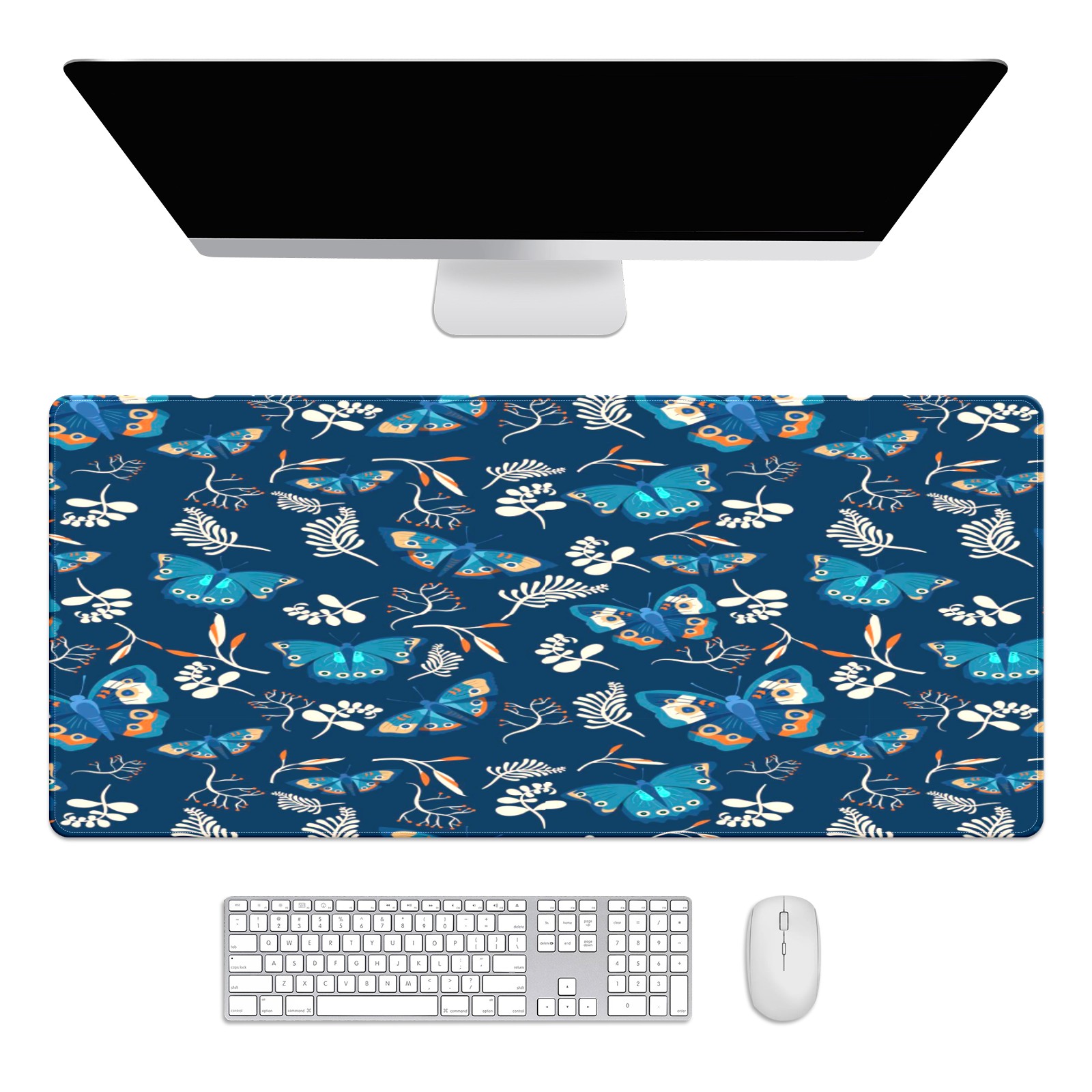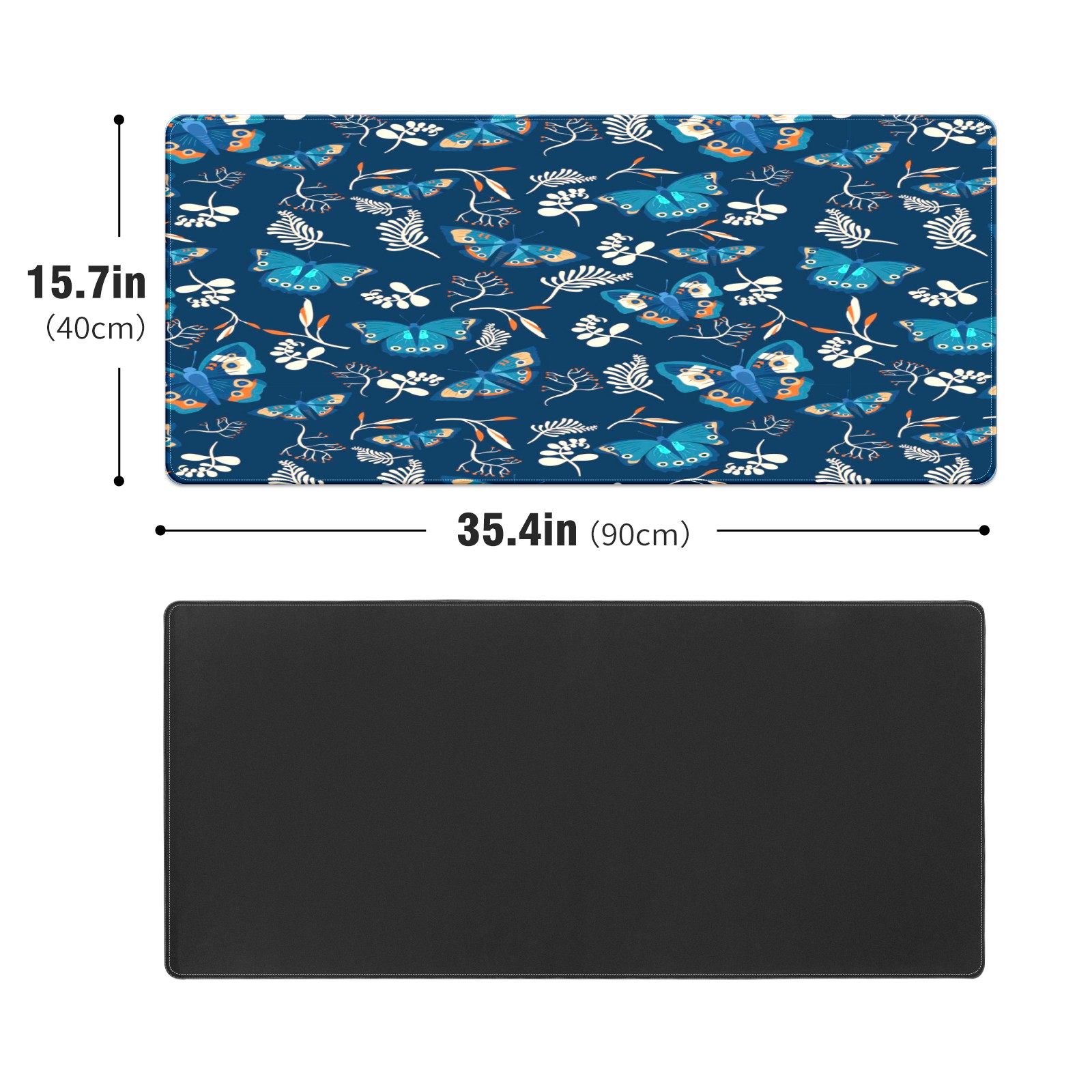 Large Mouse Pad for Desktop, Cute Desk Mat Pad Protector for Work & Gaming, Aesthetic Pretty Anti-Slip Laptop Blotter Cover for Office School Home Supplies, Butterflies Blue Pattern , 35.4inx15.7in