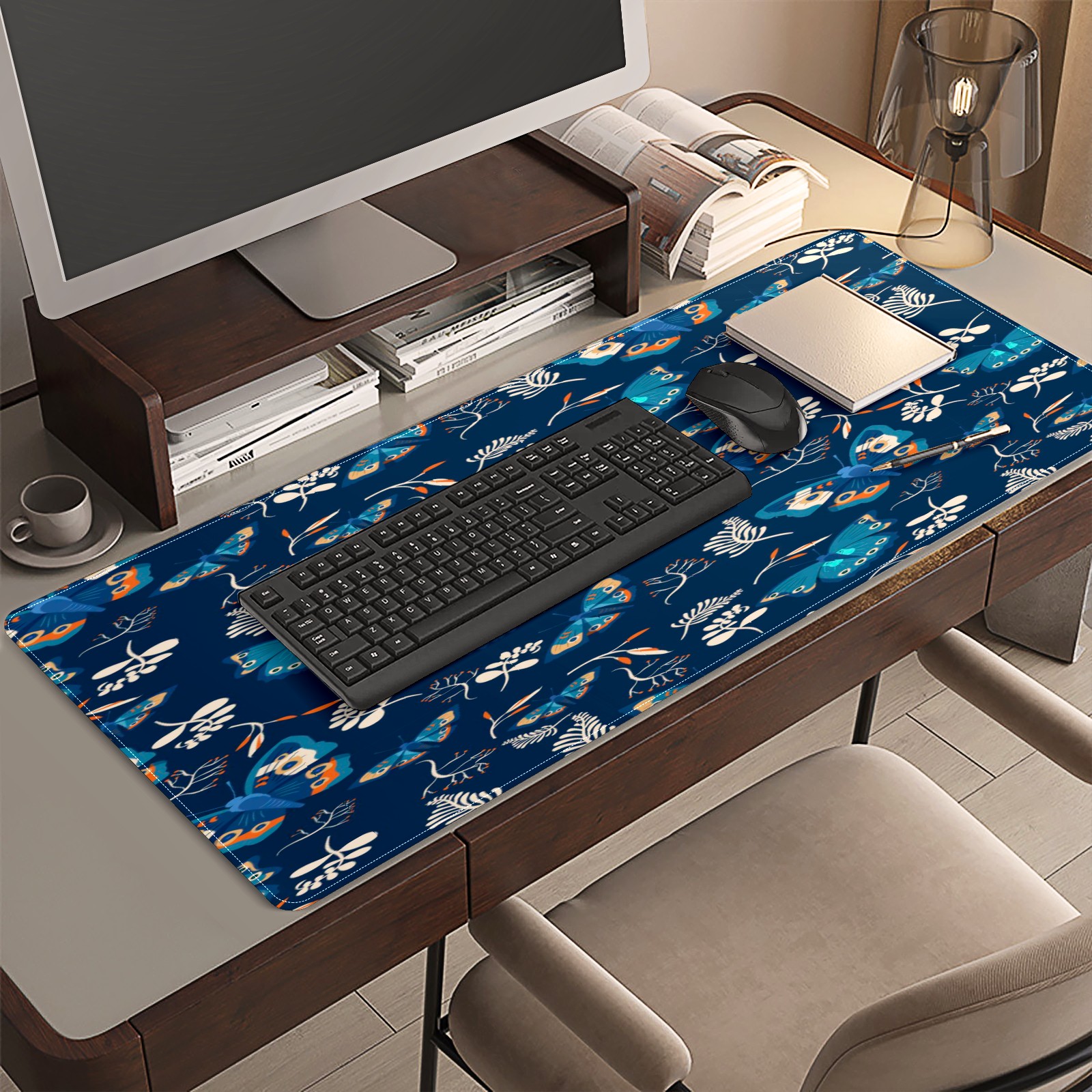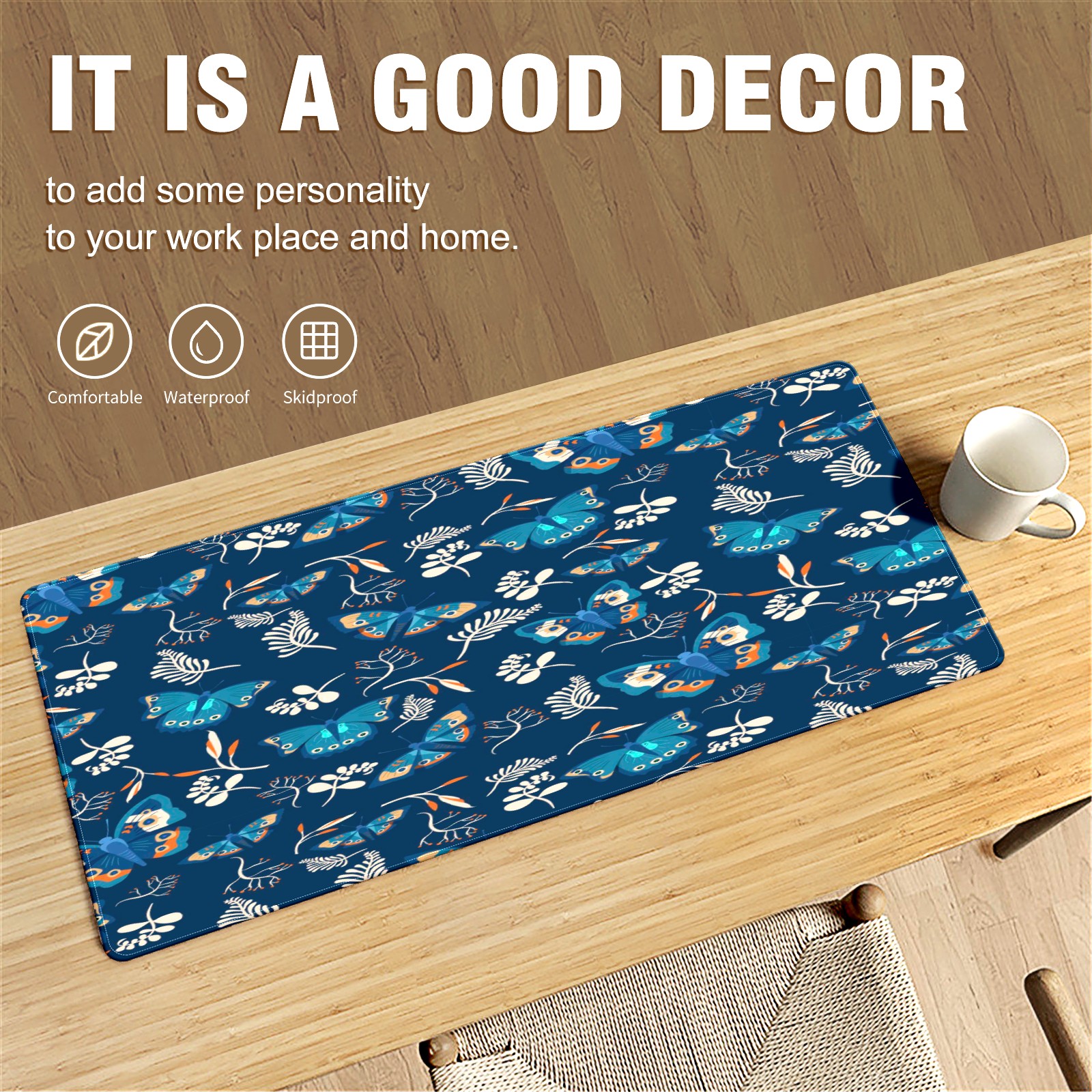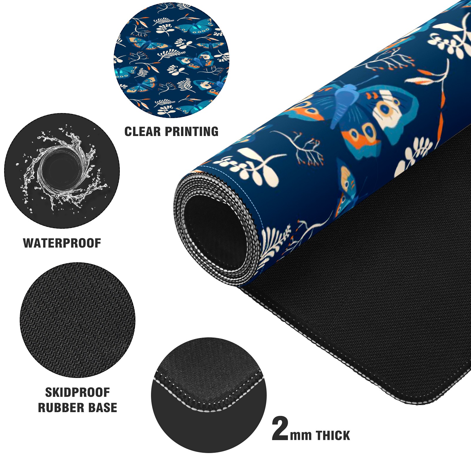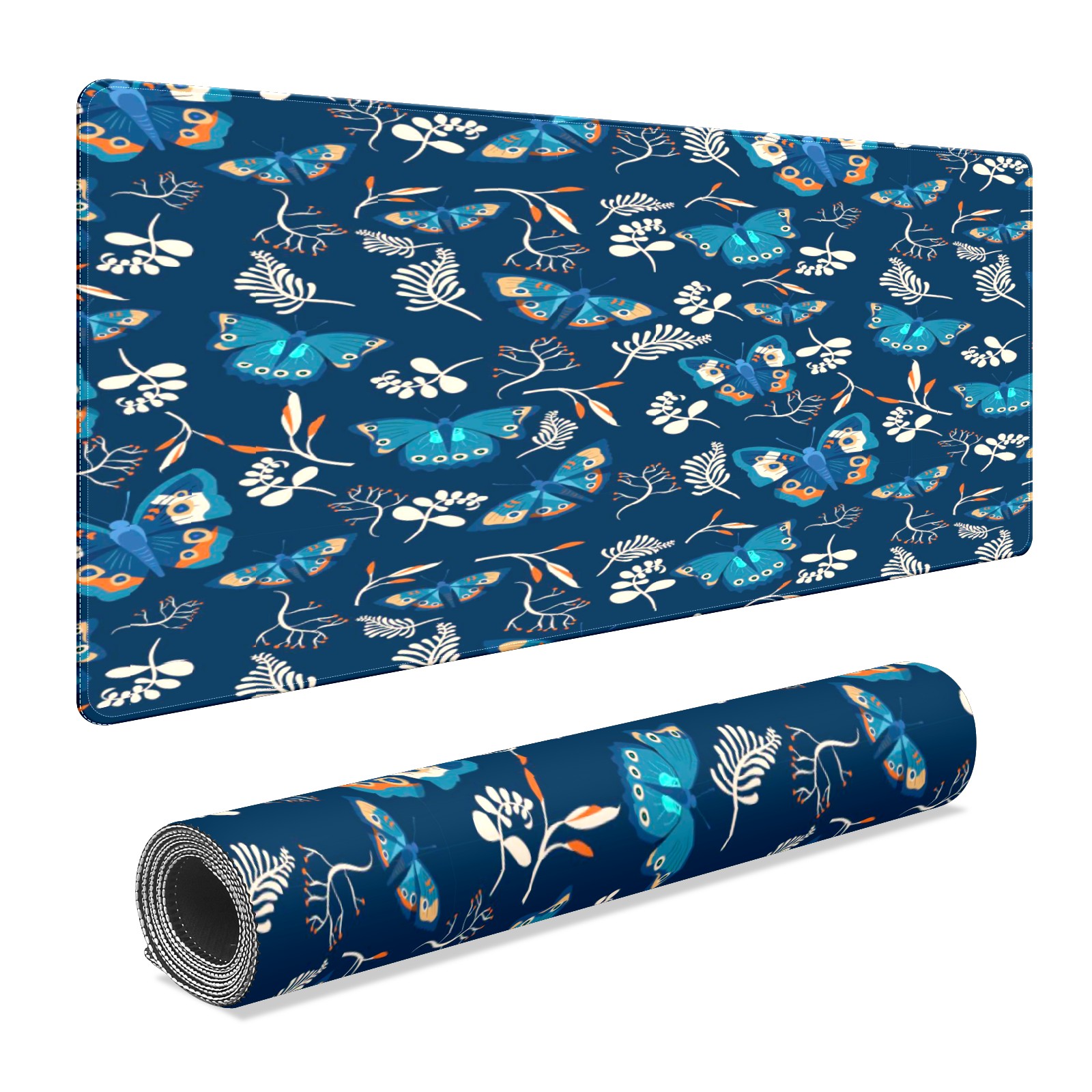 Large Mouse Pad for Desktop, Cute Desk Mat Pad Protector for Work & Gaming, Aesthetic Pretty Anti-Slip Laptop Blotter Cover for Office School Home Supplies, Butterflies Blue Pattern , 35.4inx15.7in