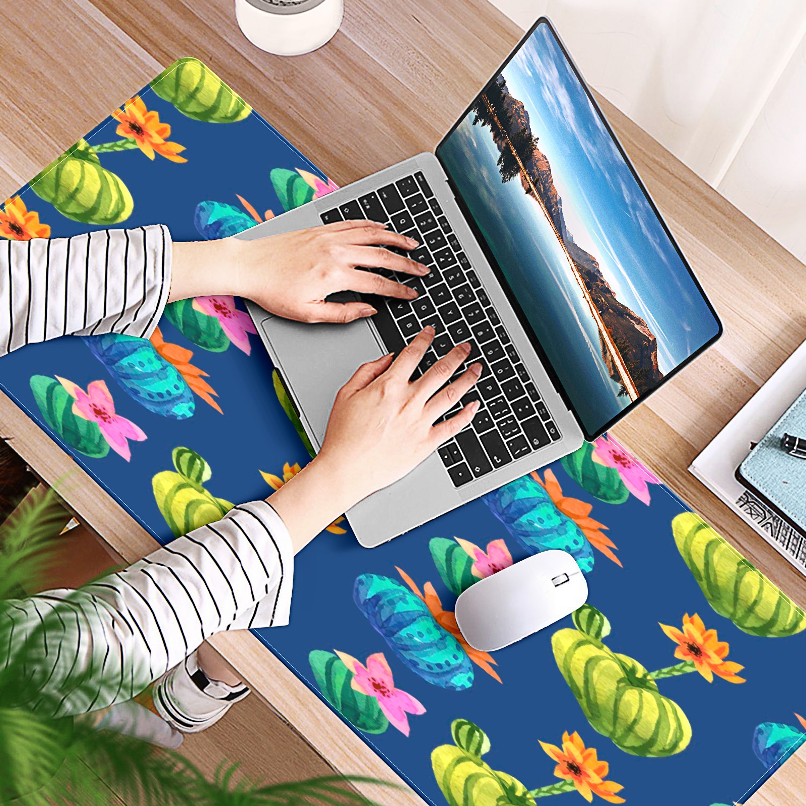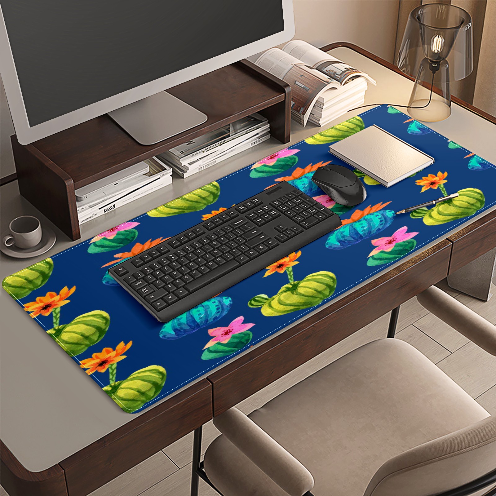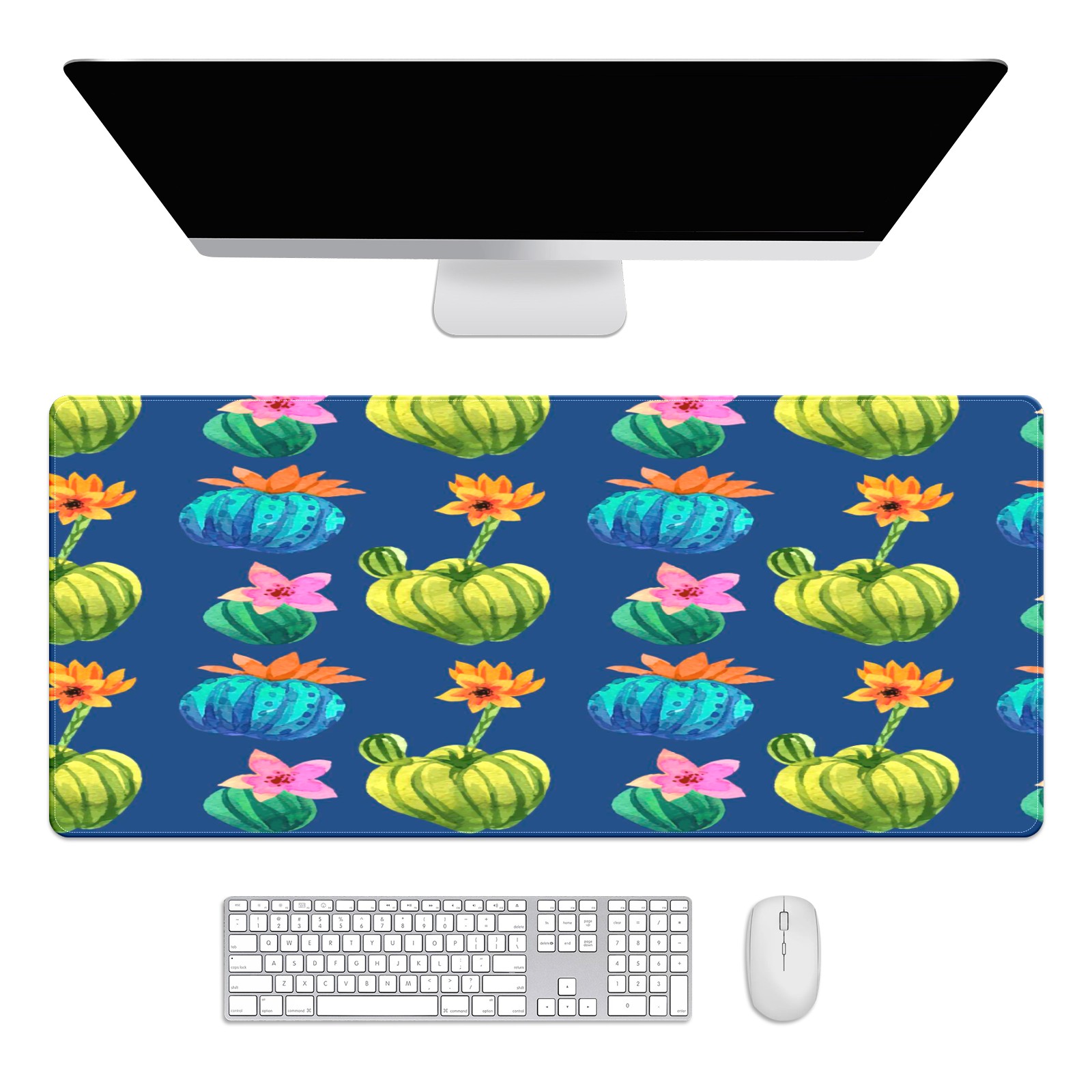 Large Mouse Pad for Desktop, Cute Desk Mat Pad Protector for Work & Gaming, Aesthetic Pretty Anti-Slip Laptop Blotter Cover for Office School Home Supplies, Cactus Flower , 35.4inx15.7in