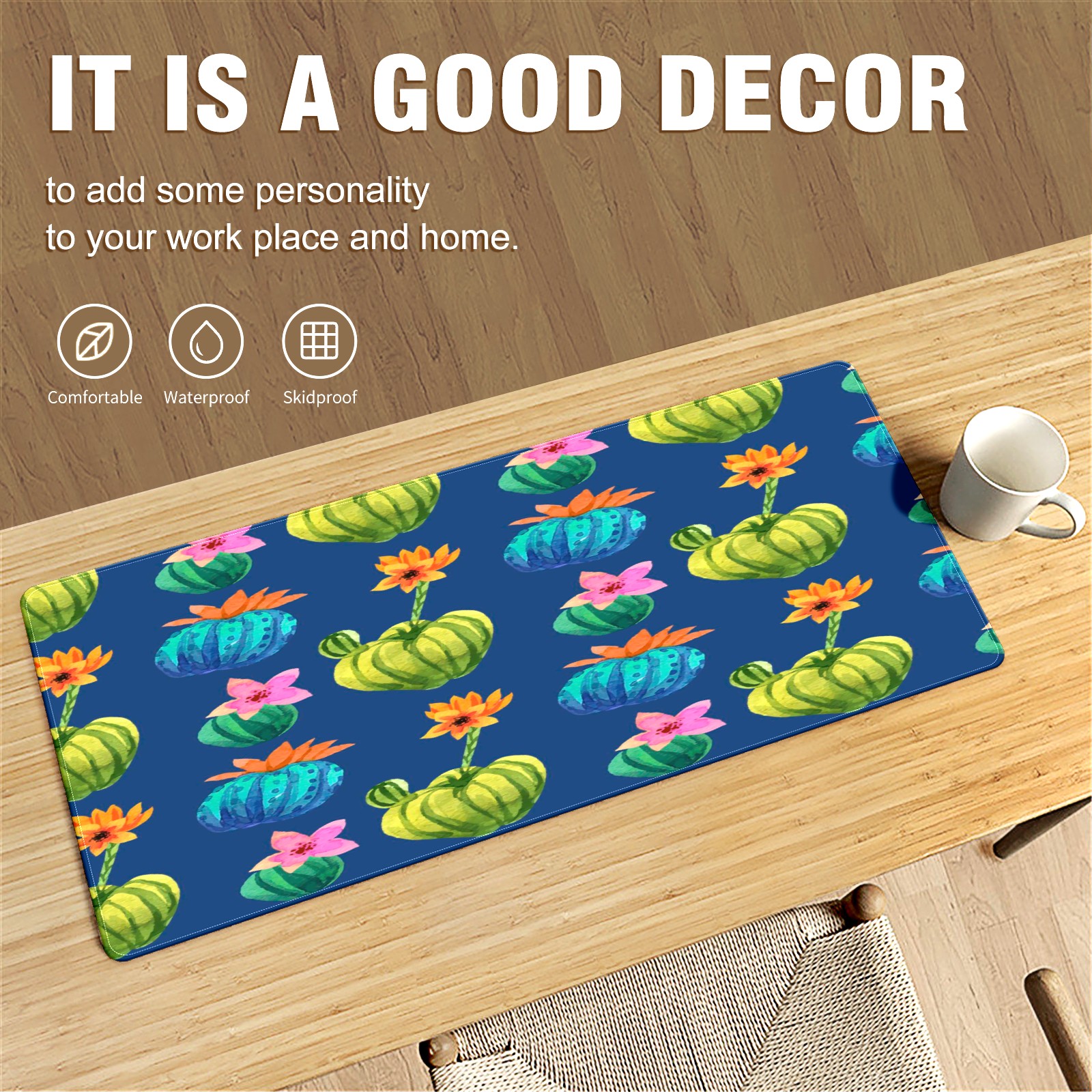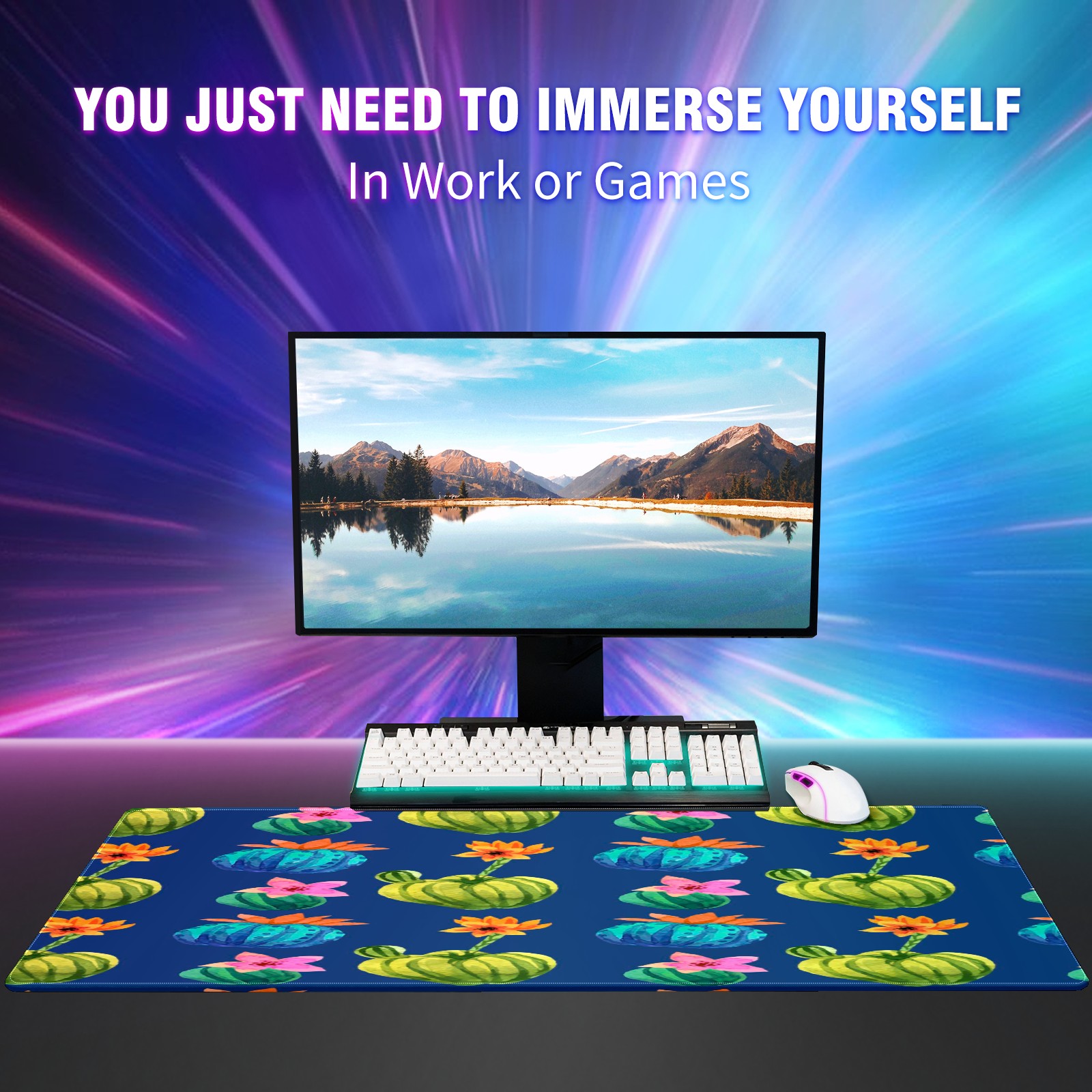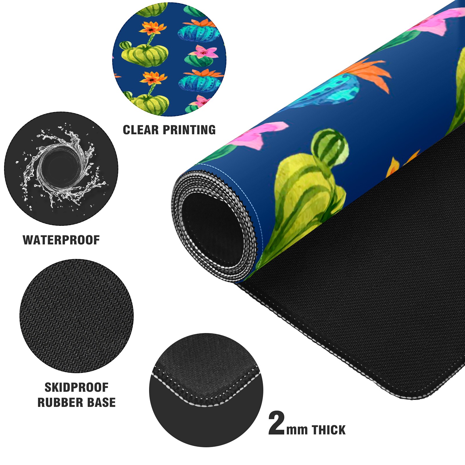 Large Mouse Pad for Desktop, Cute Desk Mat Pad Protector for Work & Gaming, Aesthetic Pretty Anti-Slip Laptop Blotter Cover for Office School Home Supplies, Cactus Flower , 35.4inx15.7in