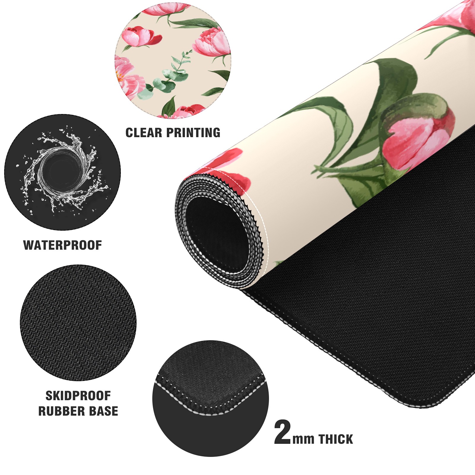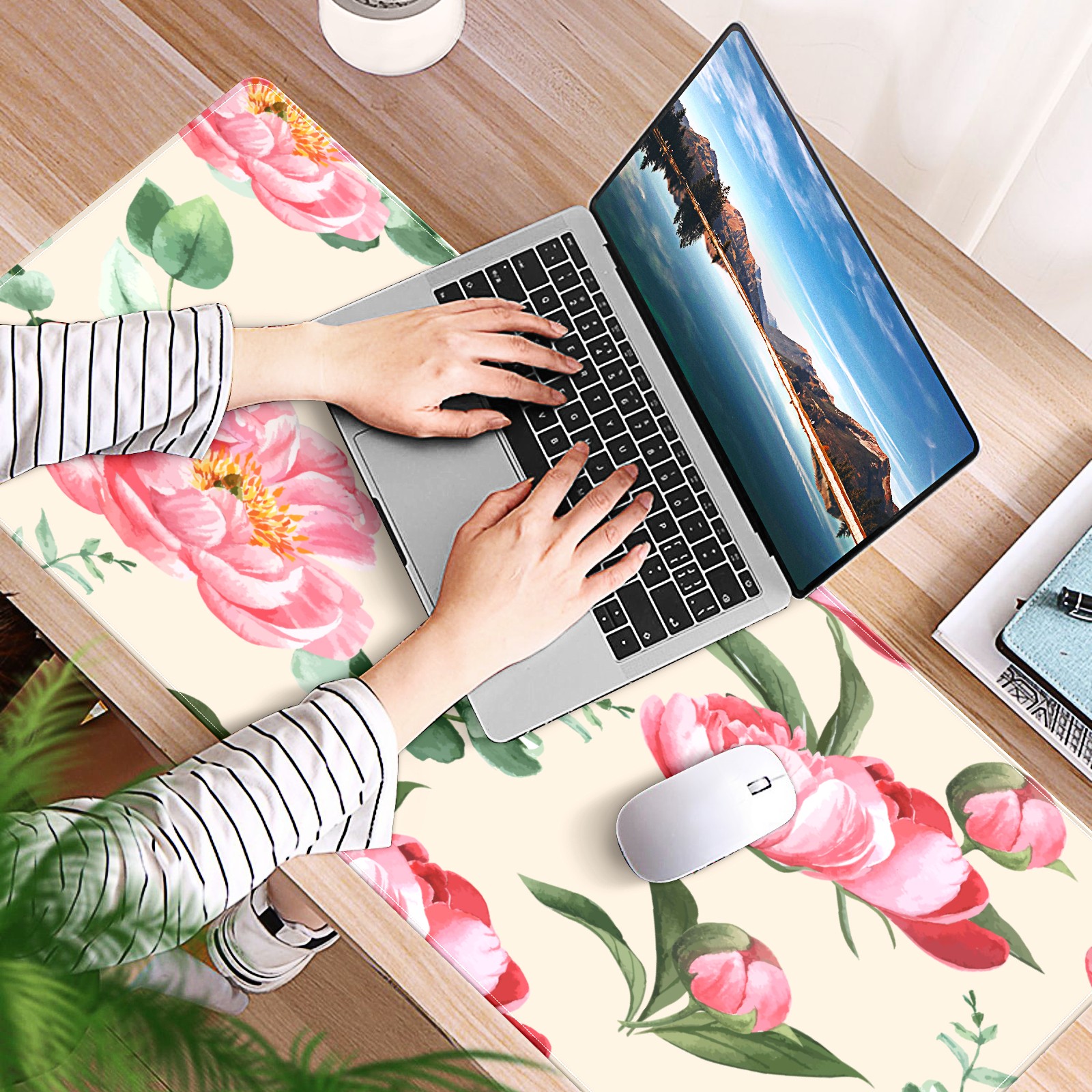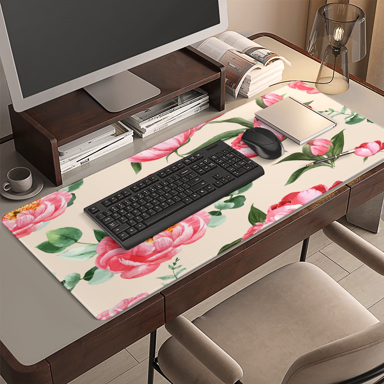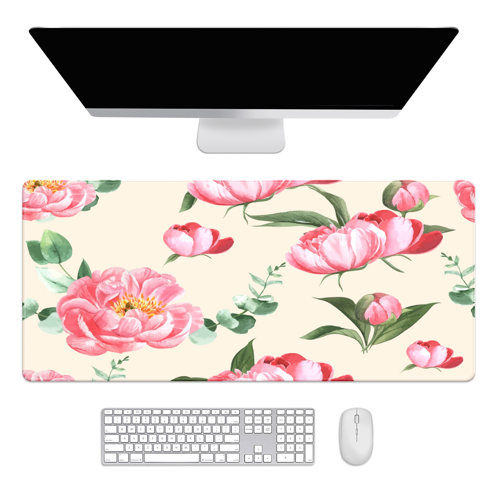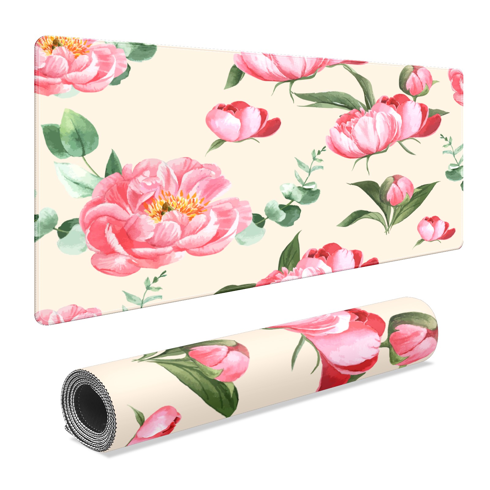 Large Mouse Pad for Desktop, Cute Desk Mat Pad Protector for Work & Gaming, Aesthetic Pretty Anti-Slip Laptop Blotter Cover for Office School Home Supplies, Botanical Flower Watercolor , 35.4inx15.7in