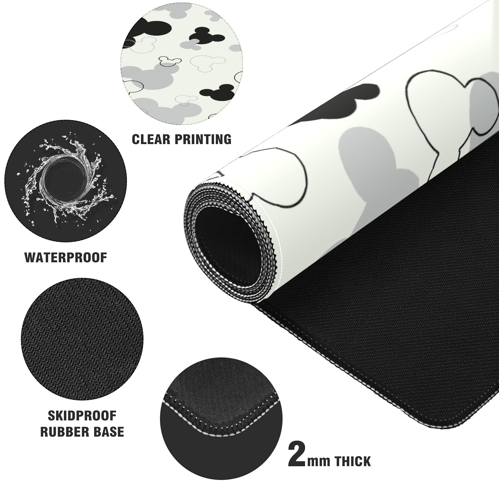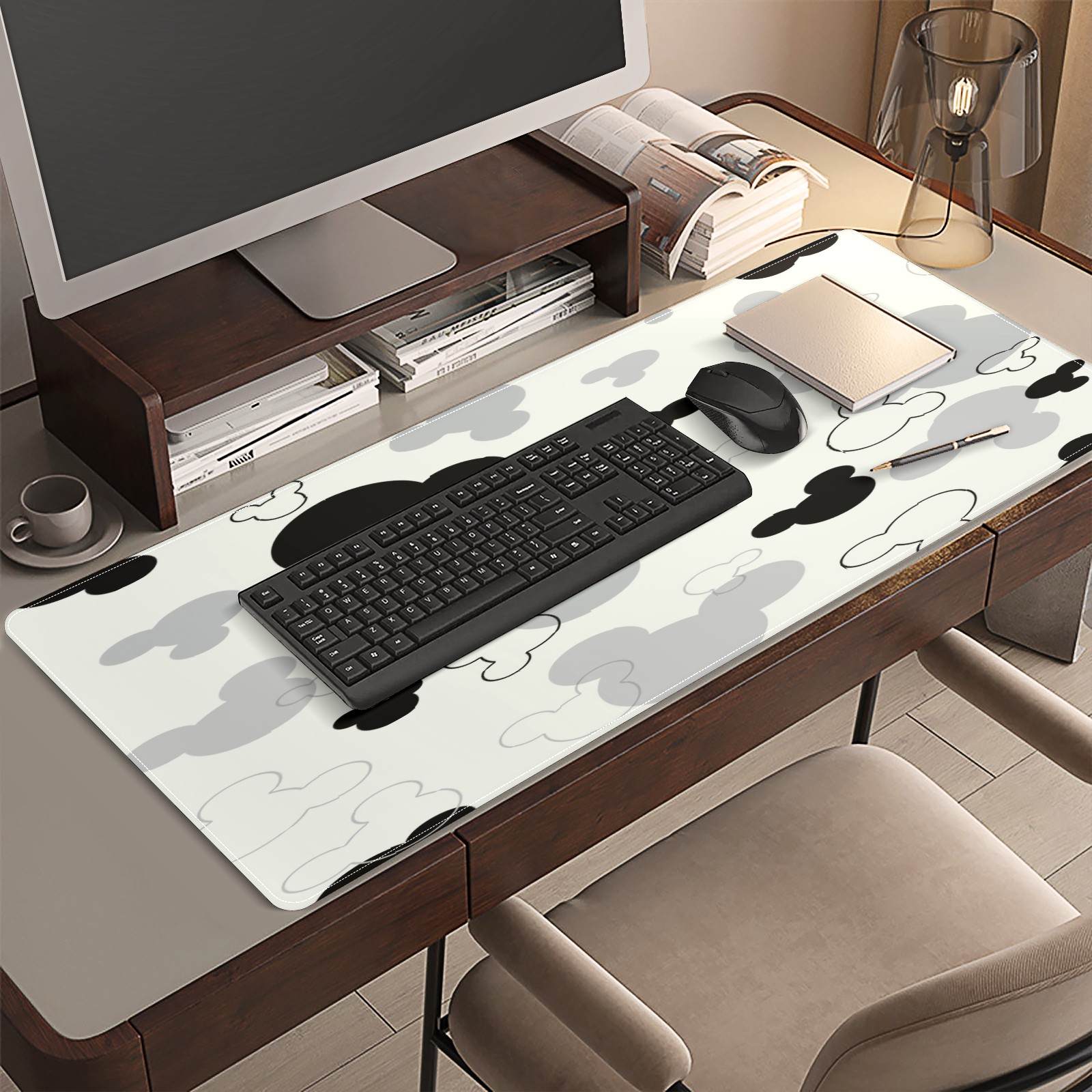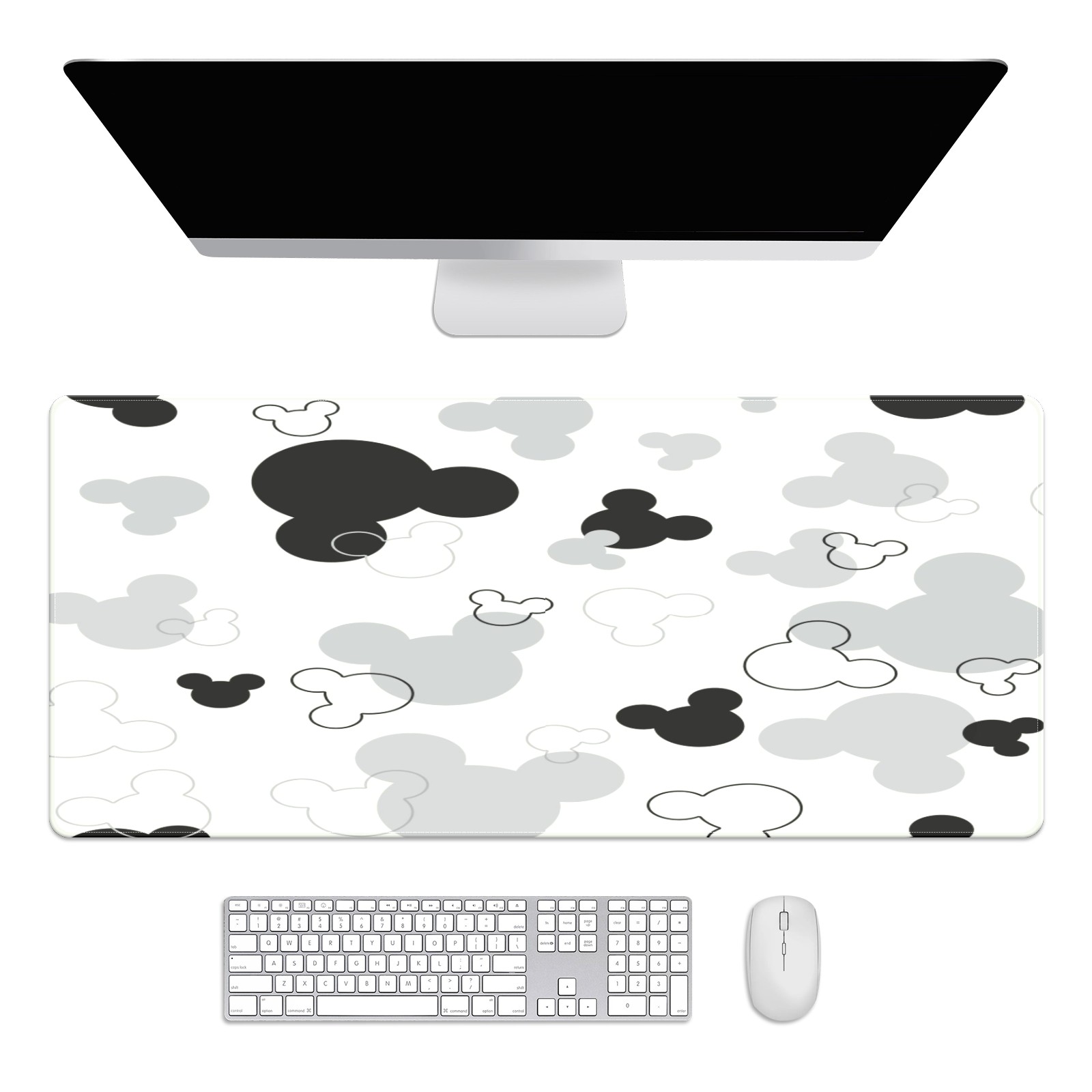 Large Mouse Pad for Desktop, Cute Desk Mat Pad Protector for Work & Gaming, Aesthetic Pretty Anti-Slip Laptop Blotter Cover for Office School Home Supplies, Black And White Mouse , 35.4inx15.7in