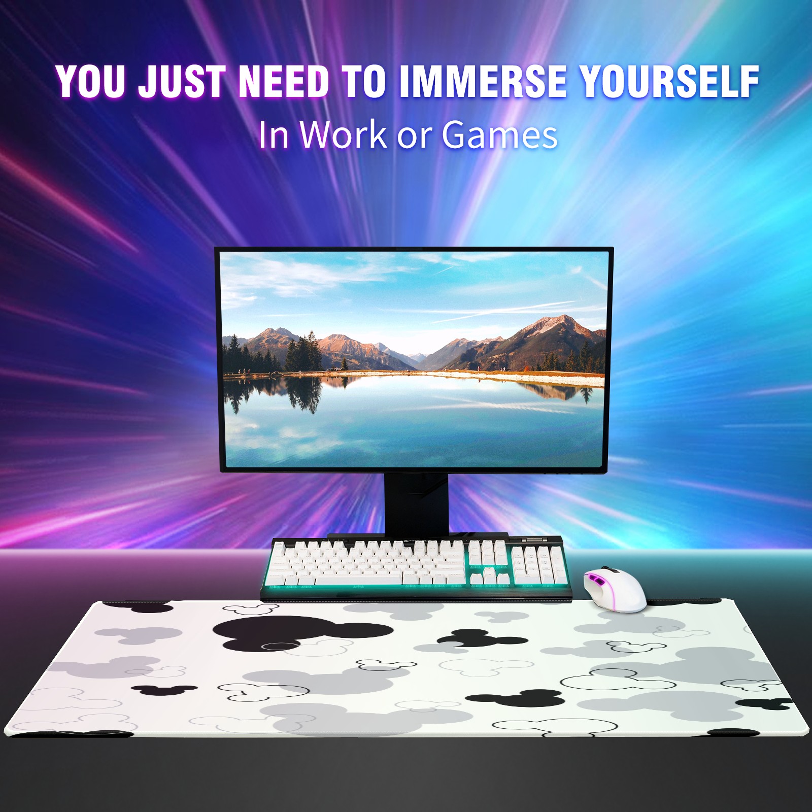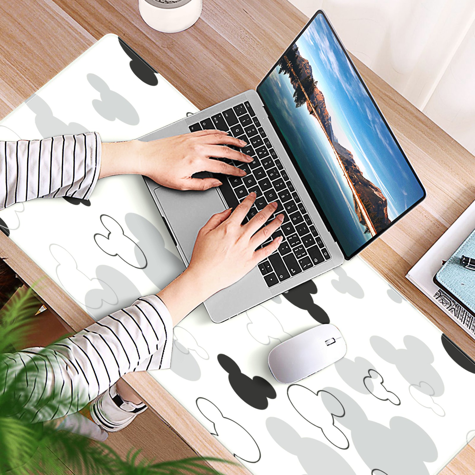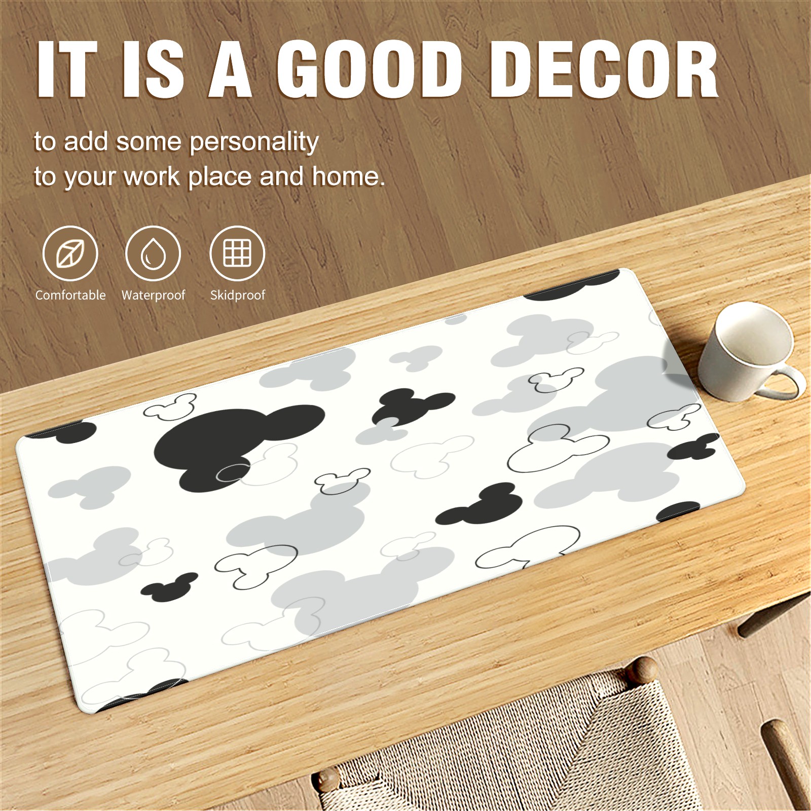 Large Mouse Pad for Desktop, Cute Desk Mat Pad Protector for Work & Gaming, Aesthetic Pretty Anti-Slip Laptop Blotter Cover for Office School Home Supplies, Black And White Mouse , 35.4inx15.7in