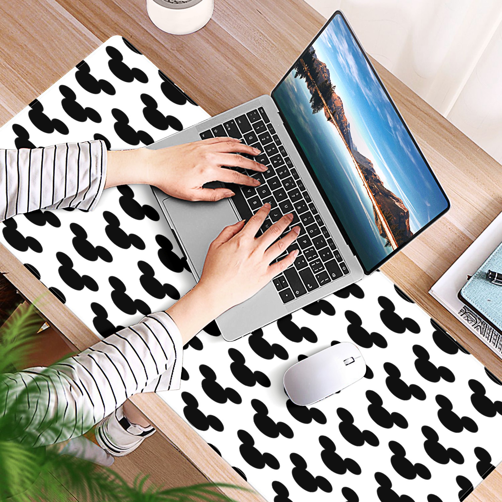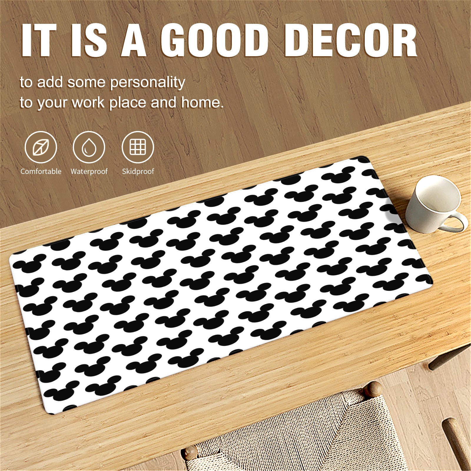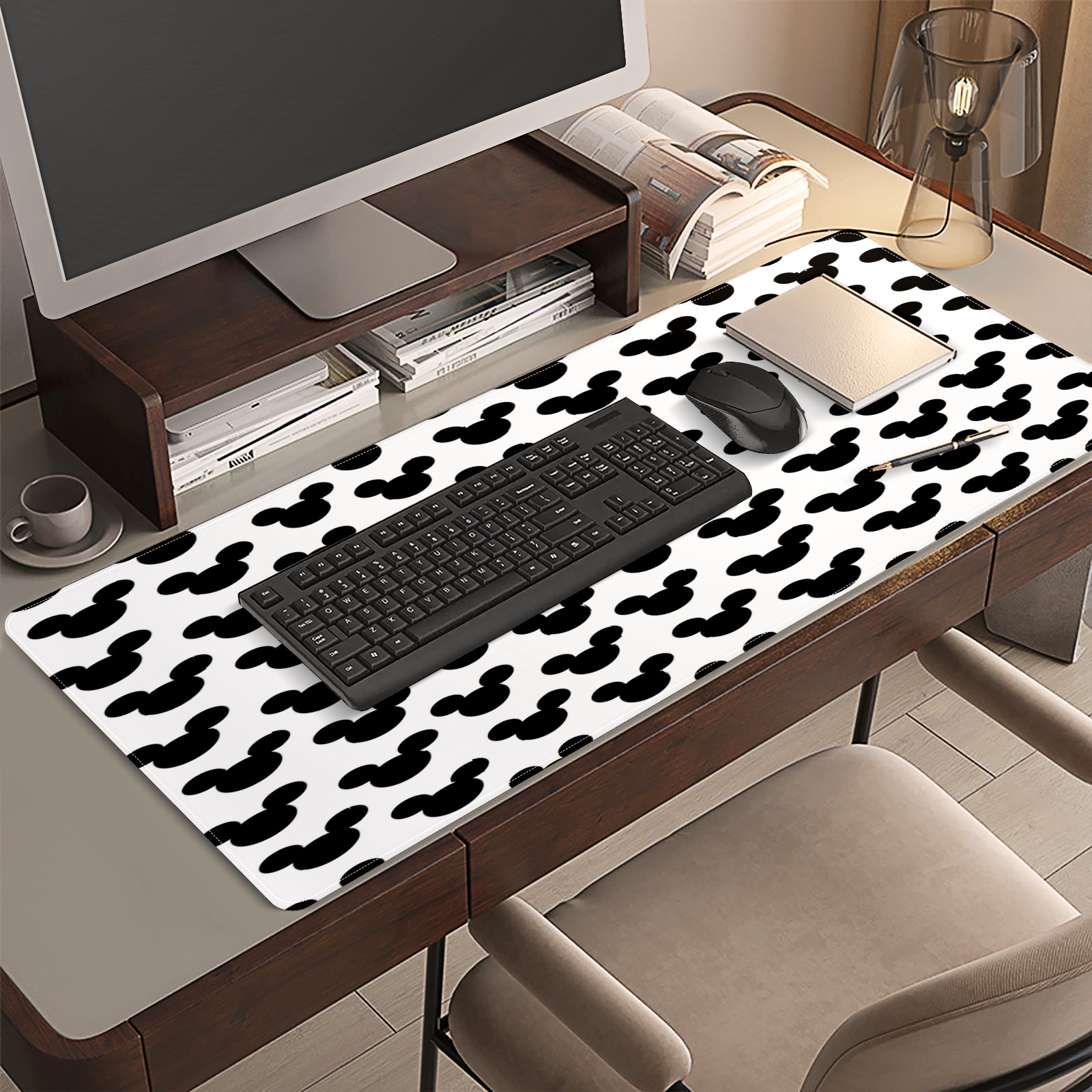 Large Mouse Pad for Desktop, Cute Desk Mat Pad Protector for Work & Gaming, Aesthetic Pretty Anti-Slip Laptop Blotter Cover for Office School Home Supplies, Black Mouse , 35.4inx15.7in