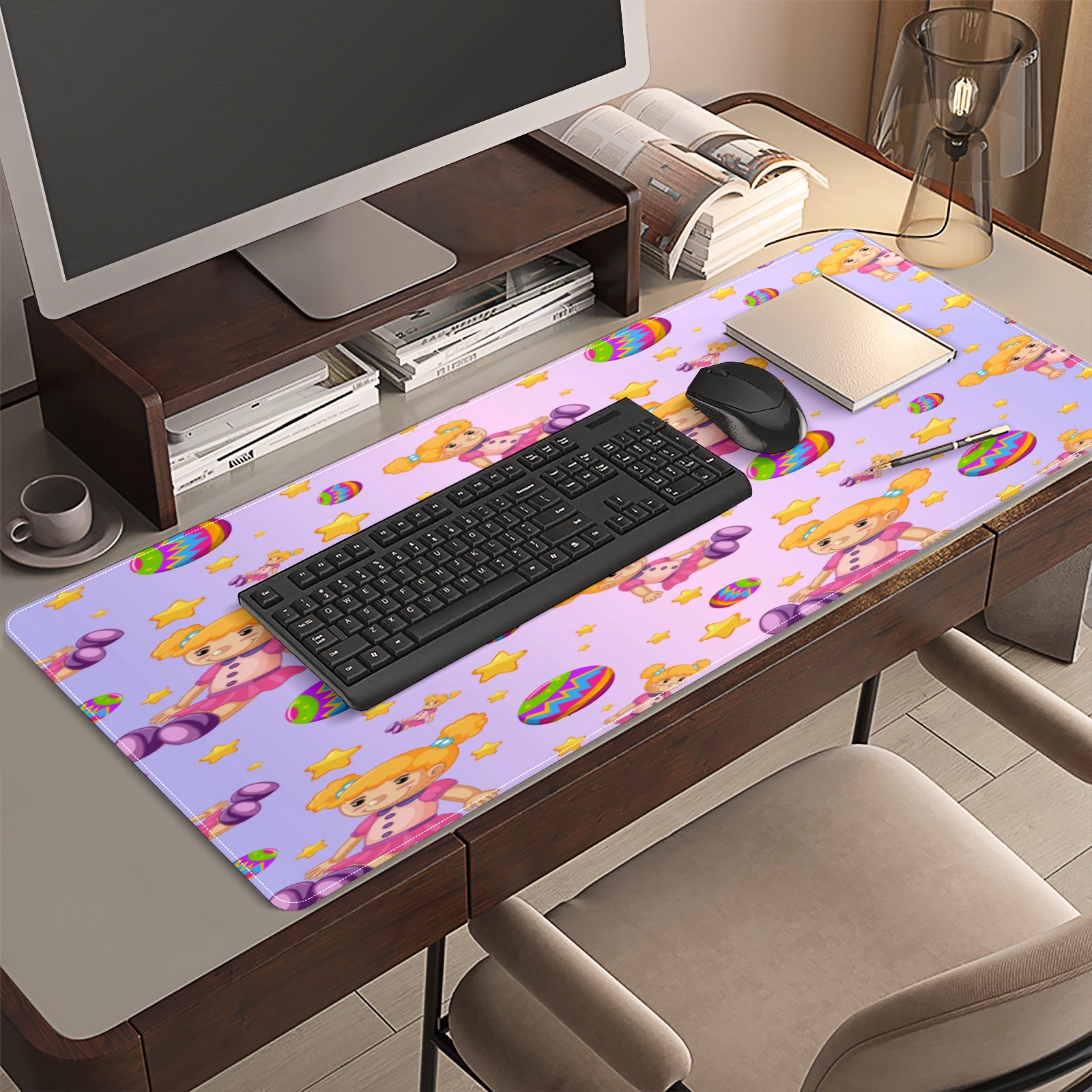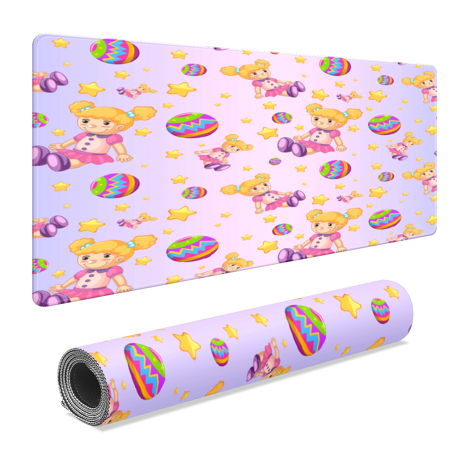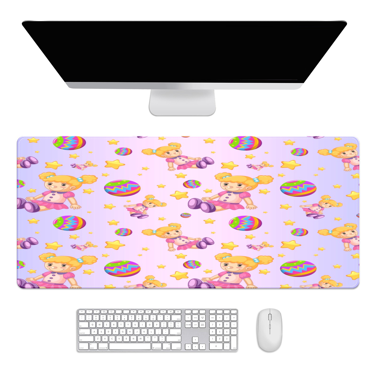 Large Mouse Pad for Desktop, Cute Desk Mat Pad Protector for Work & Gaming, Aesthetic Pretty Anti-Slip Laptop Blotter Cover for Office School Home Supplies, Dolls Balls Stars Gradient Purple , 35.4inx15.7in
