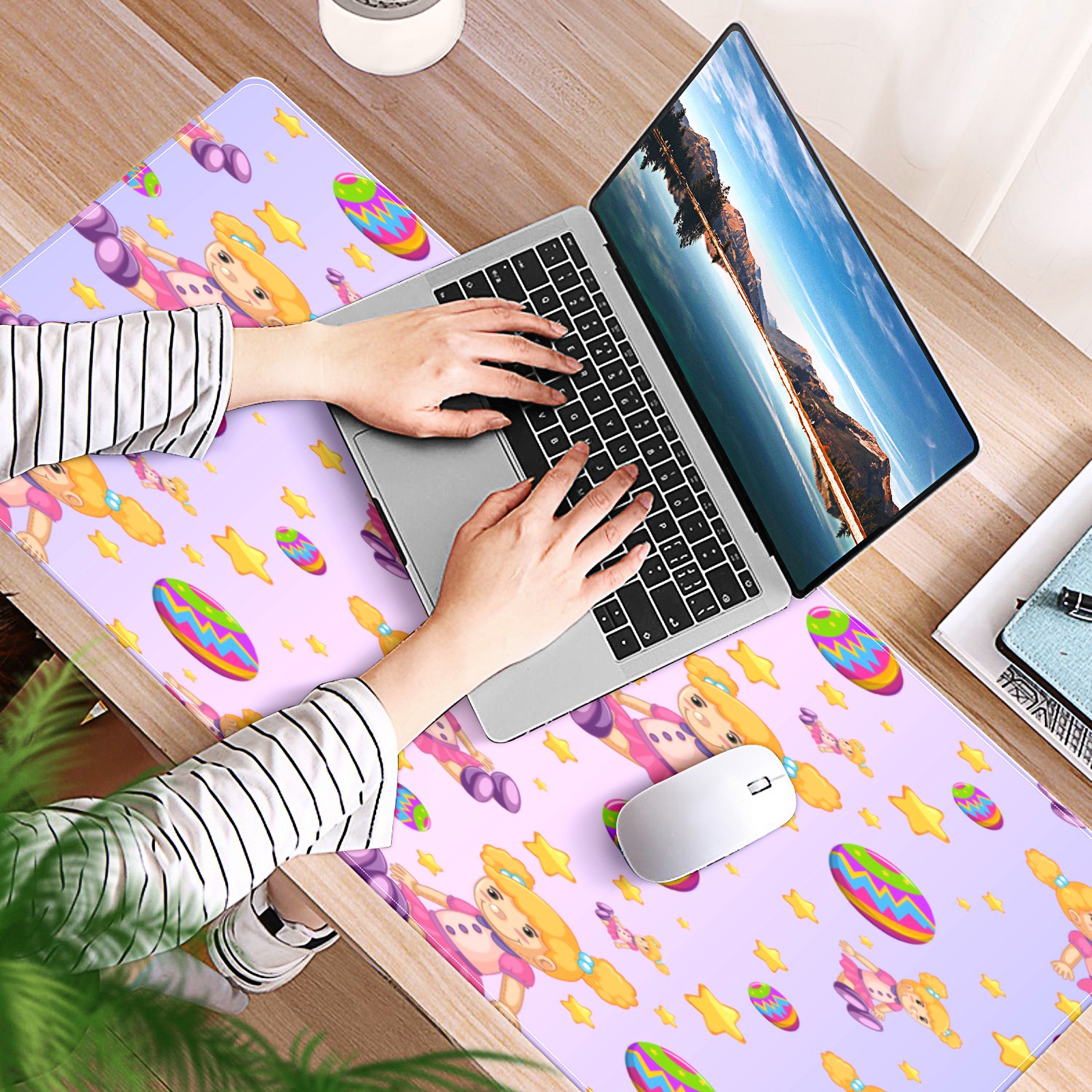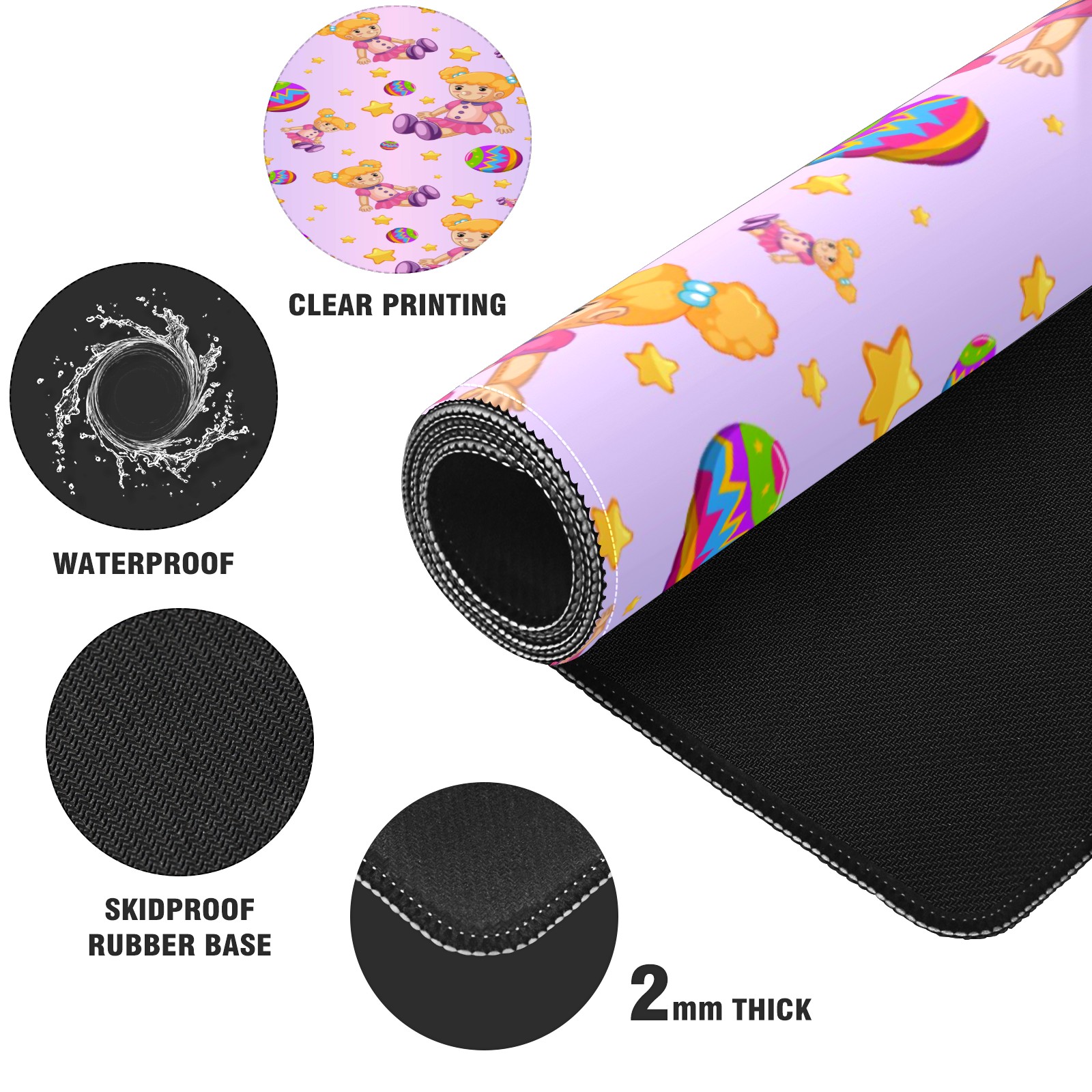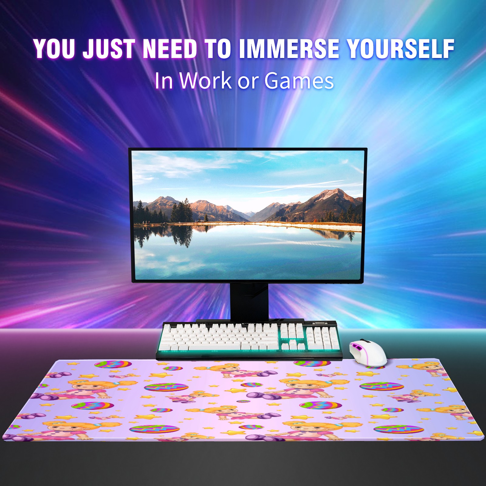 Large Mouse Pad for Desktop, Cute Desk Mat Pad Protector for Work & Gaming, Aesthetic Pretty Anti-Slip Laptop Blotter Cover for Office School Home Supplies, Dolls Balls Stars Gradient Purple , 35.4inx15.7in