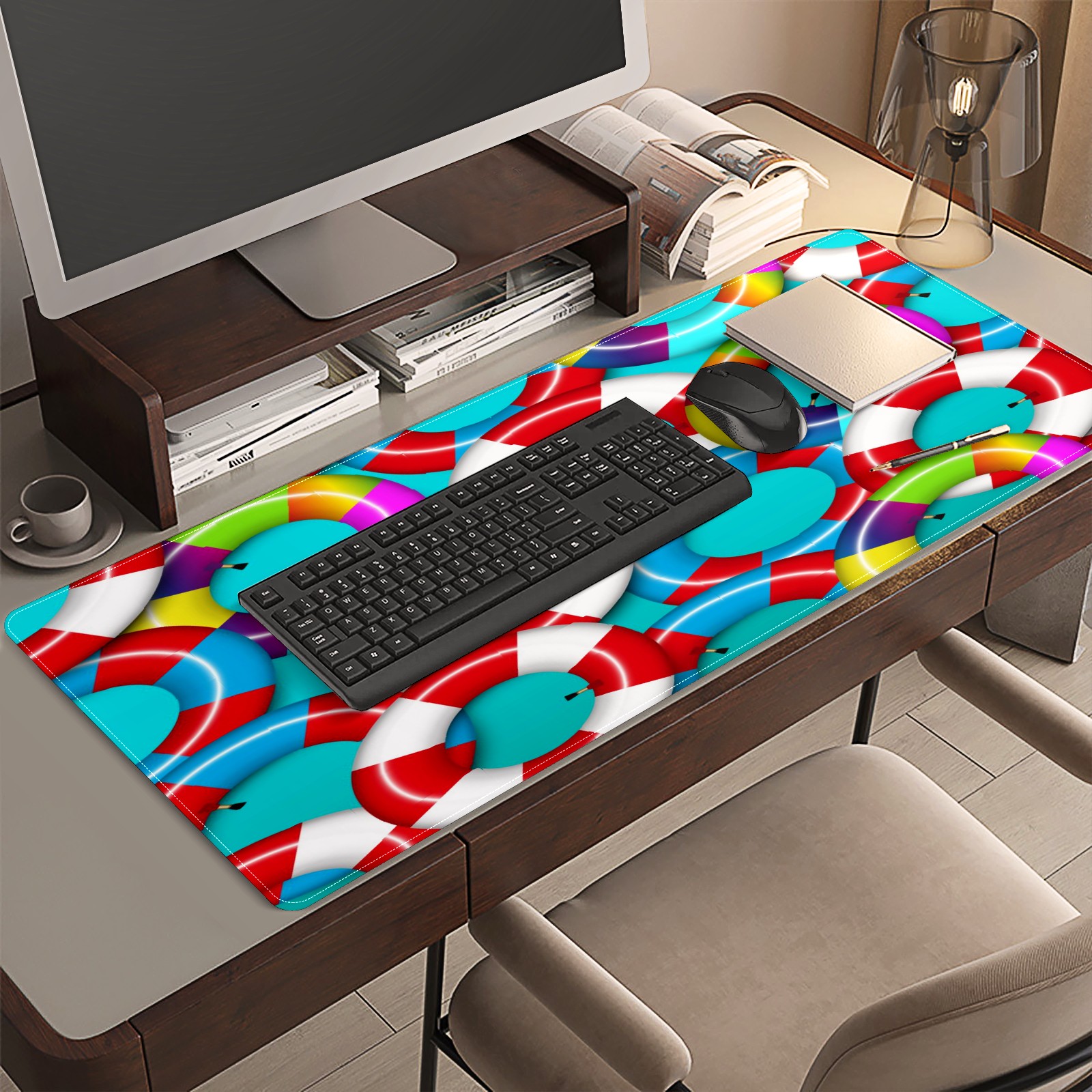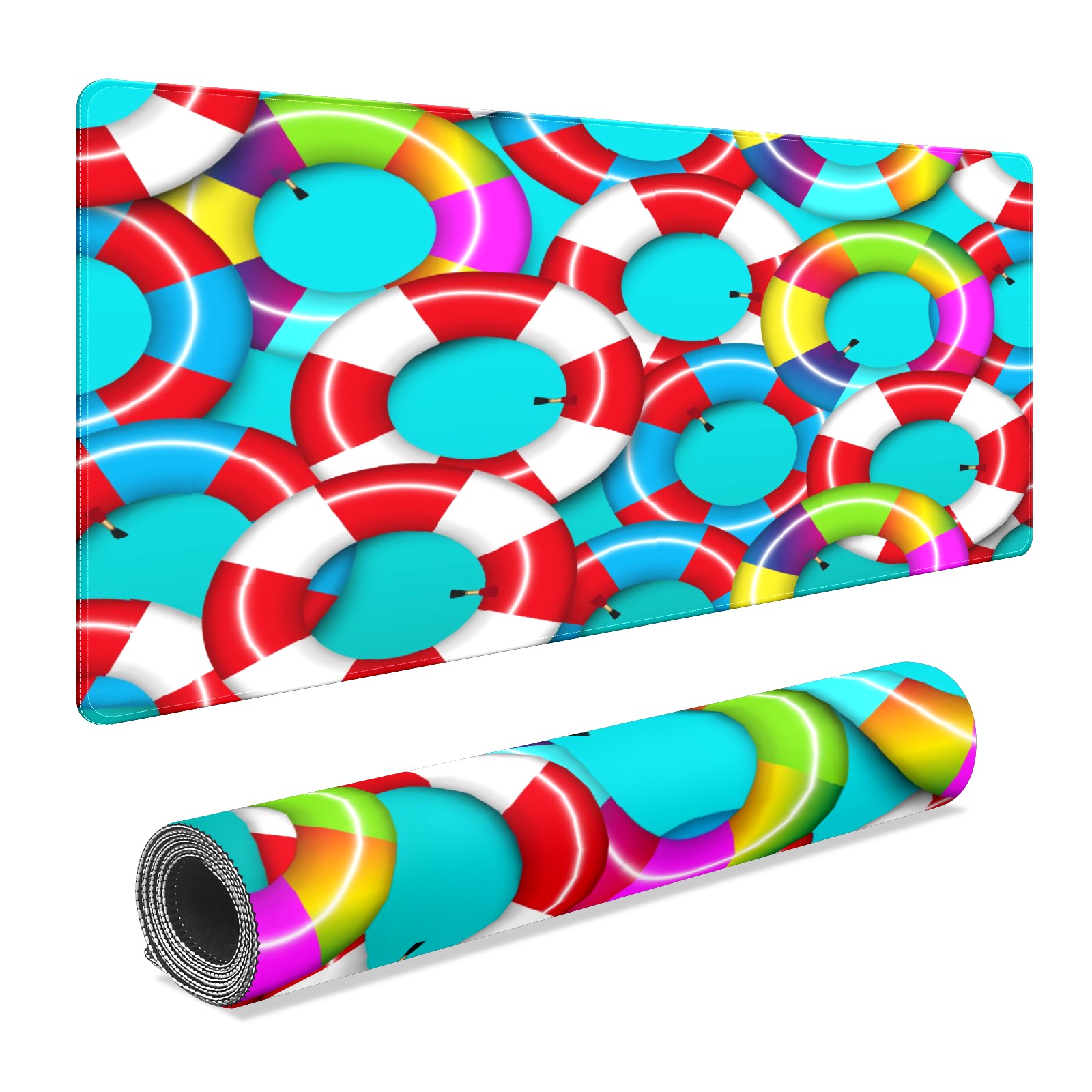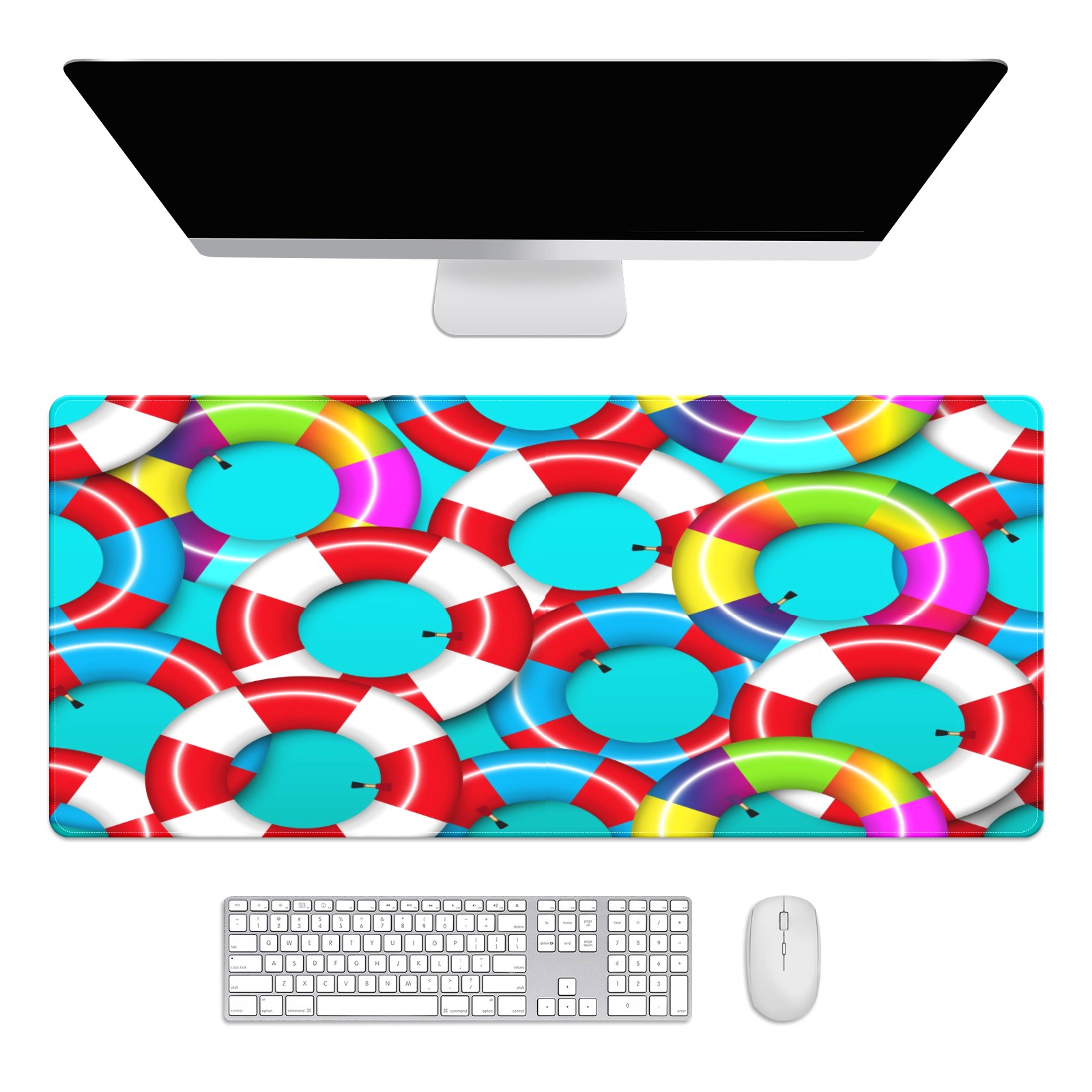 Large Mouse Pad for Desktop, Cute Desk Mat Pad Protector for Work & Gaming, Aesthetic Pretty Anti-Slip Laptop Blotter Cover for Office School Home Supplies, Colorful Inflatable Inner Tube , 35.4inx15.7in