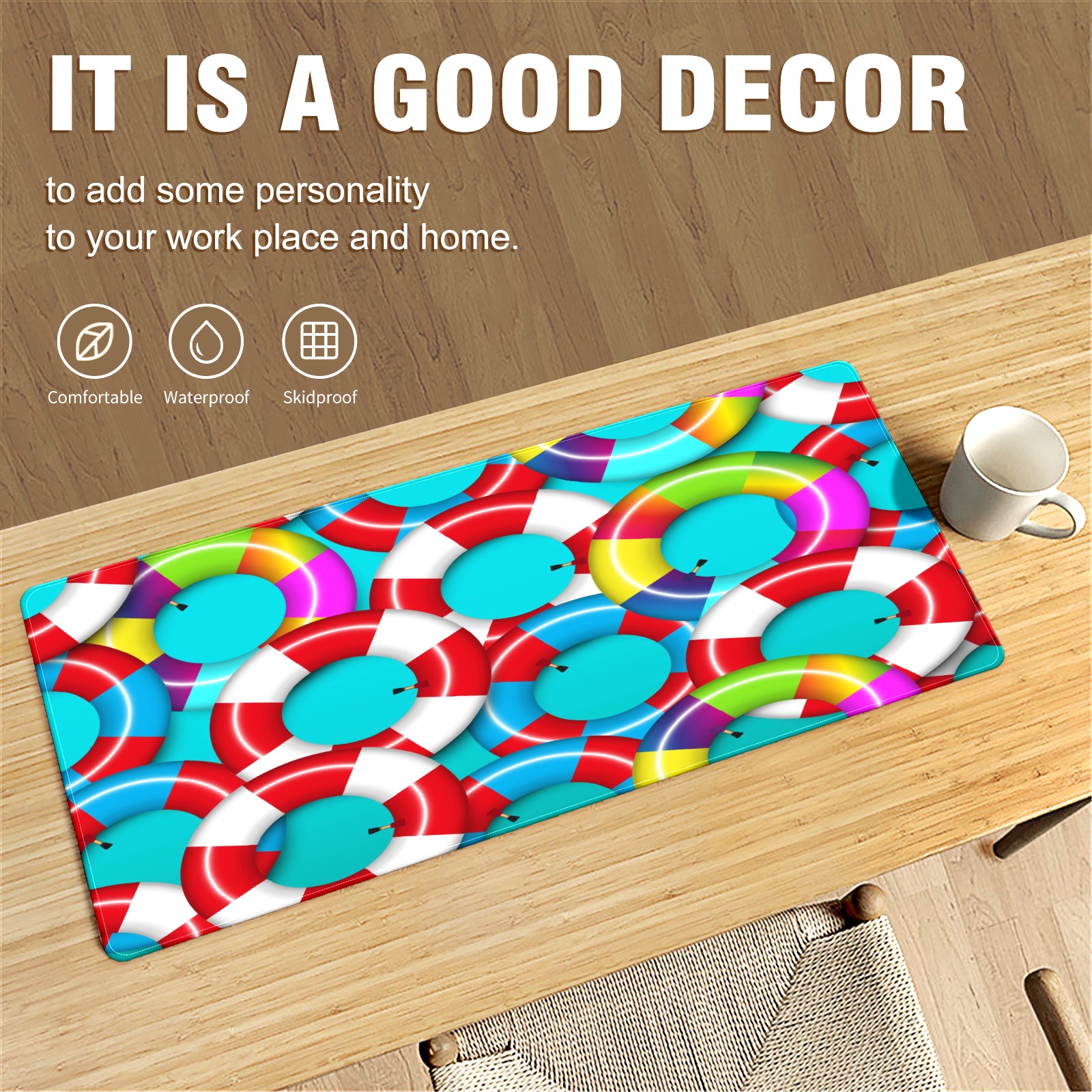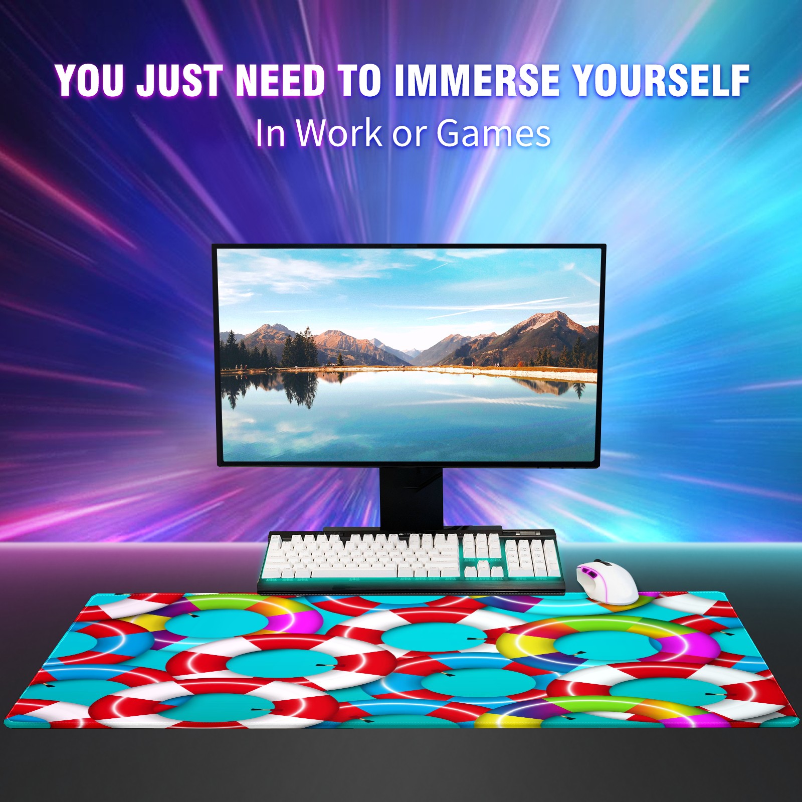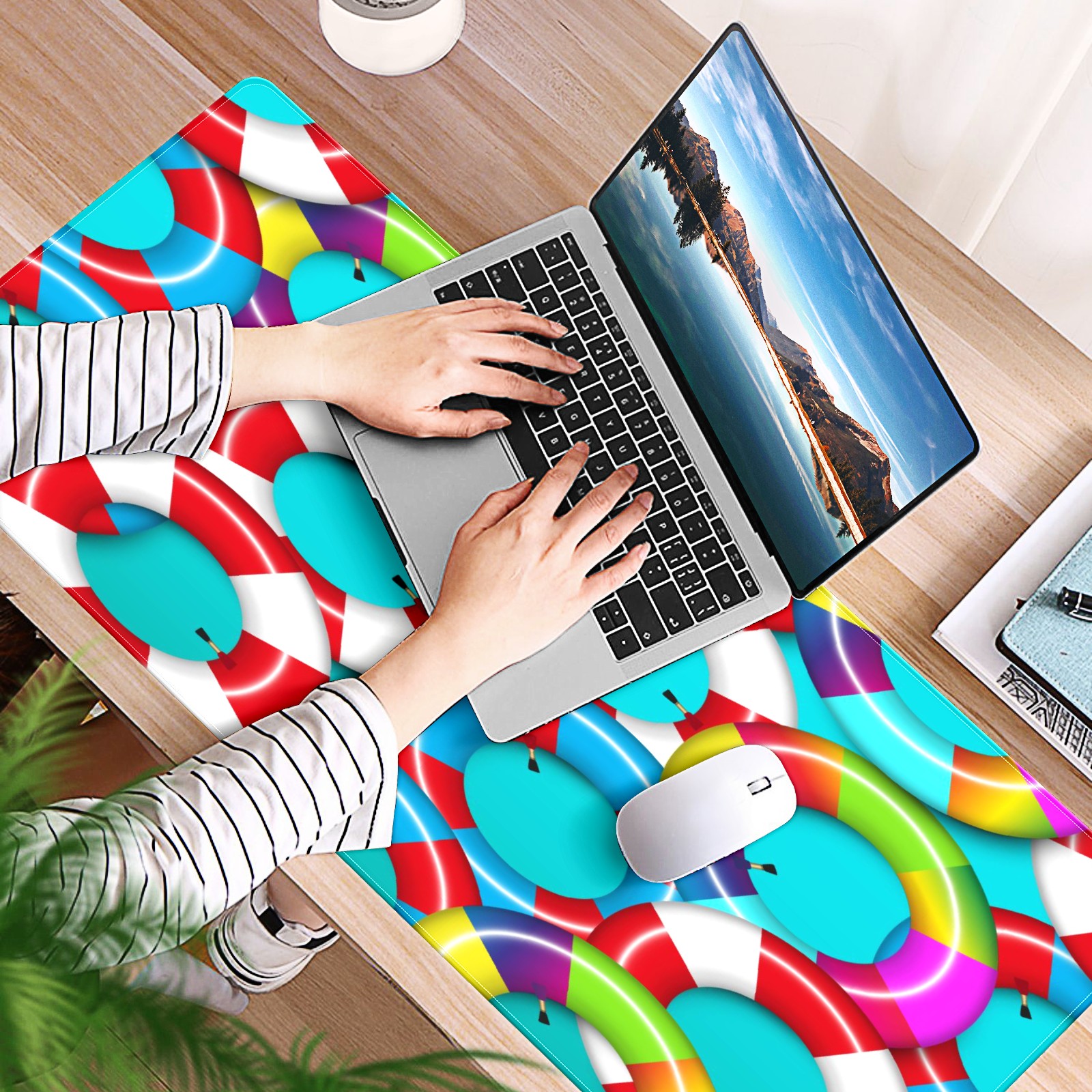 Large Mouse Pad for Desktop, Cute Desk Mat Pad Protector for Work & Gaming, Aesthetic Pretty Anti-Slip Laptop Blotter Cover for Office School Home Supplies, Colorful Inflatable Inner Tube , 35.4inx15.7in