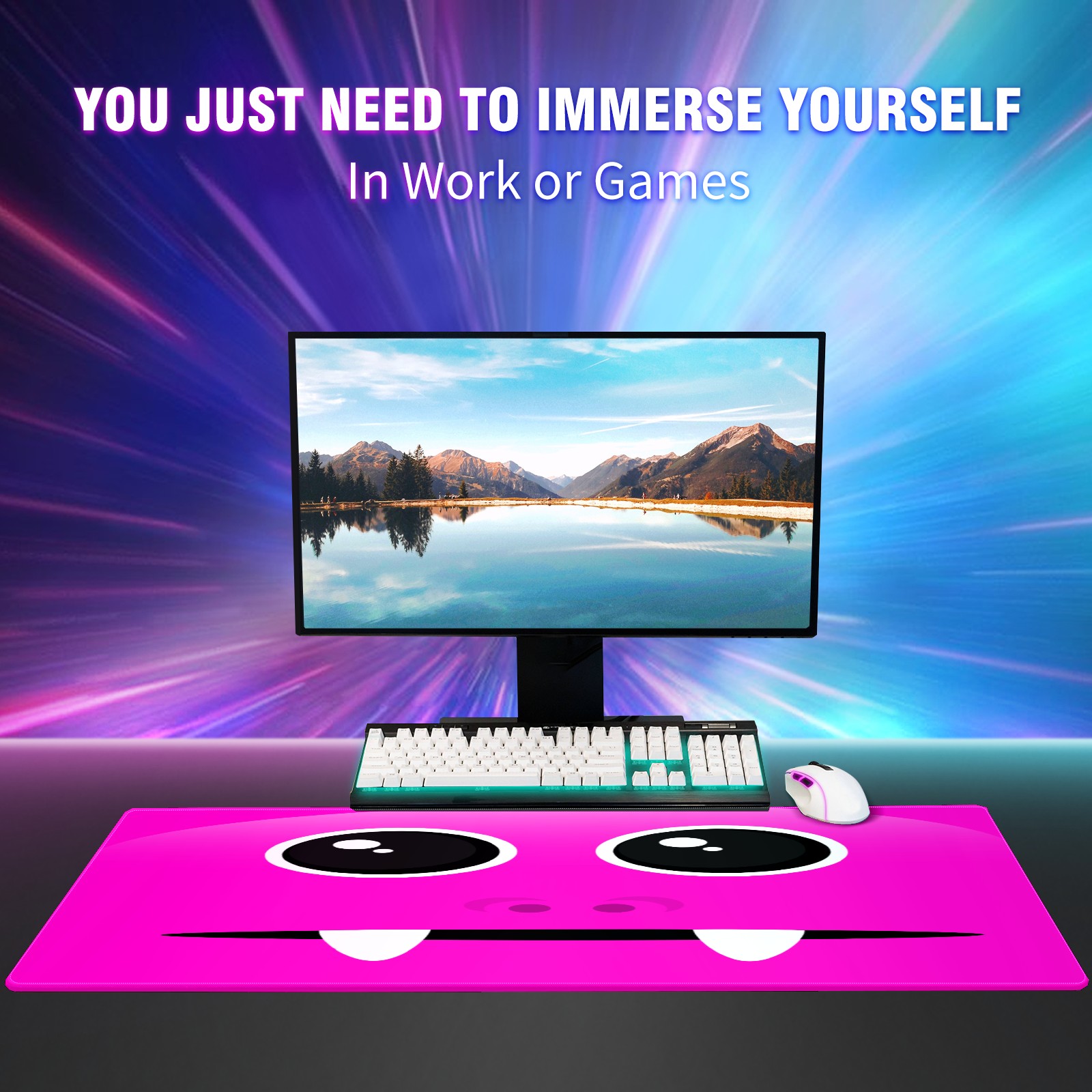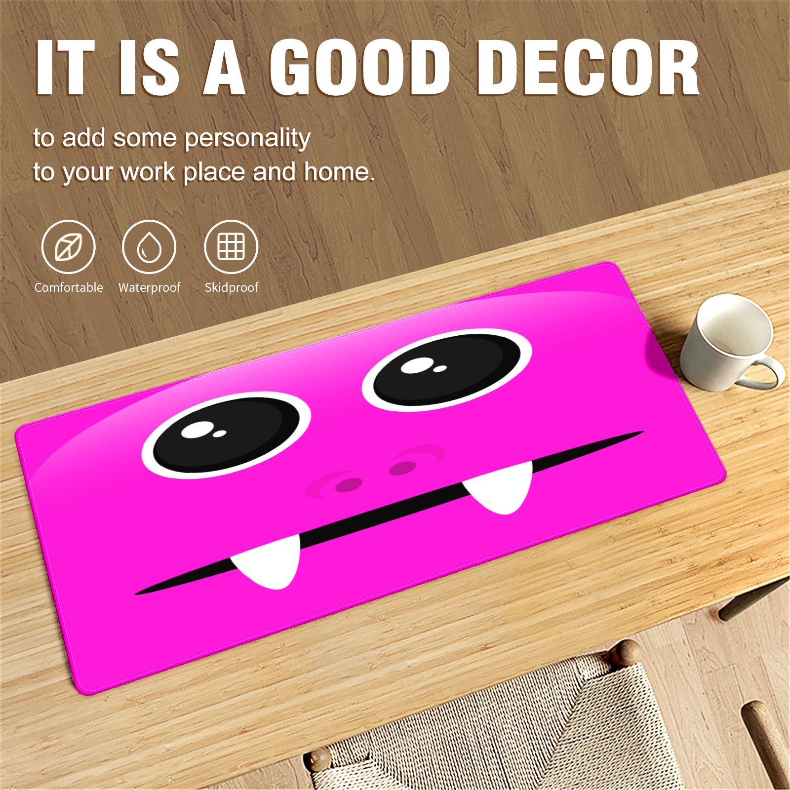 Large Mouse Pad for Desktop, Cute Desk Mat Pad Protector for Work & Gaming, Aesthetic Pretty Anti-Slip Laptop Blotter Cover for Office School Home Supplies, Pink Cute Monster , 35.4inx15.7in