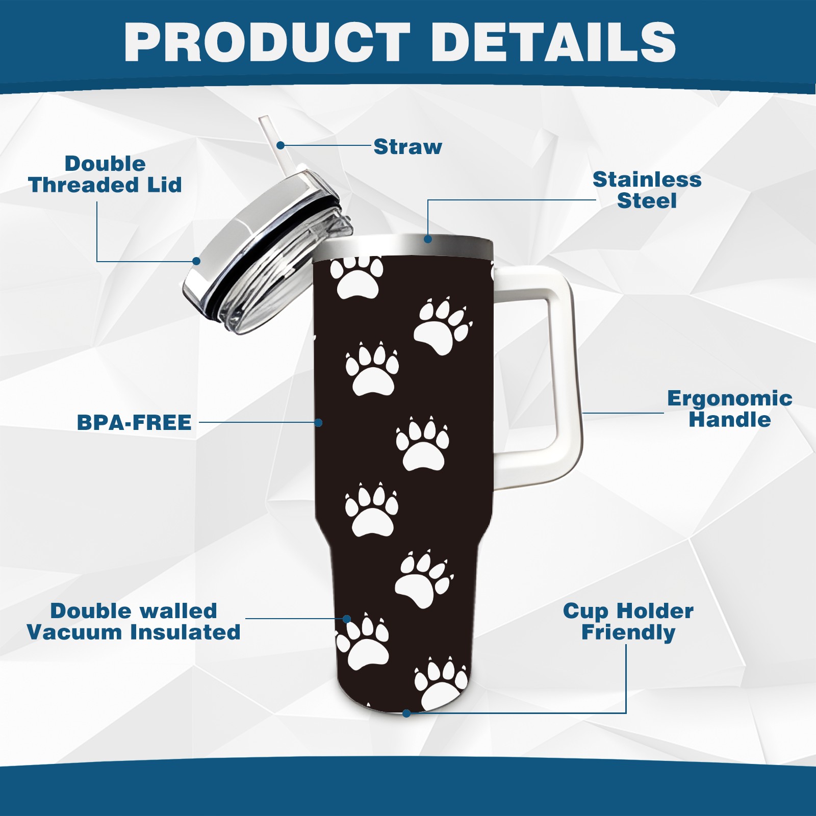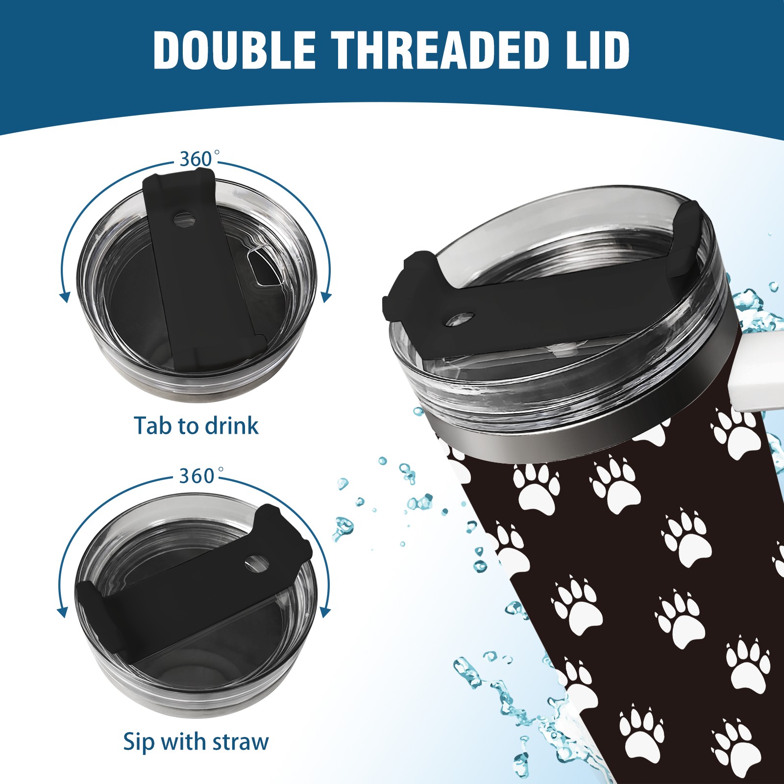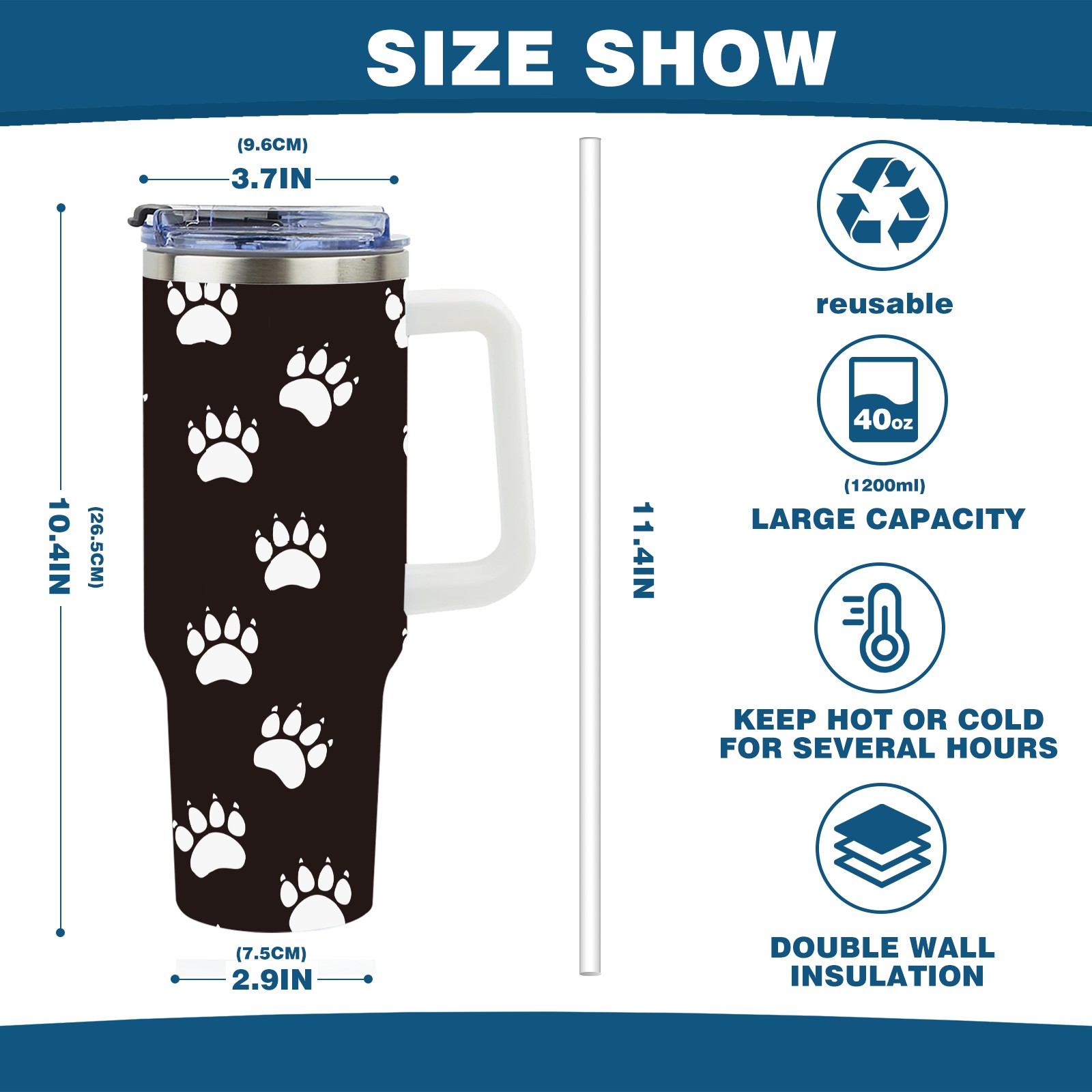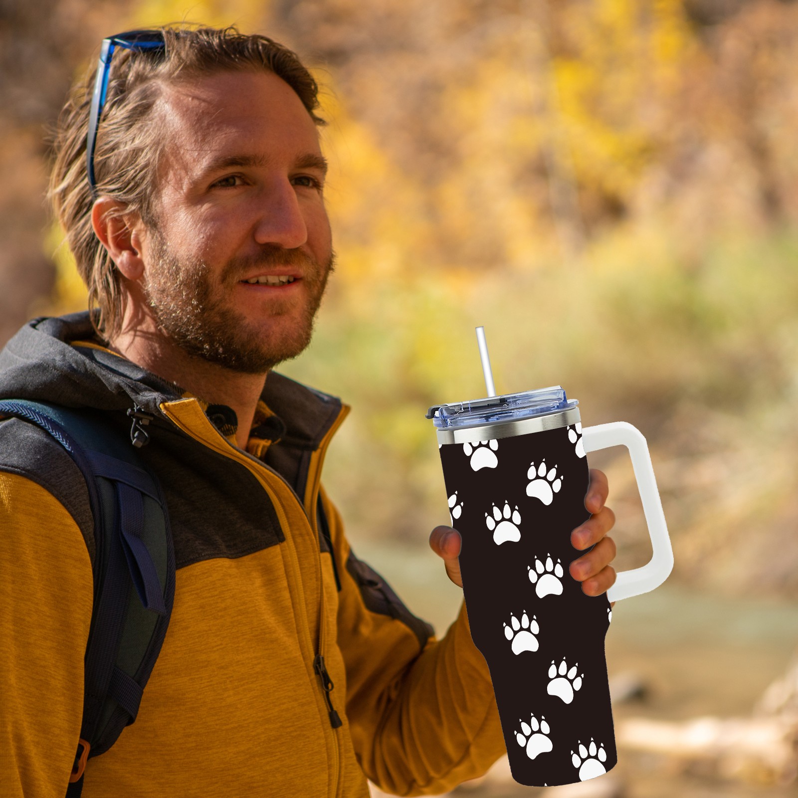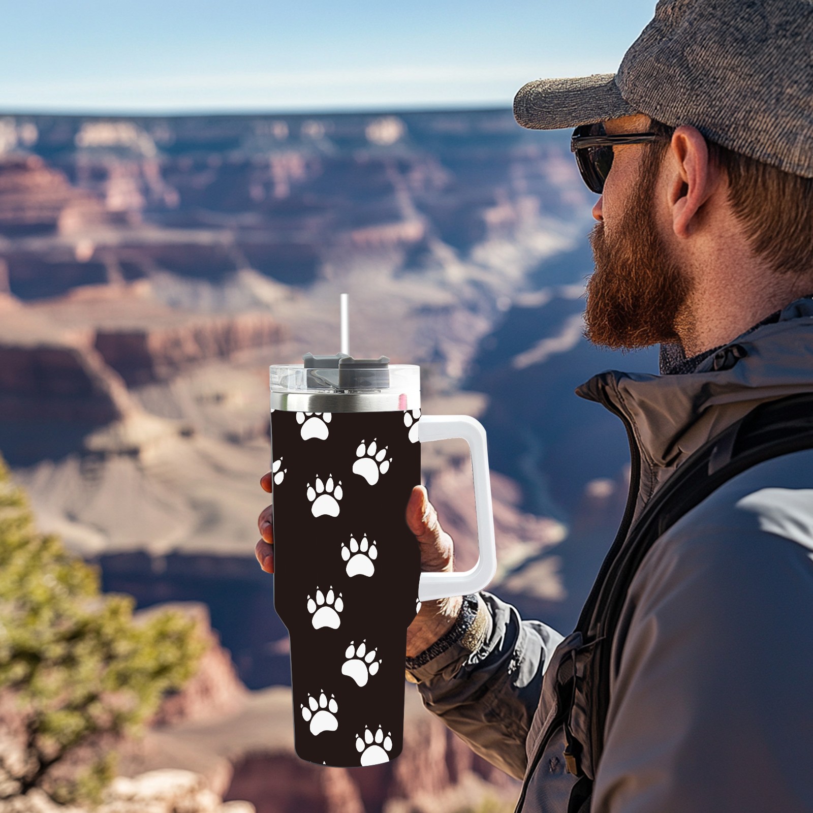 40oz Pet Panda Bear Paw thermos with lid and straw, leak-proof stainless steel, with handle, spill-proof bottle, convenient for travel(pink)