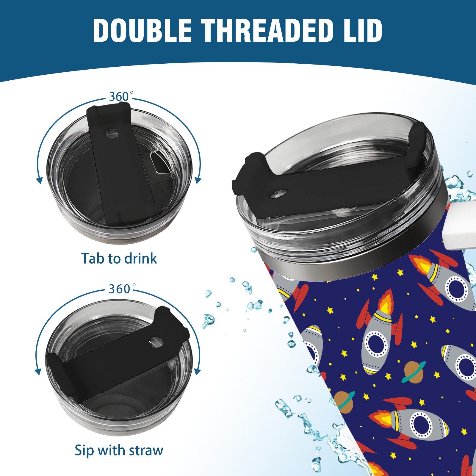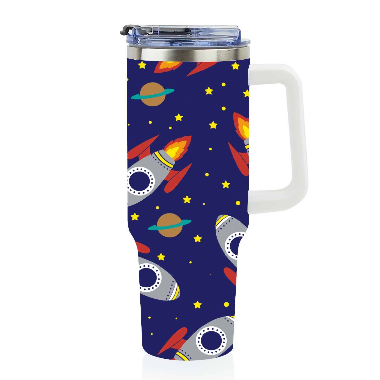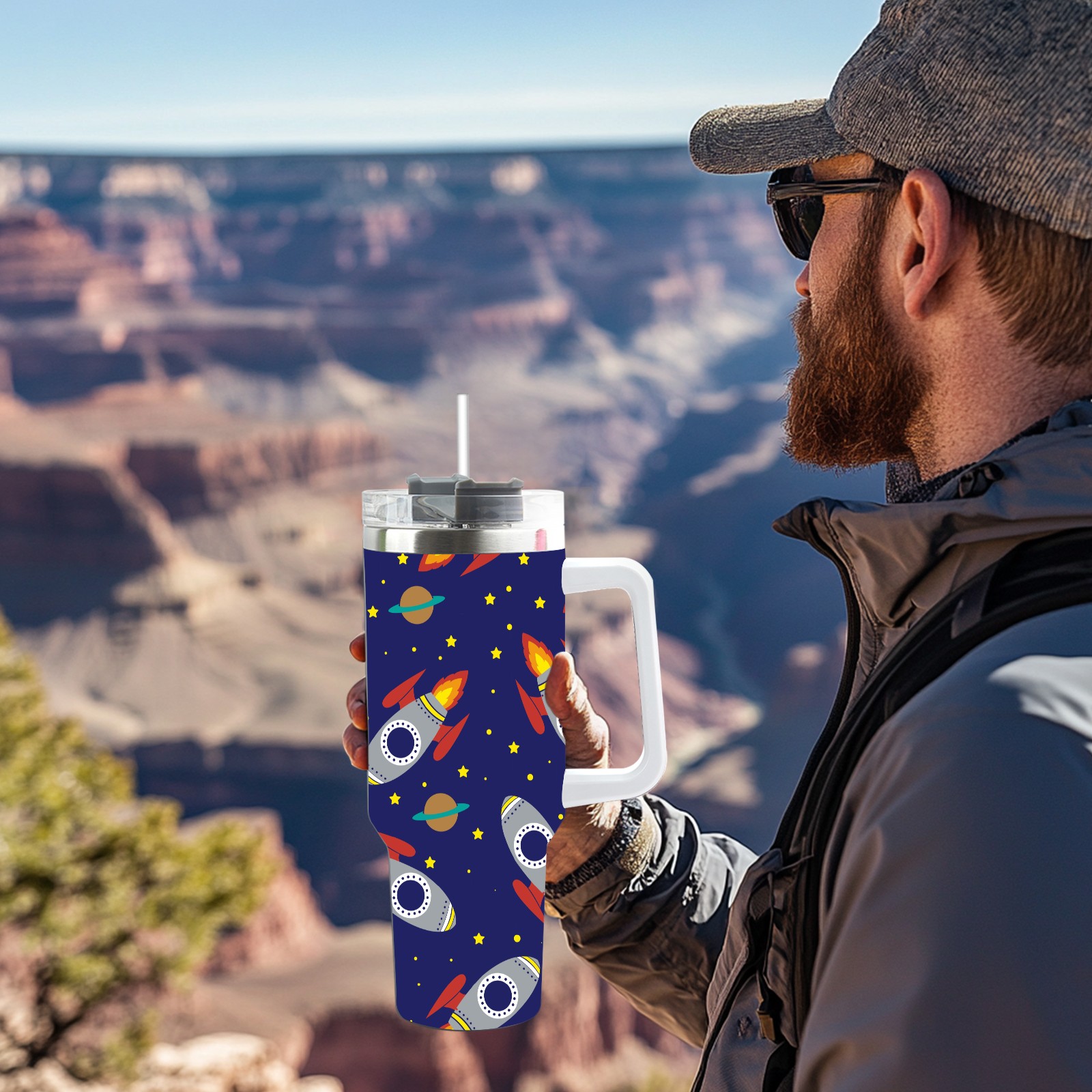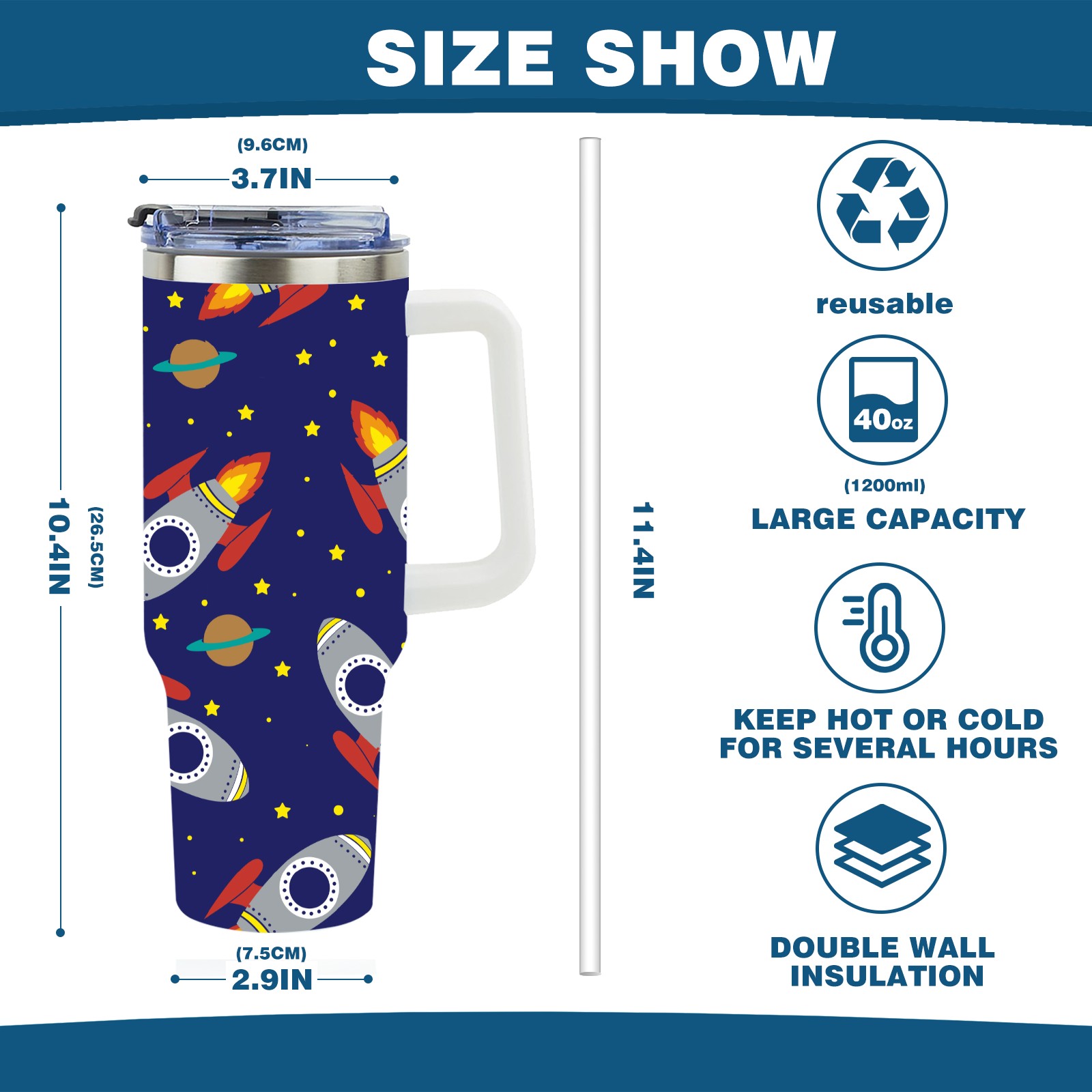 40oz Cartoon Rocket Planet Galaxy Starry Star Space thermos with lid and straw, leak-proof stainless steel, with handle, spill-proof bottle, convenient for travel(pink)