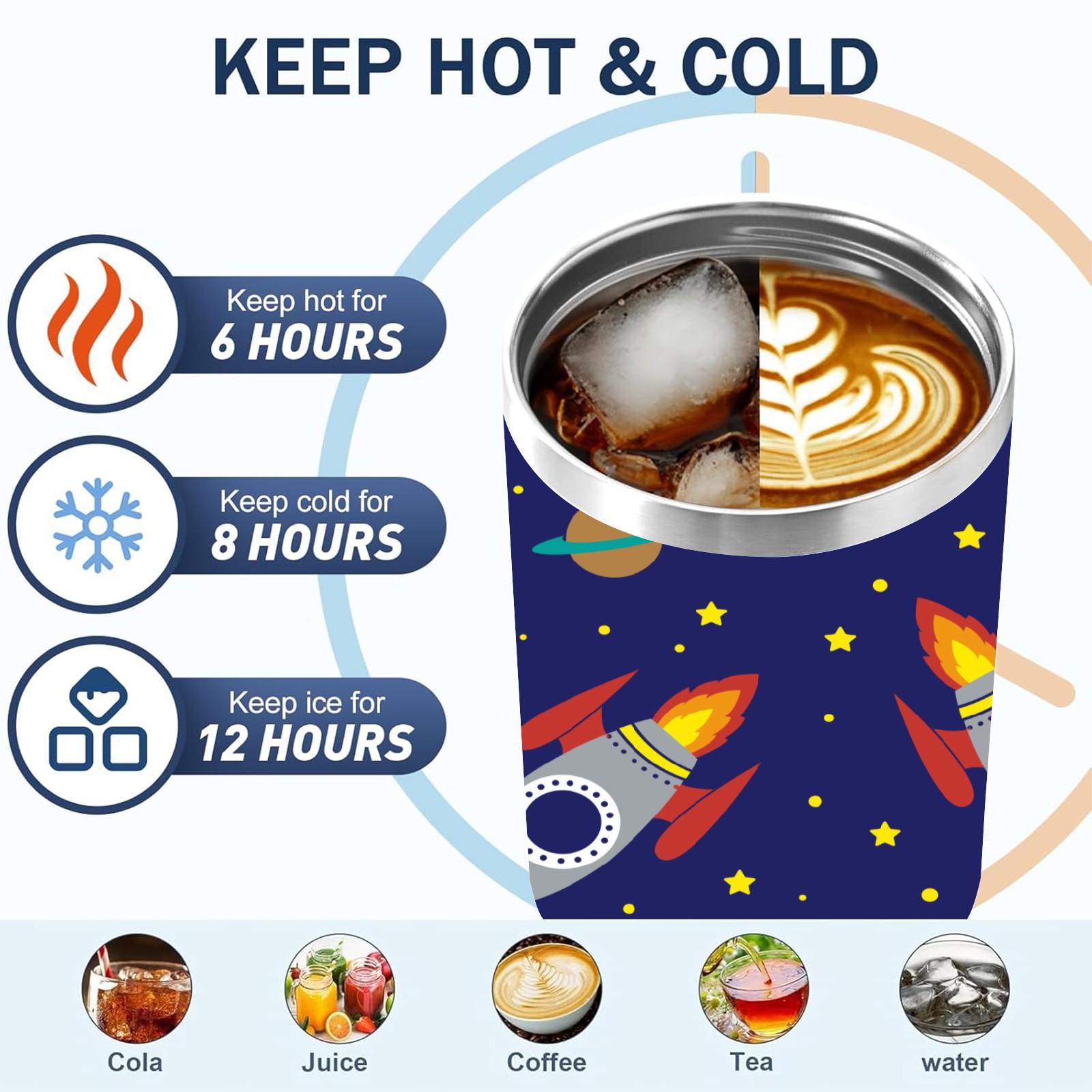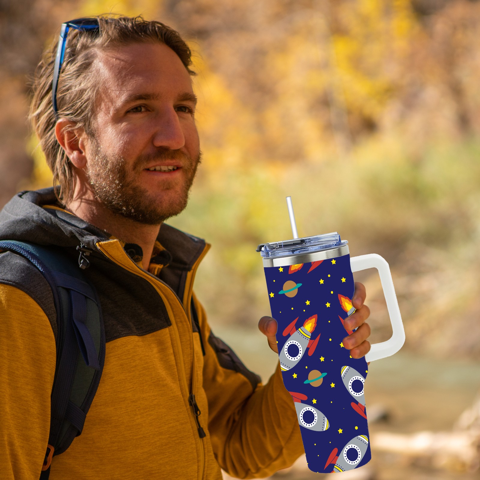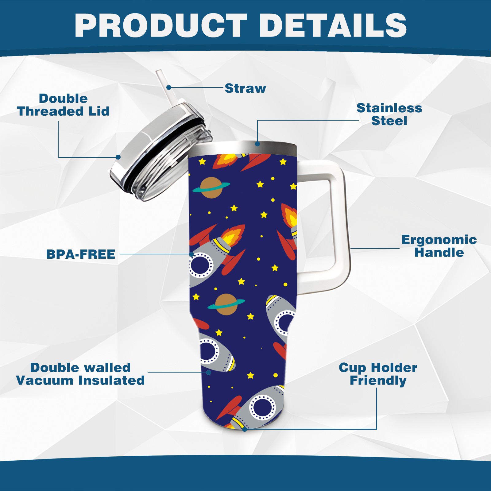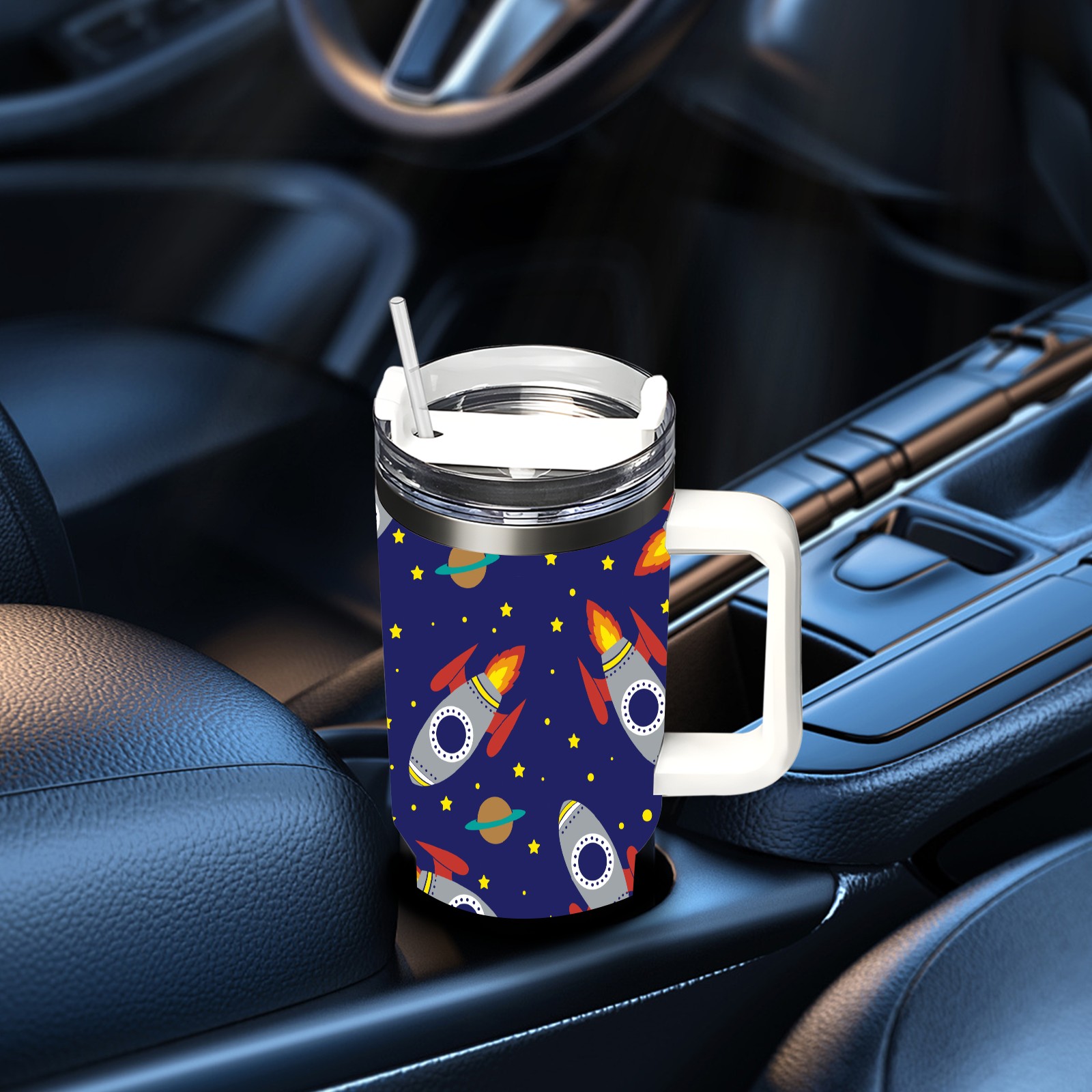40oz Cartoon Rocket Planet Galaxy Starry Star Space thermos with lid and straw, leak-proof stainless steel, with handle, spill-proof bottle, convenient for travel(pink)
