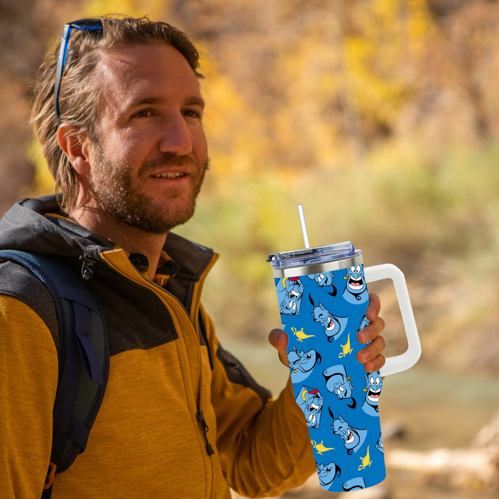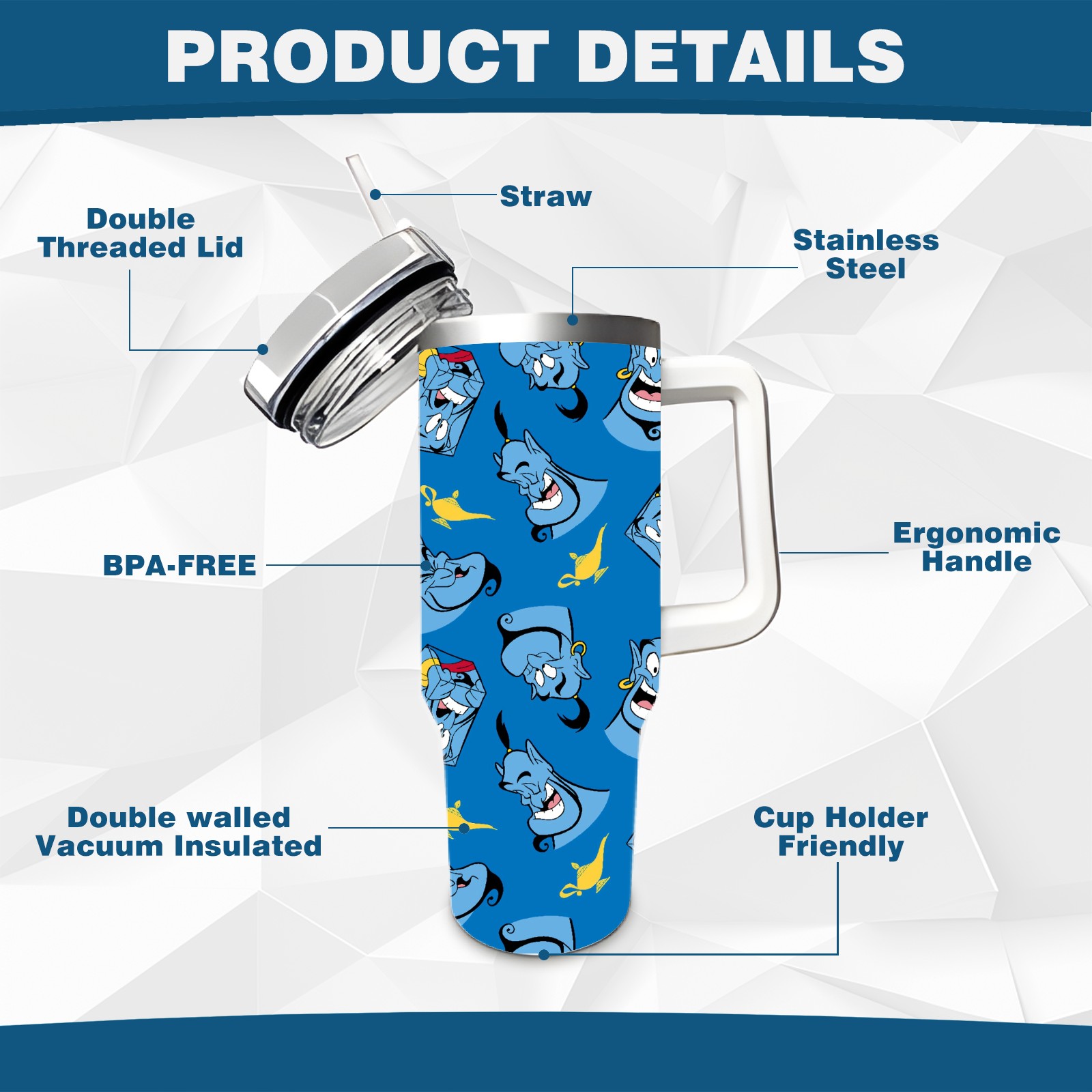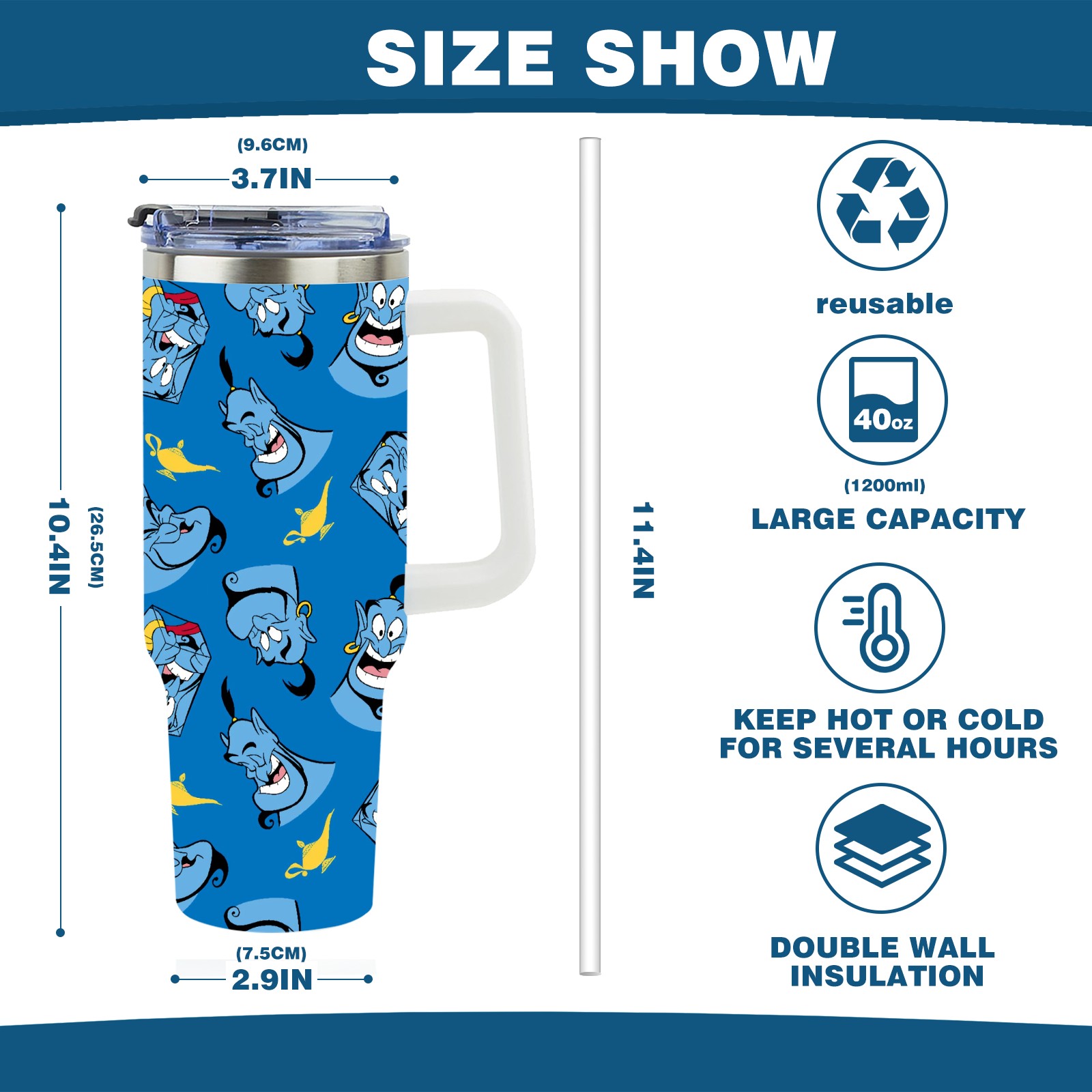 40oz Aladdin And His Lamp thermos with lid and straw, leak-proof stainless steel, with handle, spill-proof bottle, convenient for travel(pink)