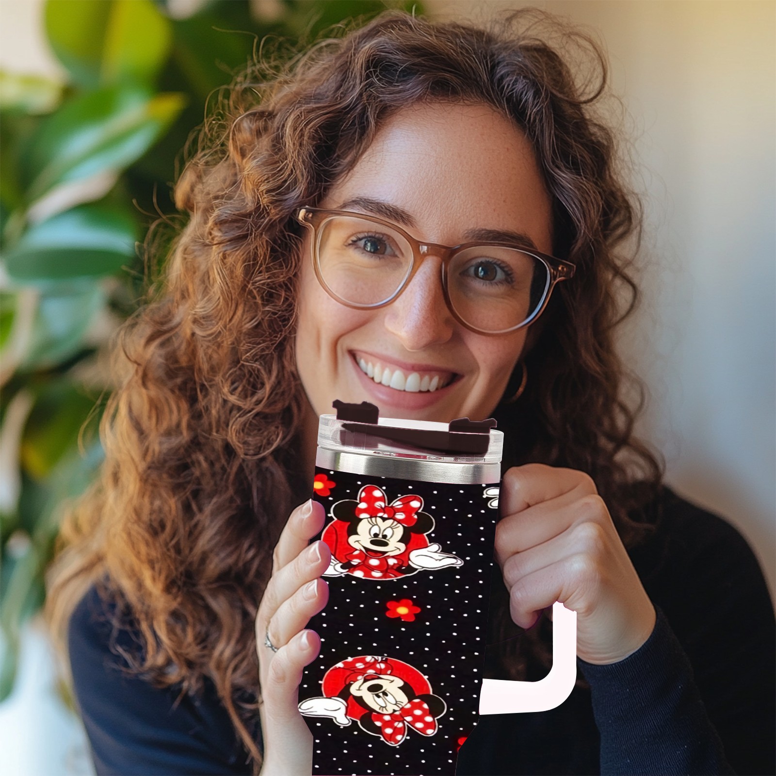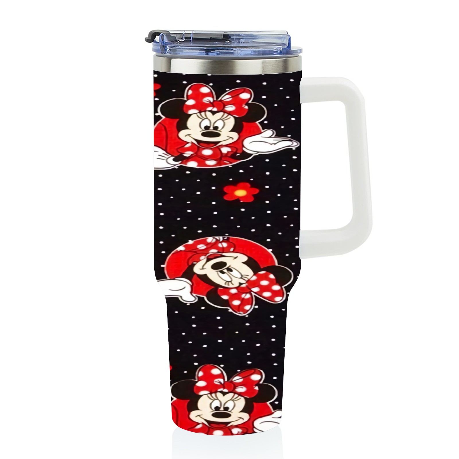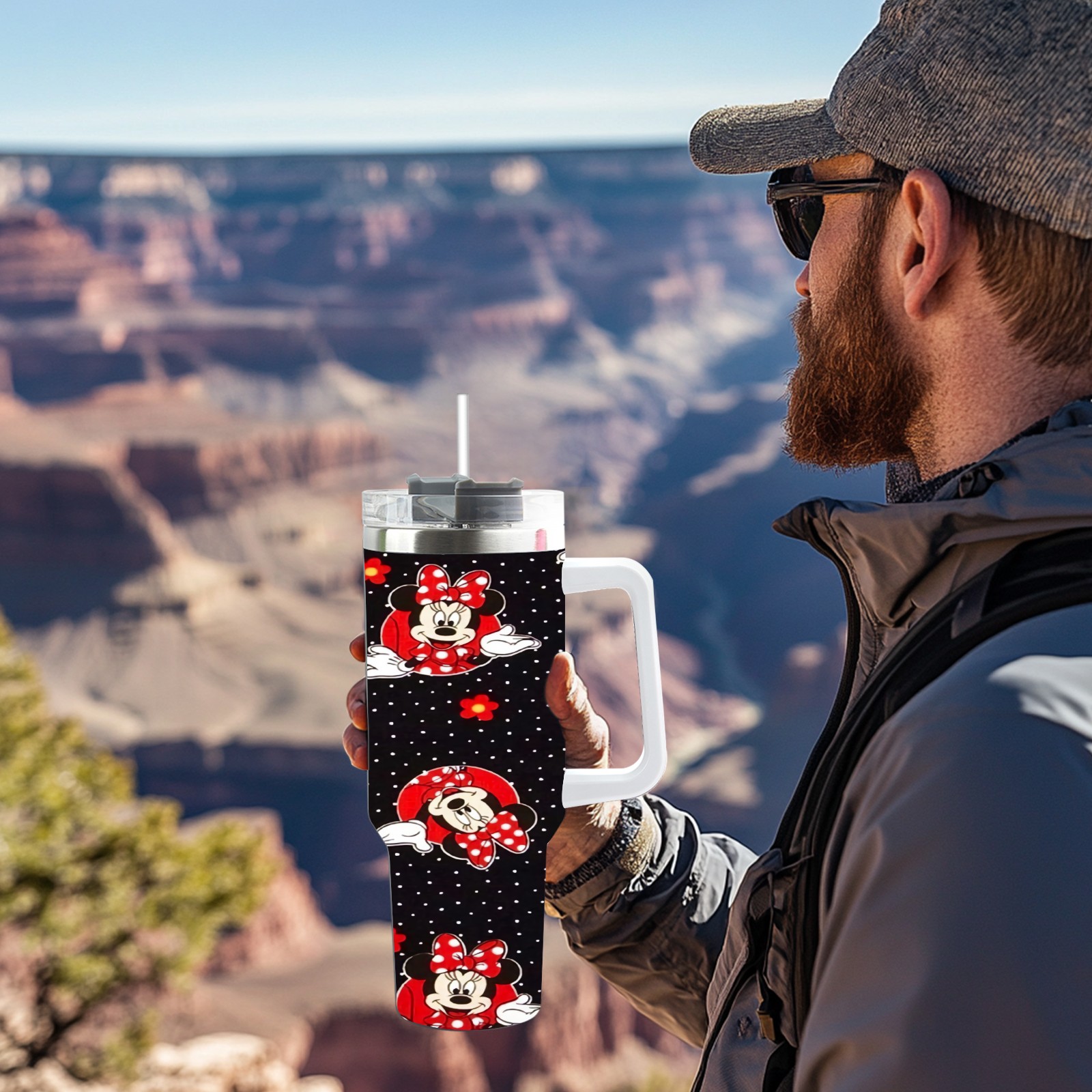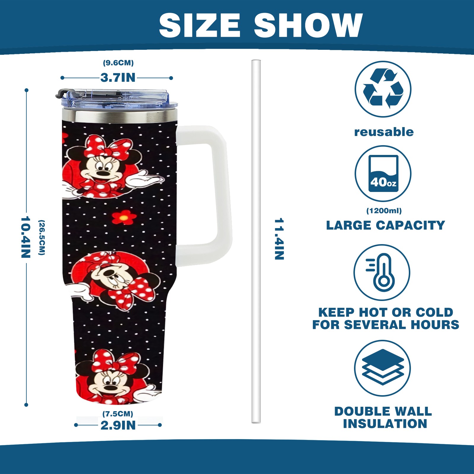 40oz Mickey Mouse Minni thermos with lid and straw, leak-proof stainless steel, with handle, spill-proof bottle, convenient for travel(pink)