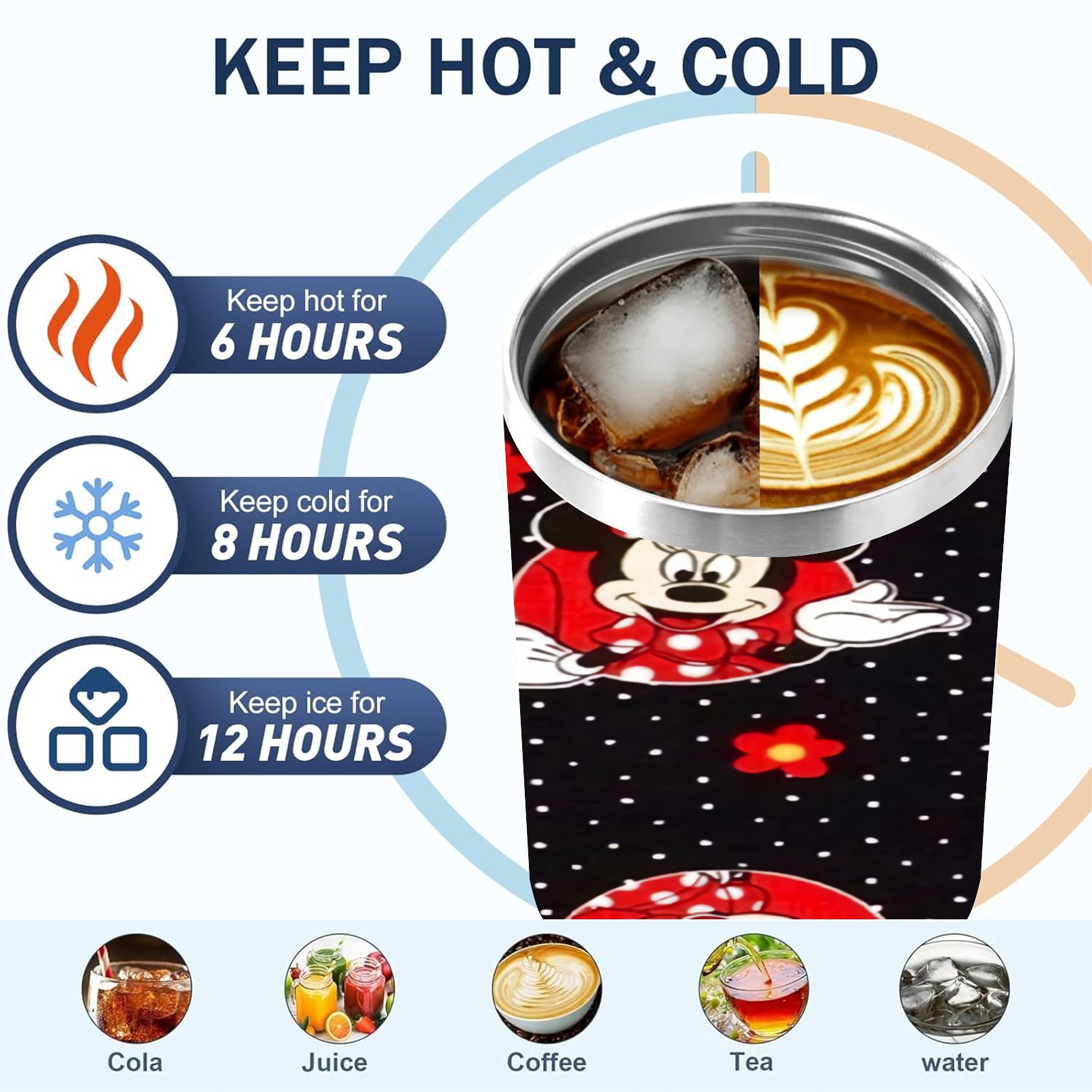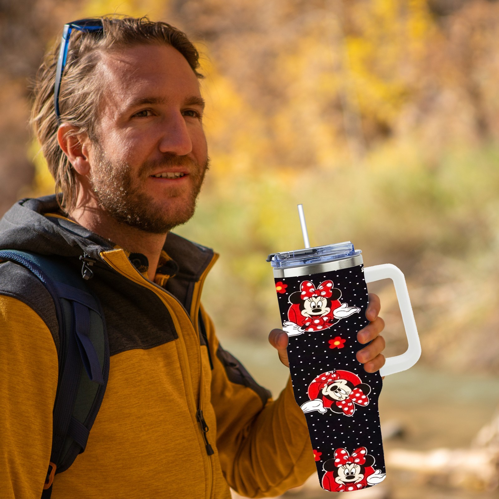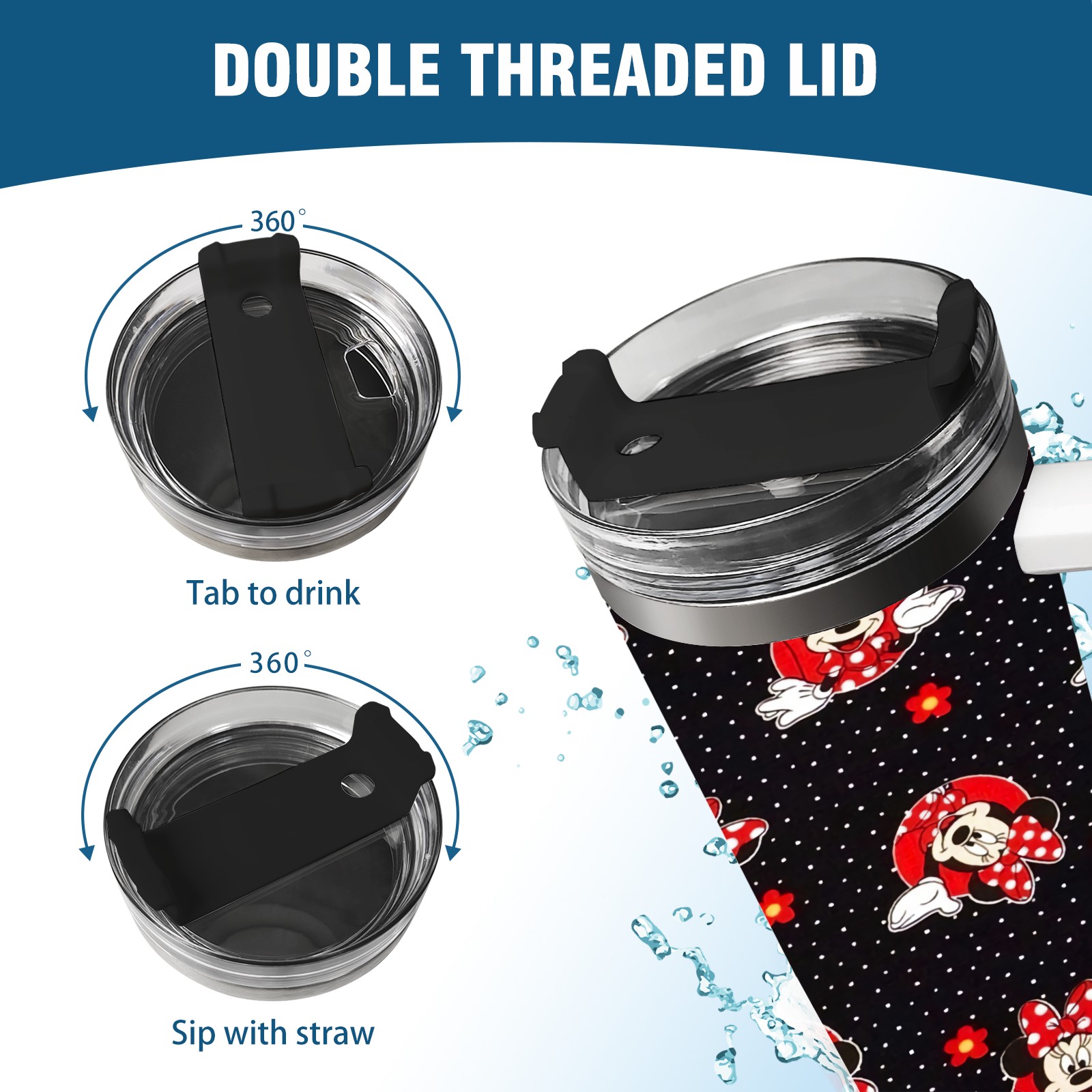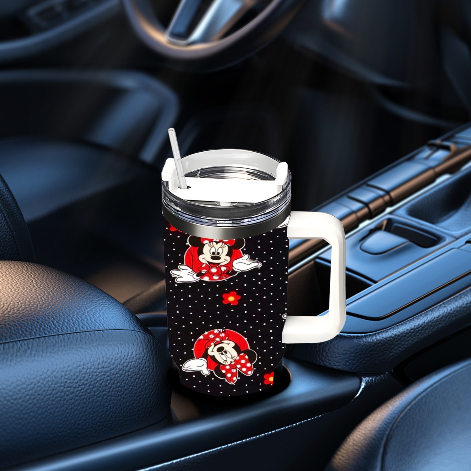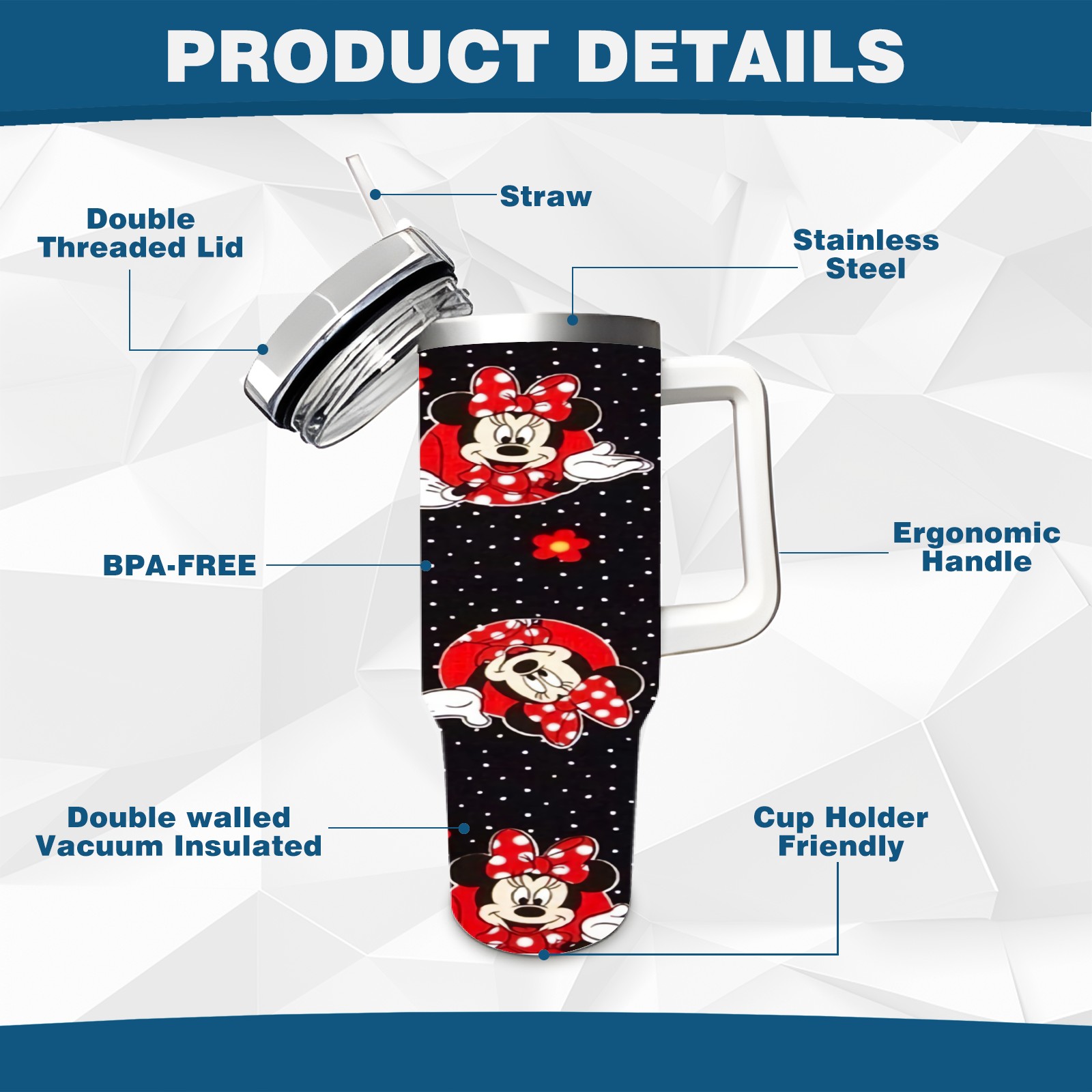 40oz Mickey Mouse Minni thermos with lid and straw, leak-proof stainless steel, with handle, spill-proof bottle, convenient for travel(pink)