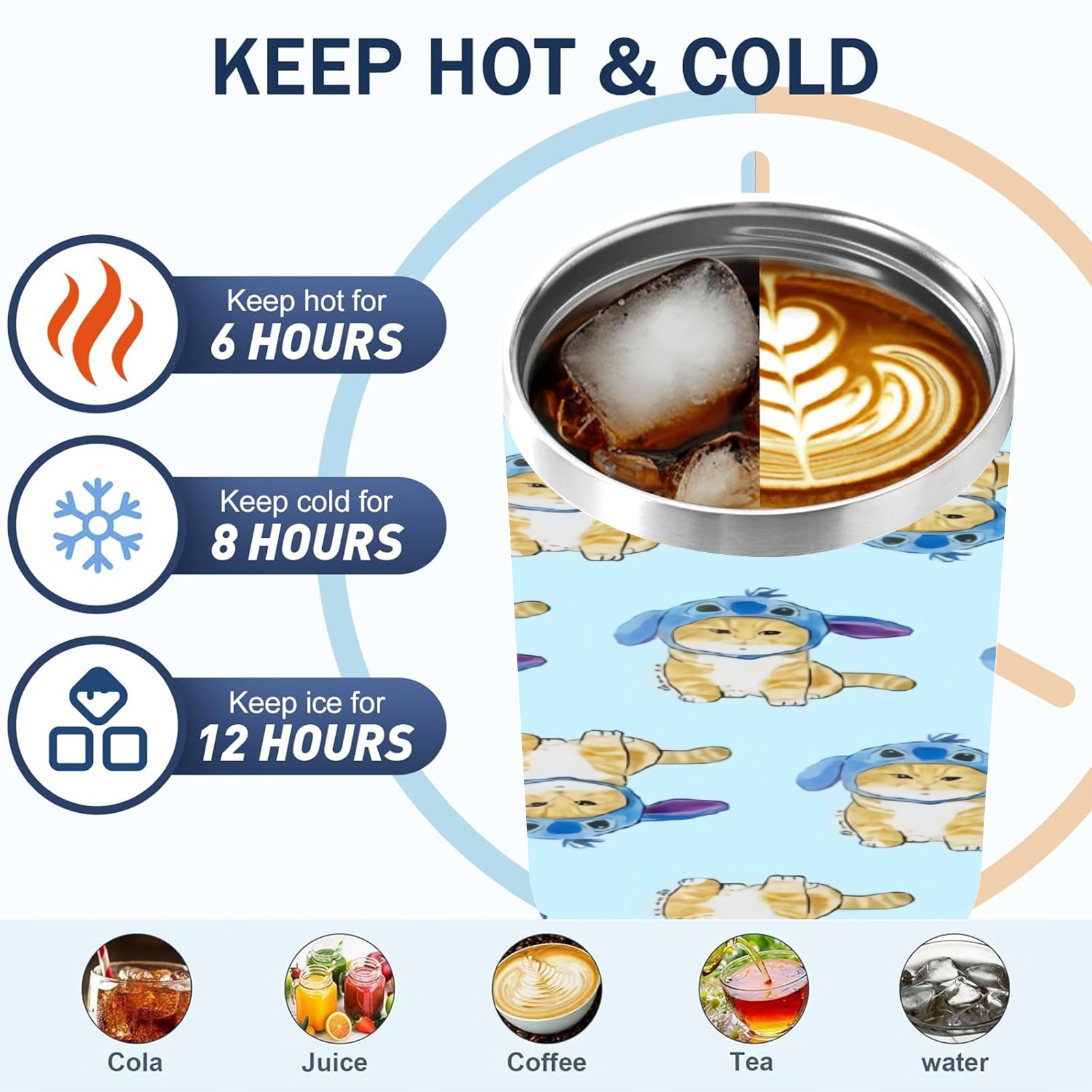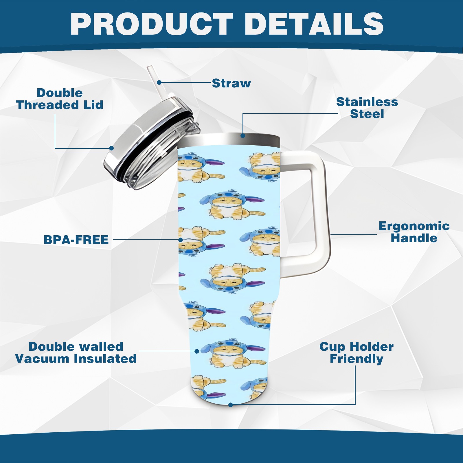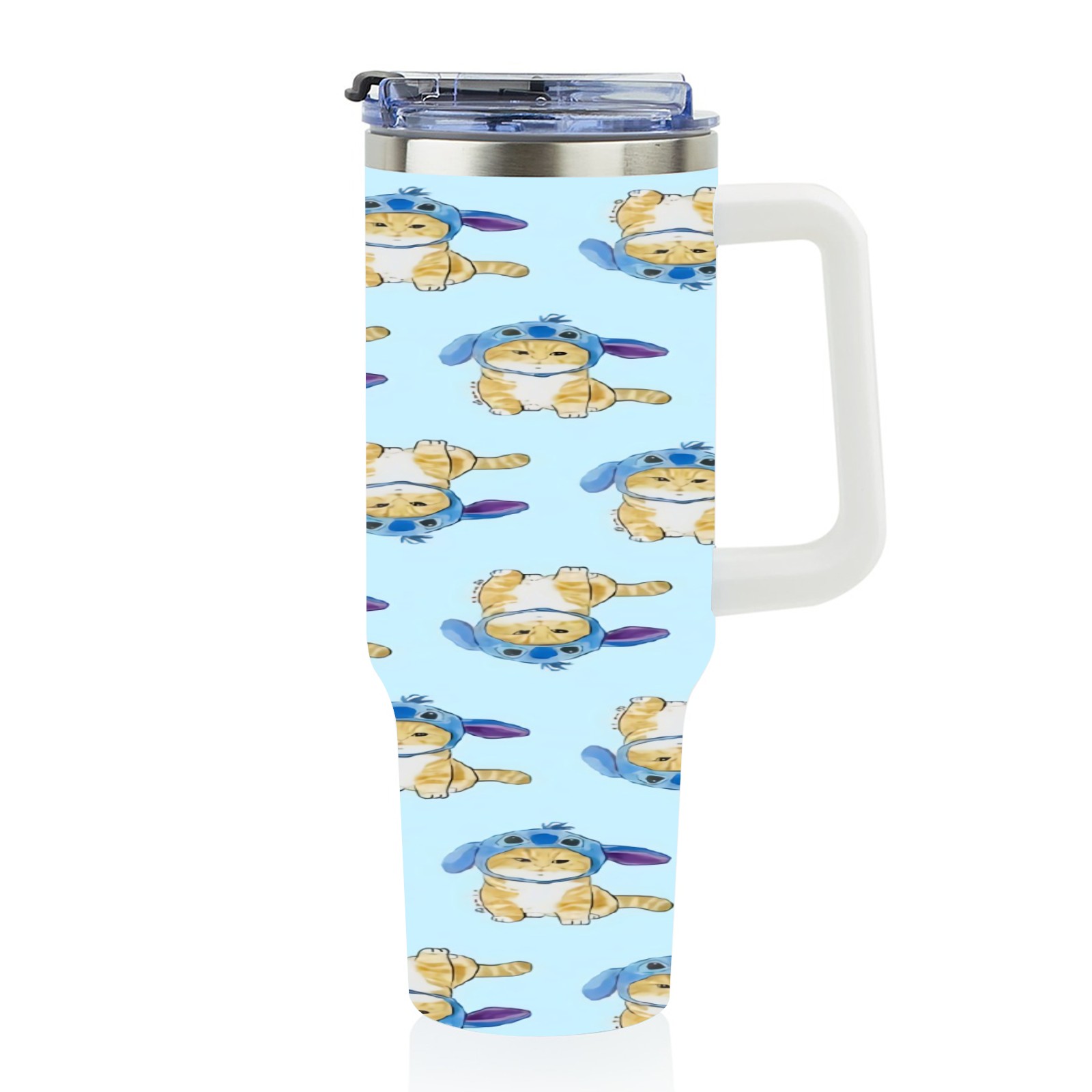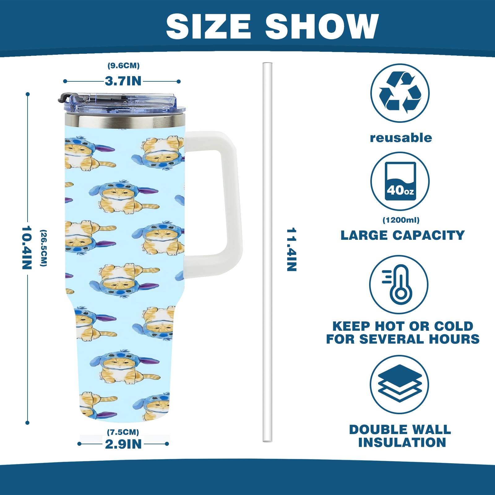 40oz Lilo Stitch And Cat thermos with lid and straw, leak-proof stainless steel, with handle, spill-proof bottle, convenient for travel(pink)