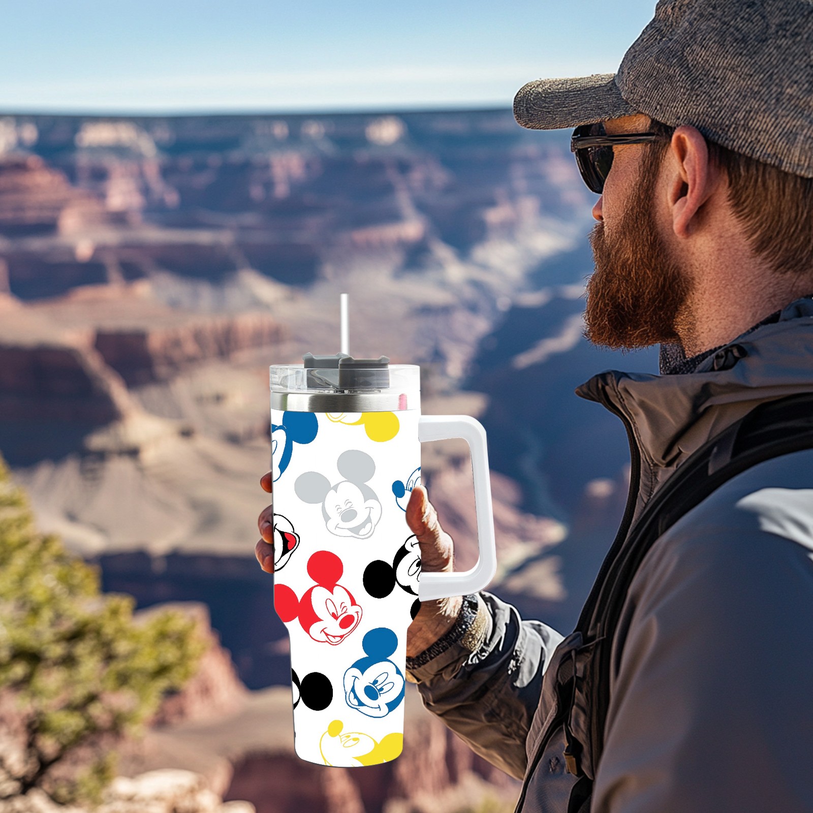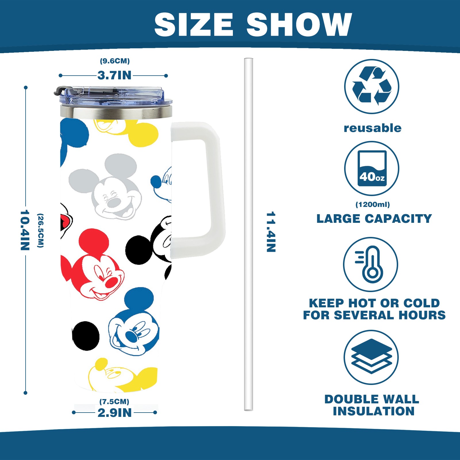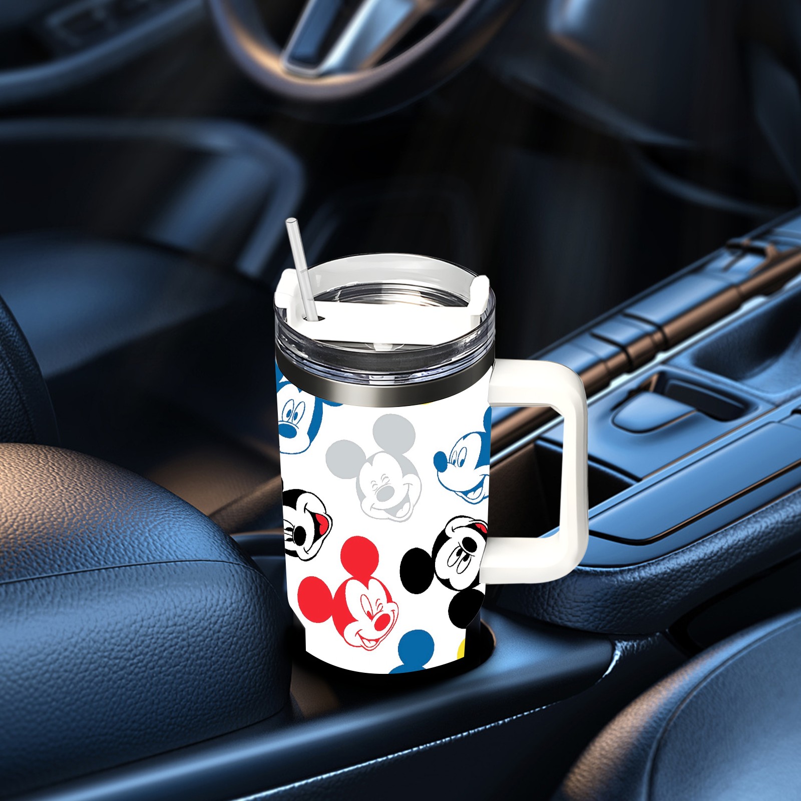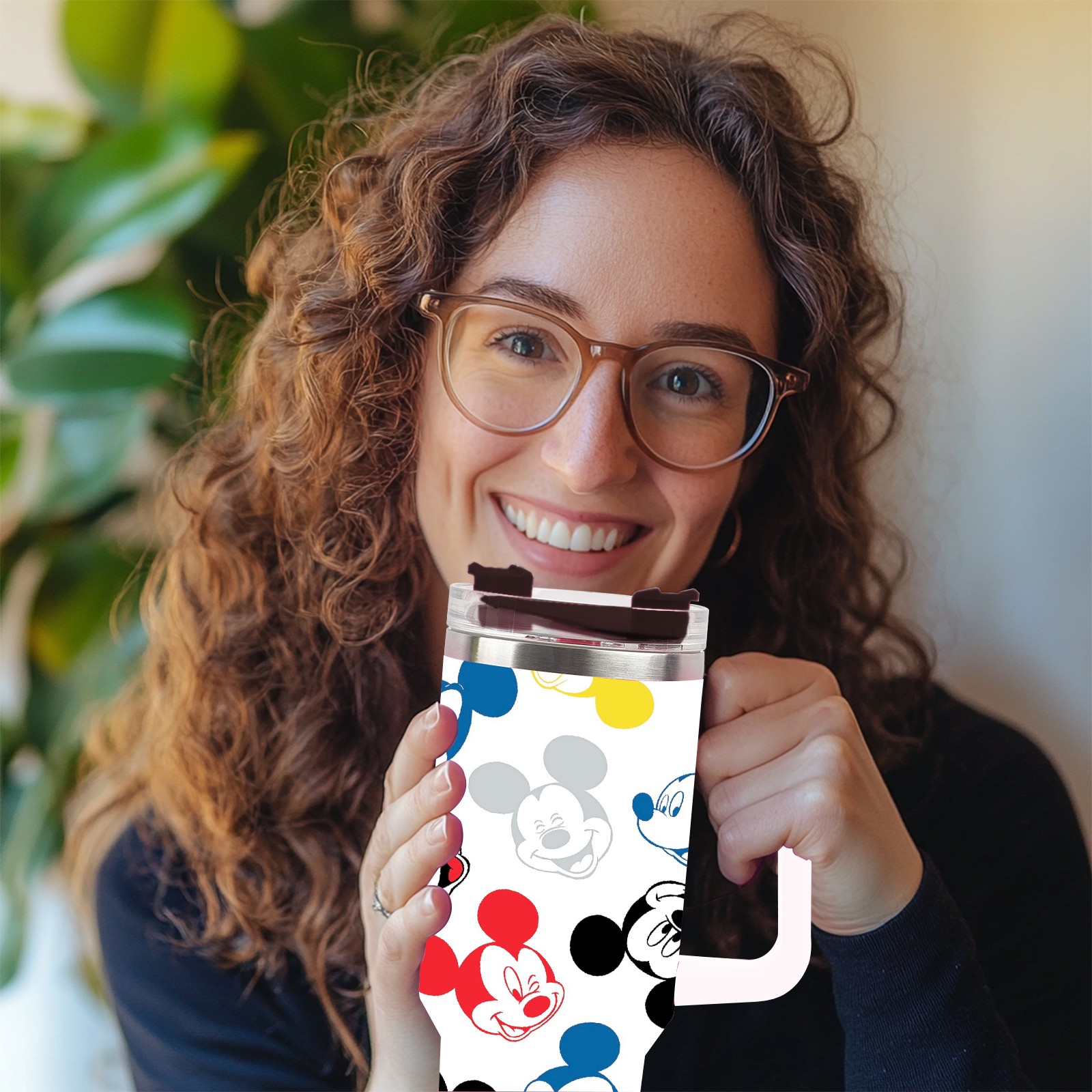 40oz Colorful Mickey Mouse thermos with lid and straw, leak-proof stainless steel, with handle, spill-proof bottle, convenient for travel(pink)