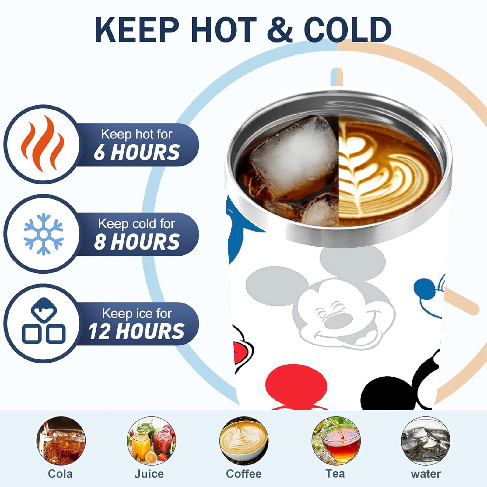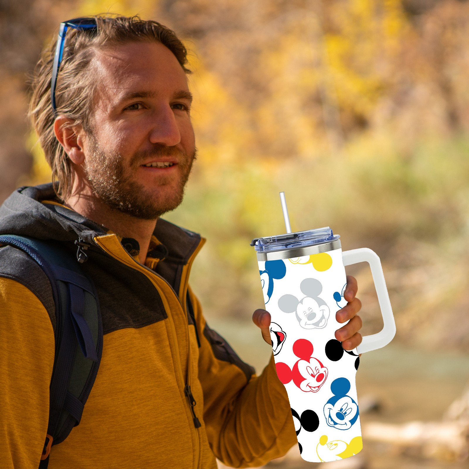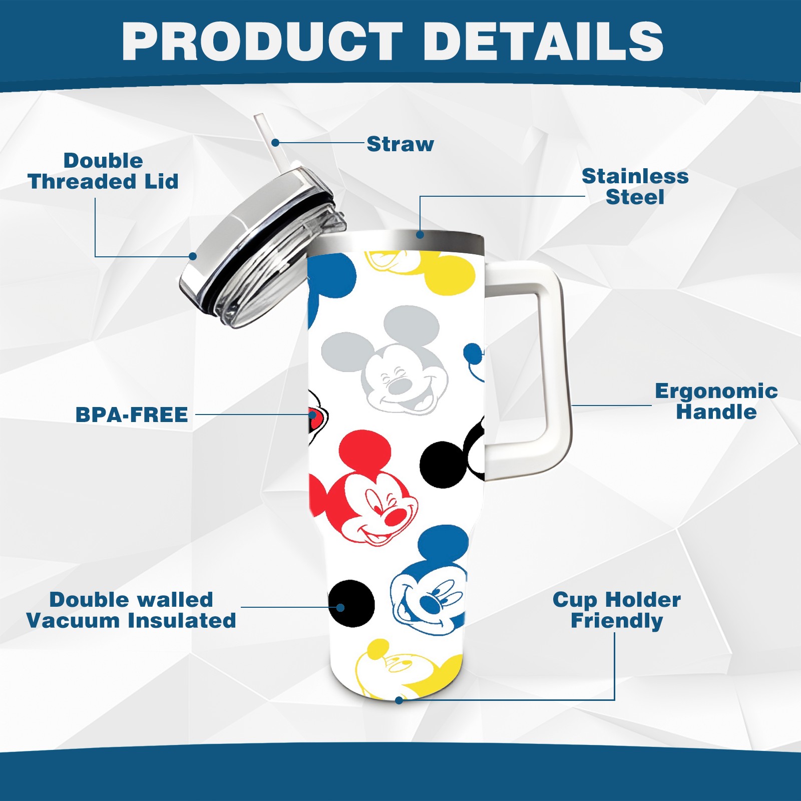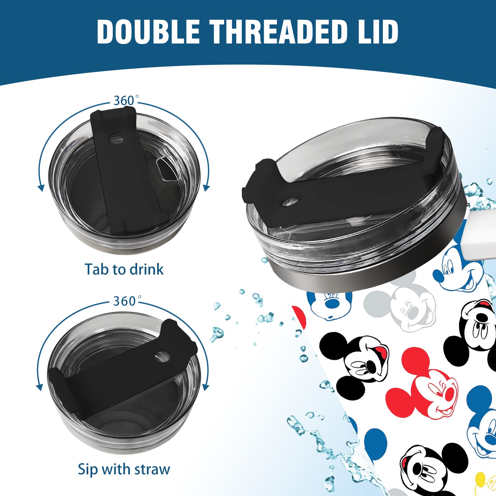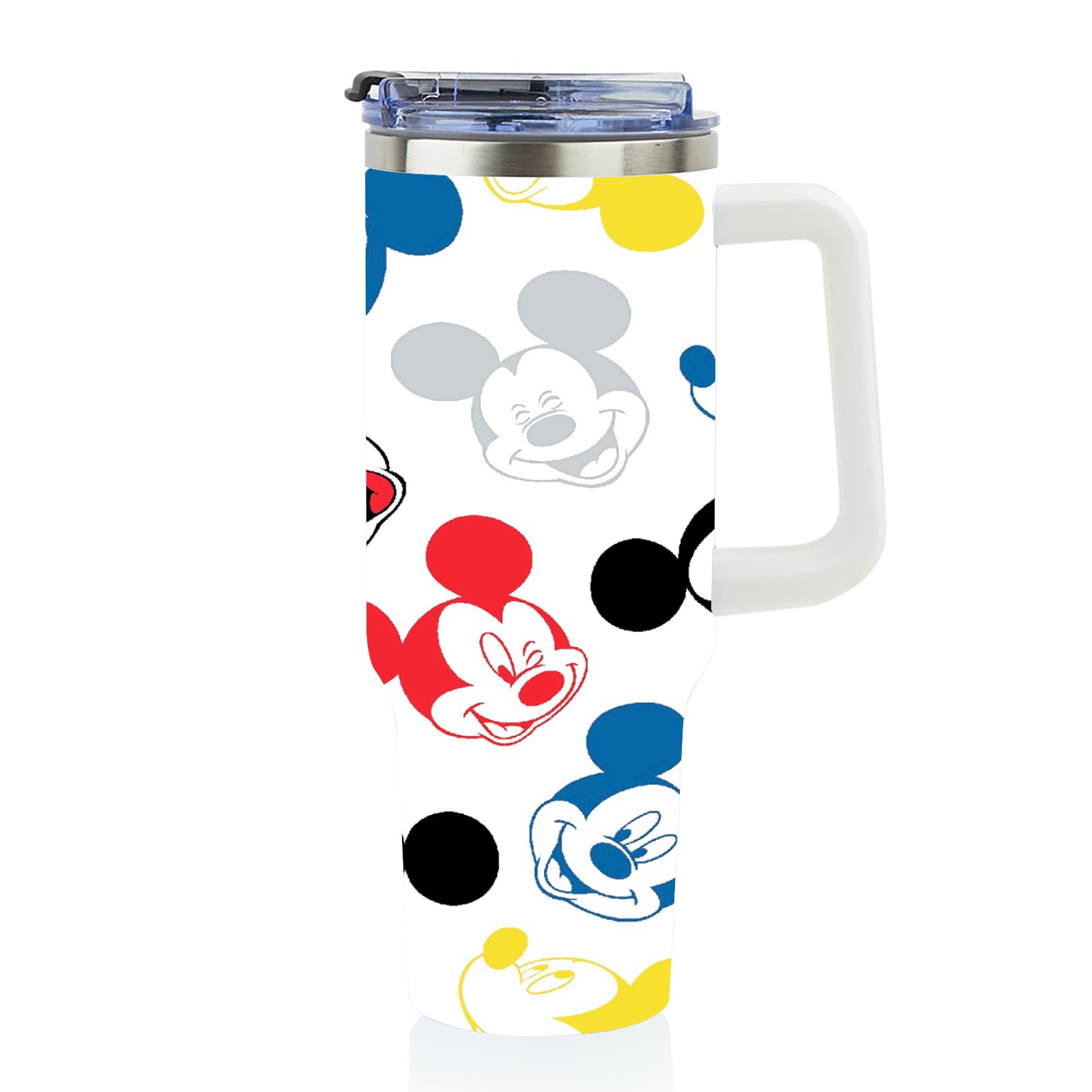40oz Colorful Mickey Mouse thermos with lid and straw, leak-proof stainless steel, with handle, spill-proof bottle, convenient for travel(pink)