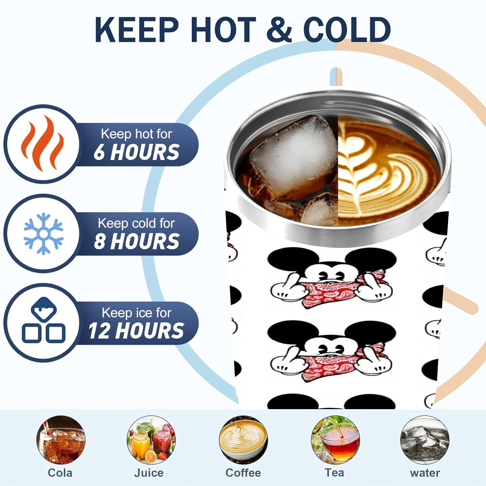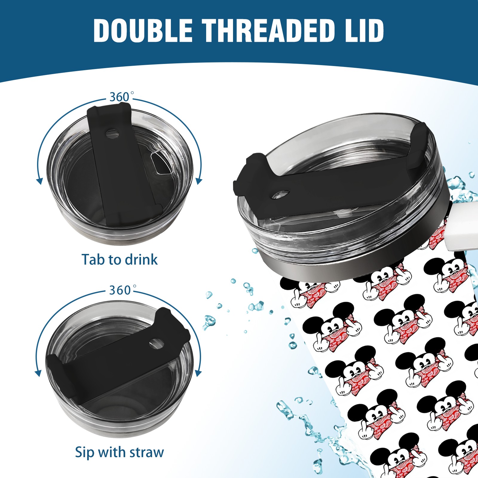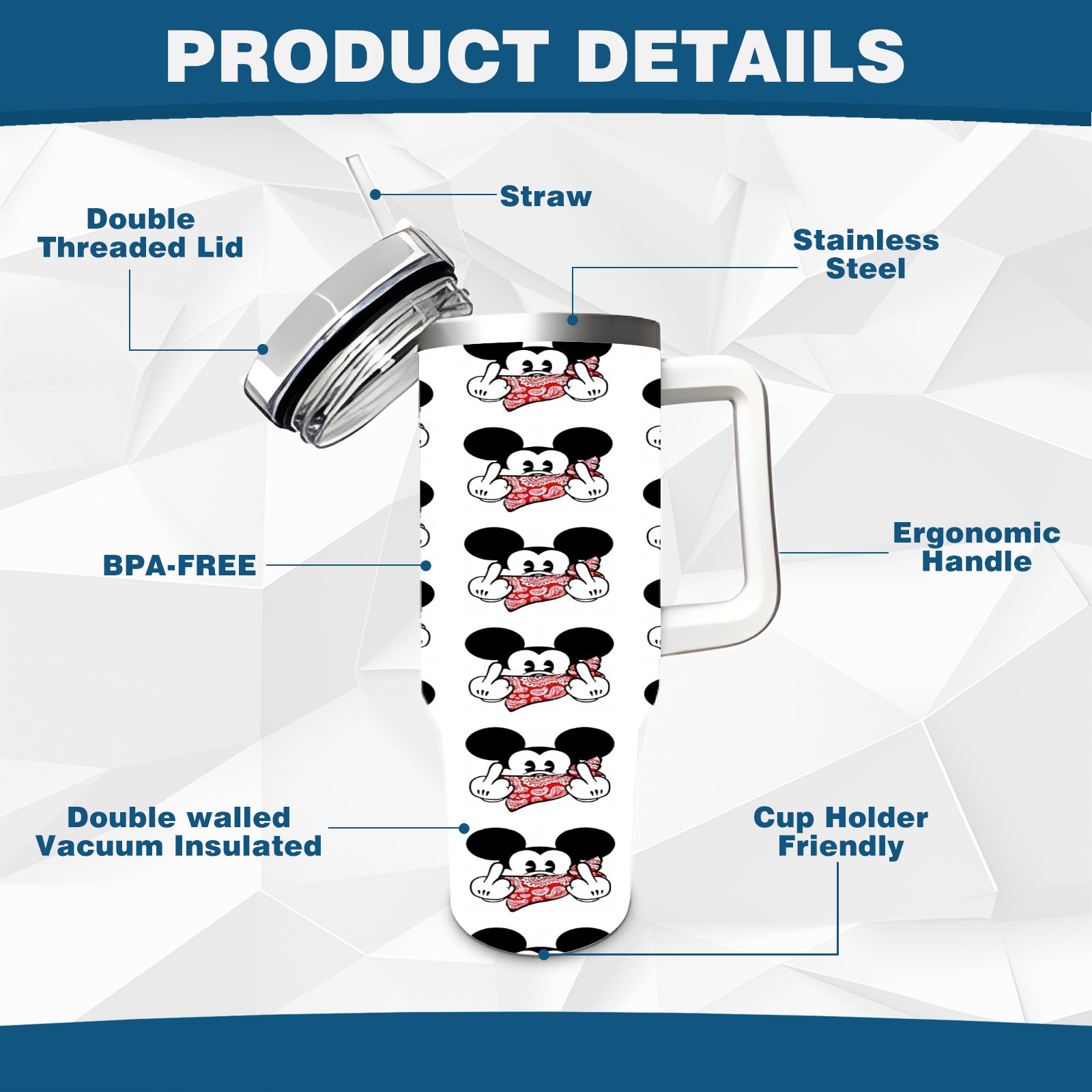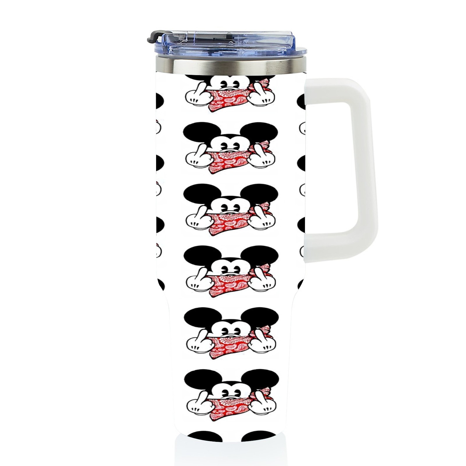 40oz Angry Mickey Mouse thermos with lid and straw, leak-proof stainless steel, with handle, spill-proof bottle, convenient for travel(pink)